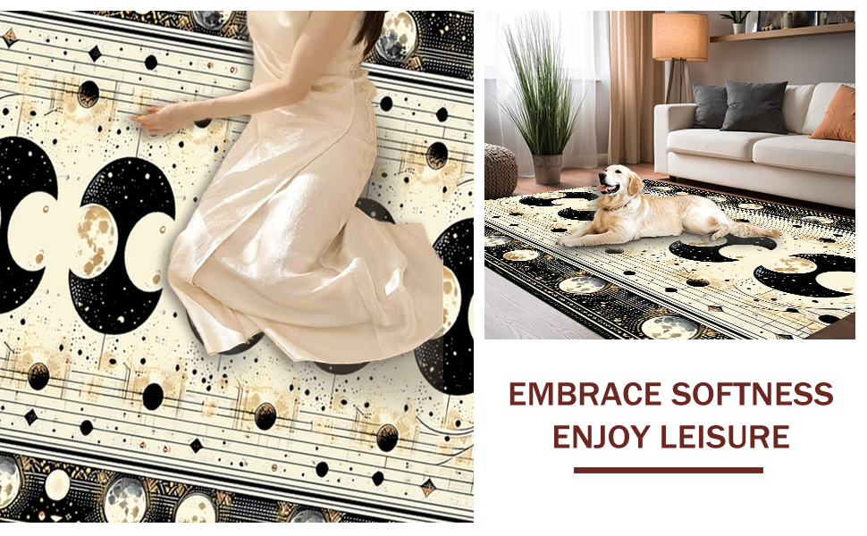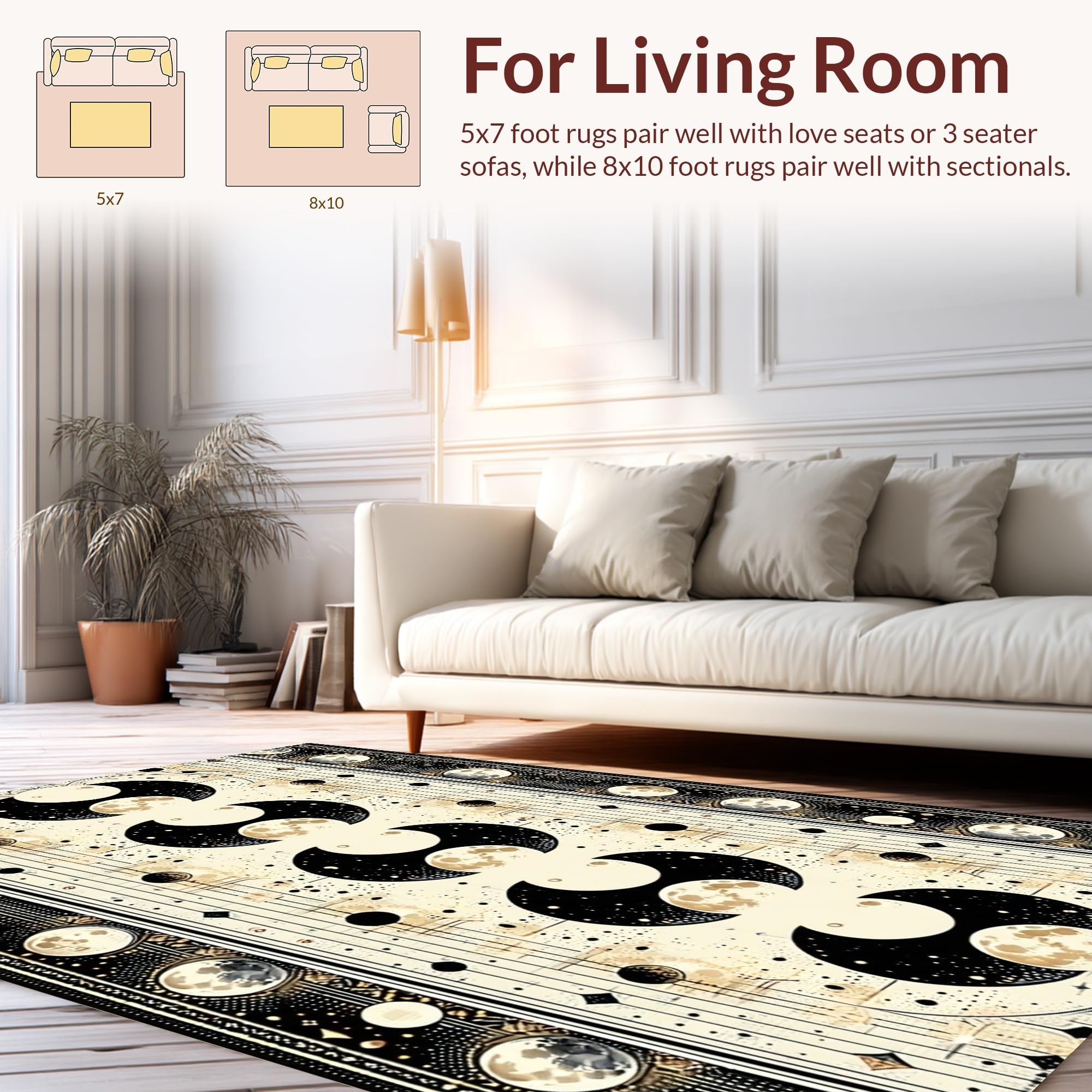 Ultra Soft Area Rug, Non Slip, Stain Resistant, Washable Area Rugs for Living Room, Bedroom, Artistic Creamy Phase Pattern(Beige) Overview: