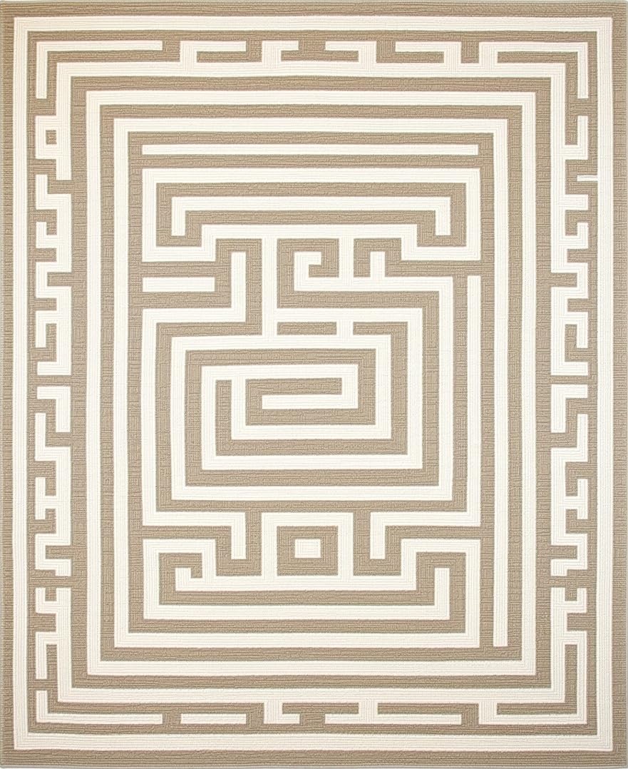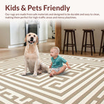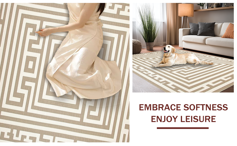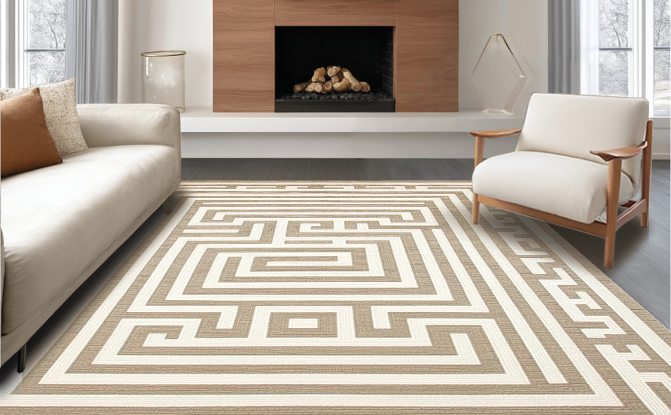 Ultra Soft Area Rug, Non Slip, Stain Resistant, Washable Area Rugs for Living Room, Bedroom, Artistic Curved Geometric Accents(Beige) Overview: