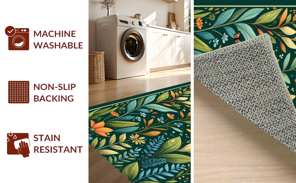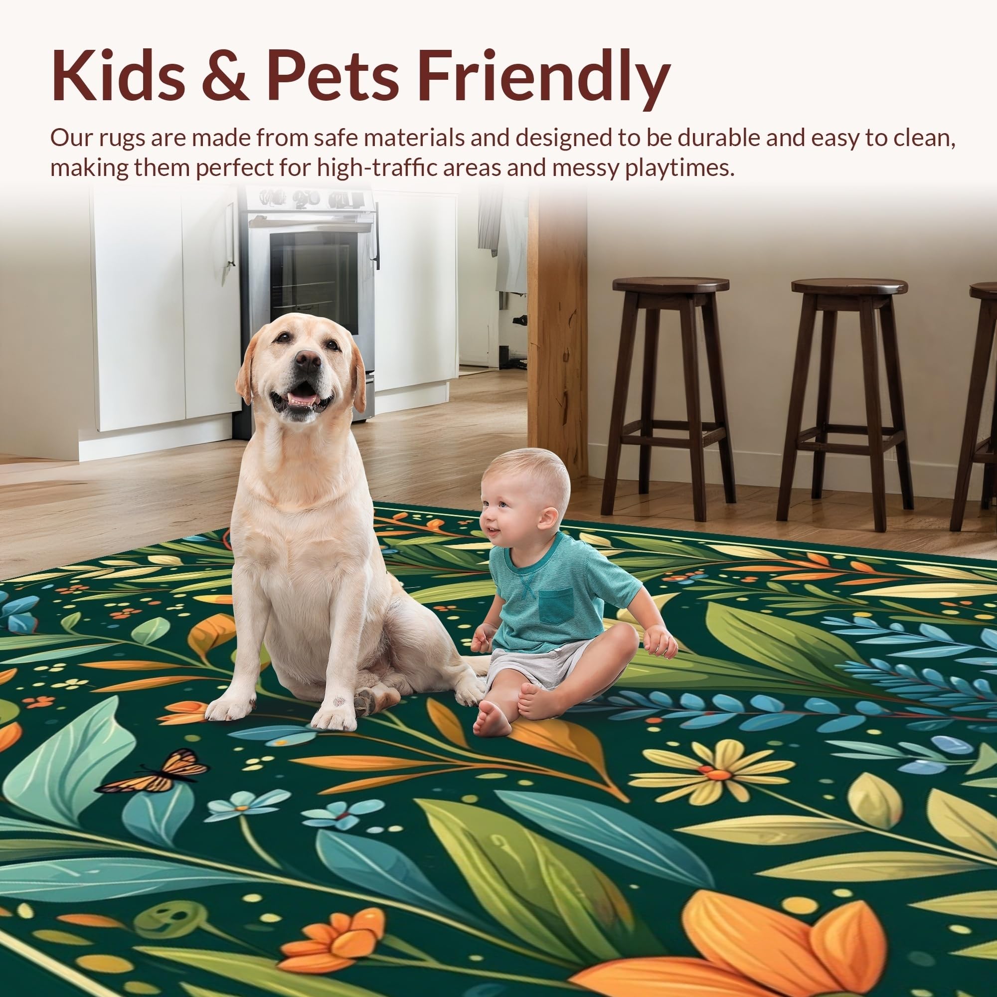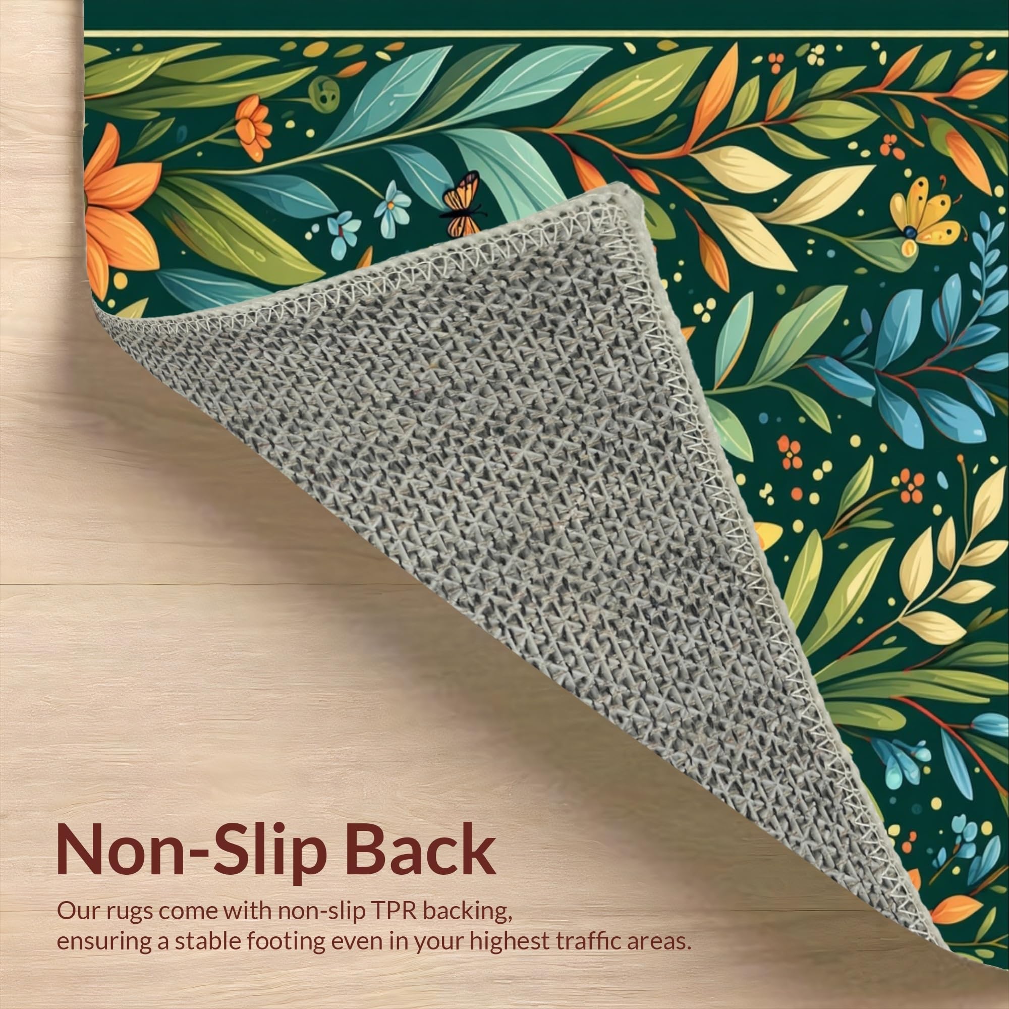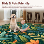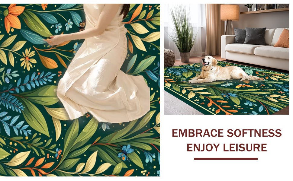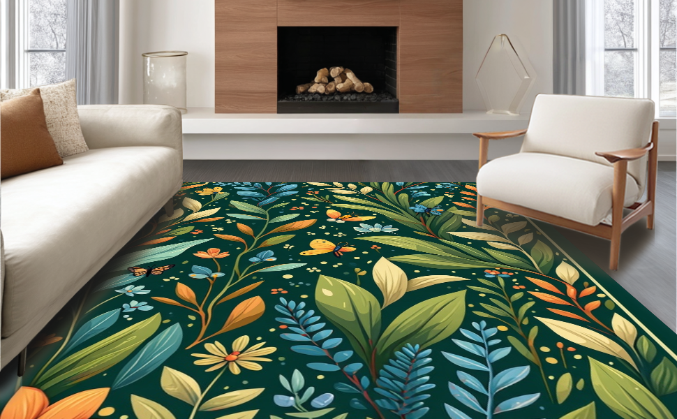 Ultra Soft Area Rug, Non Slip, Stain Resistant, Washable Area Rugs for Living Room, Bedroom, Artistic Dark Green Botanical Theme(Green) Overview: