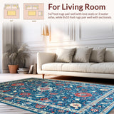 Ultra Soft Area Rug, Non Slip, Stain Resistant, Washable Area Rugs for Living Room, Bedroom, Artistic Distressed Floral Design(Blue) Overview: