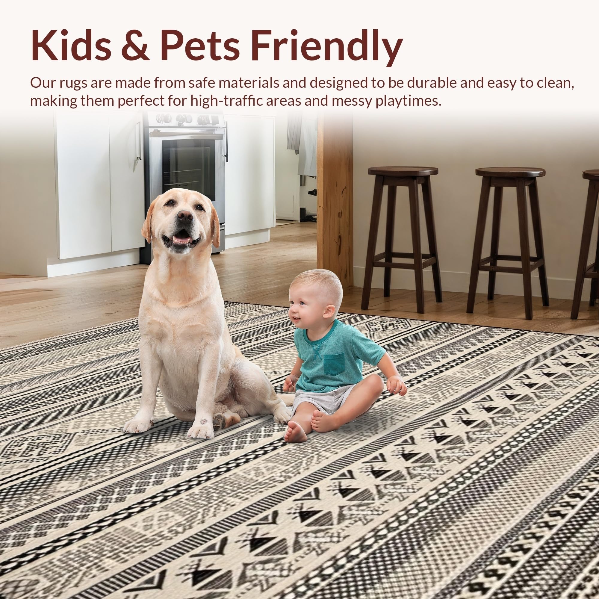 Ultra Soft Area Rug, Non Slip, Stain Resistant, Washable Area Rugs for Living Room, Bedroom, Artistic Distressed Linear Pattern(Gray) Overview:
