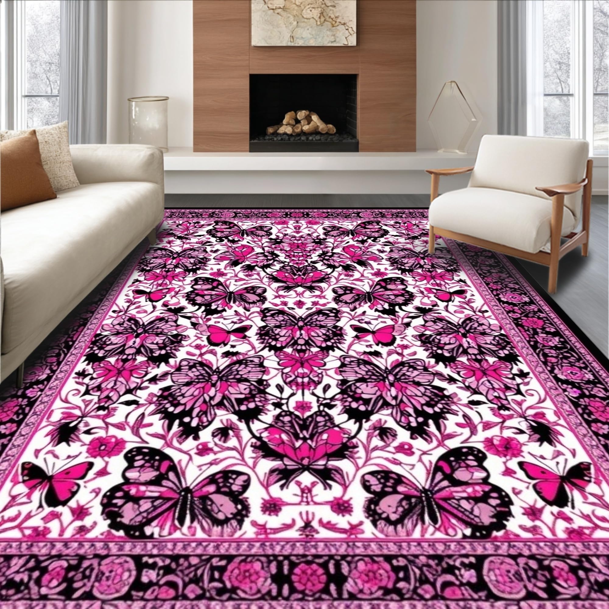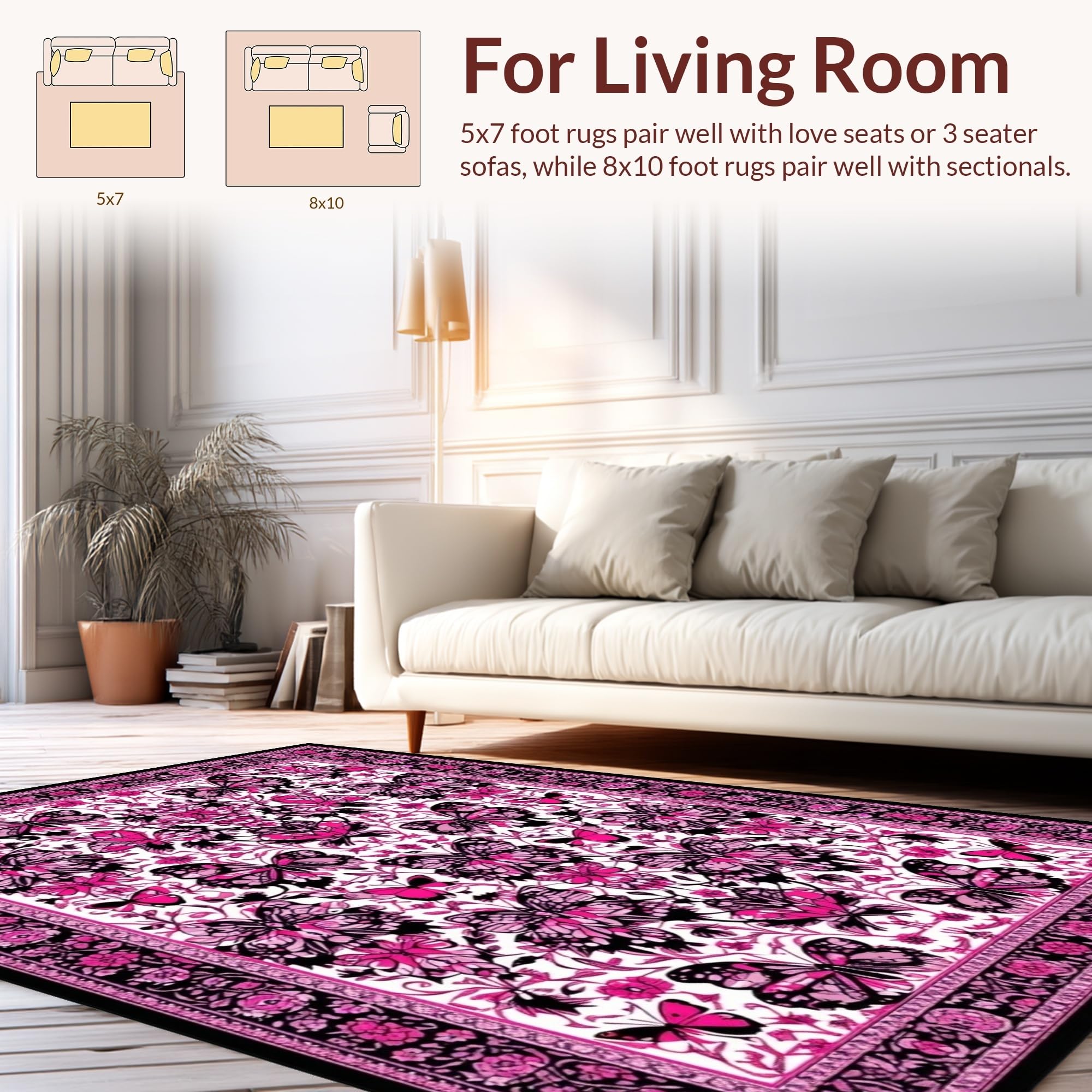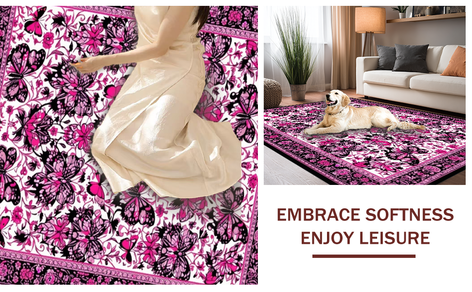 Ultra Soft Area Rug, Non Slip, Stain Resistant, Washable Area Rugs for Living Room, Bedroom, Artistic Dual Tone Statement(Pink) Overview: