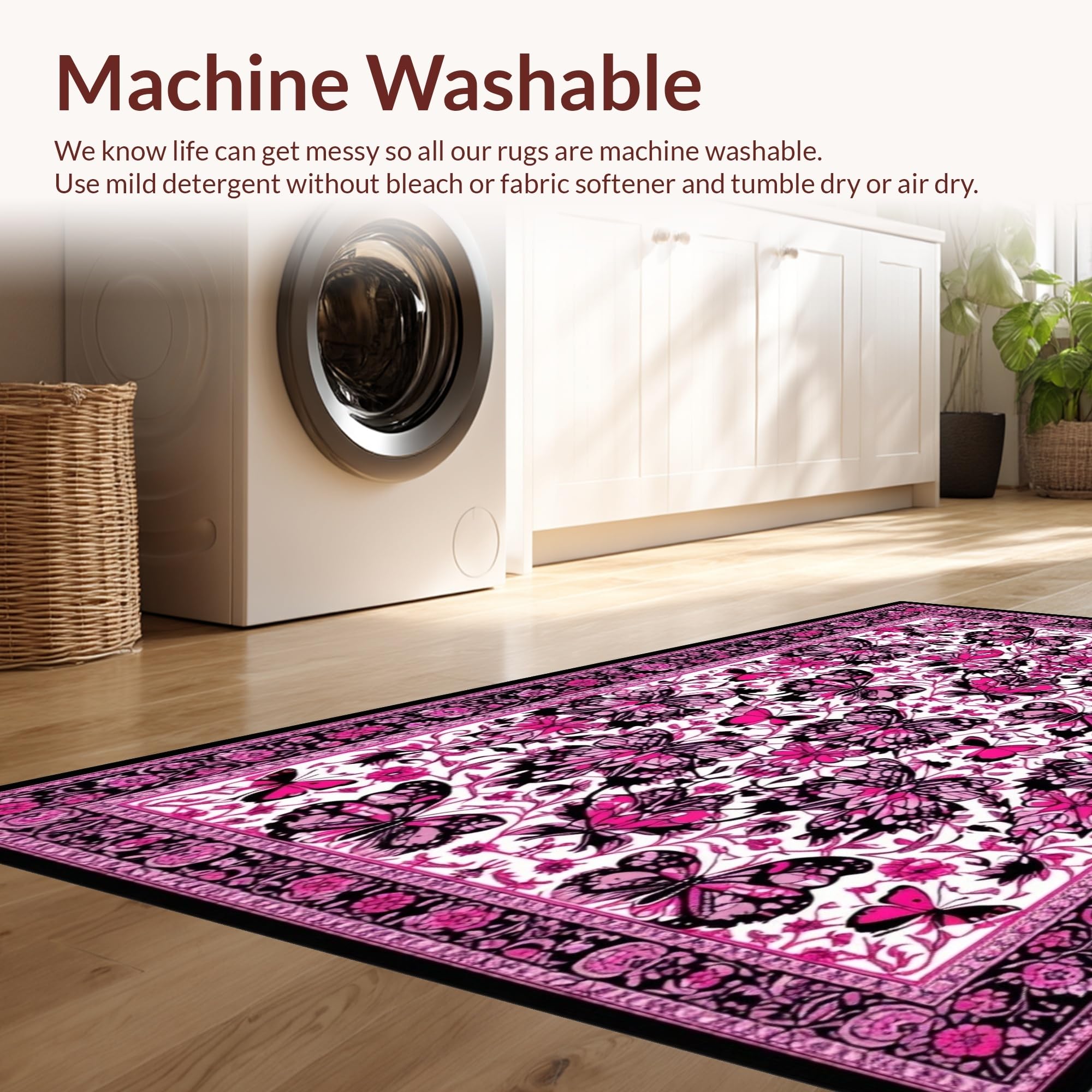 - Machine Washable: Our rugs can be easily thrown in the wash machine.