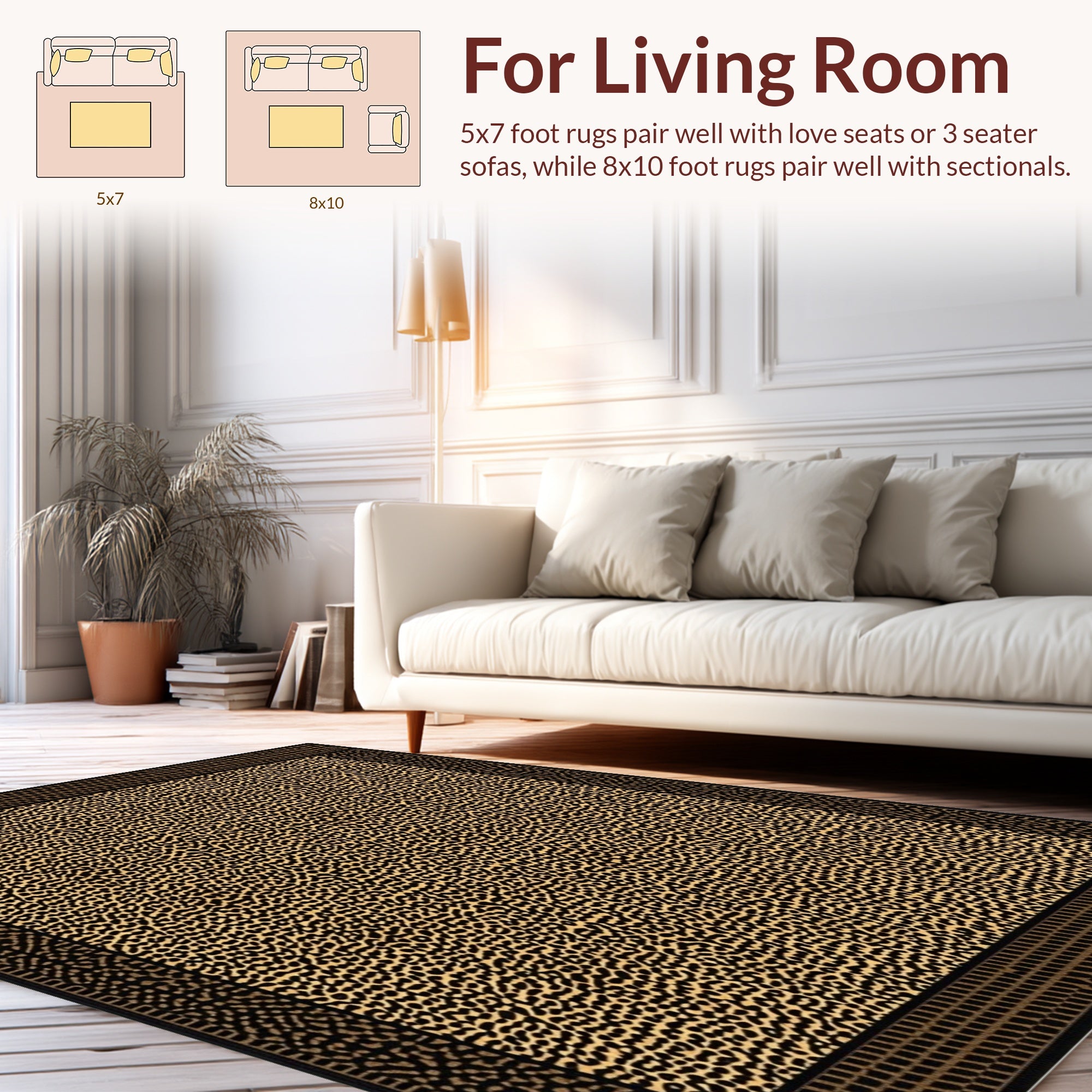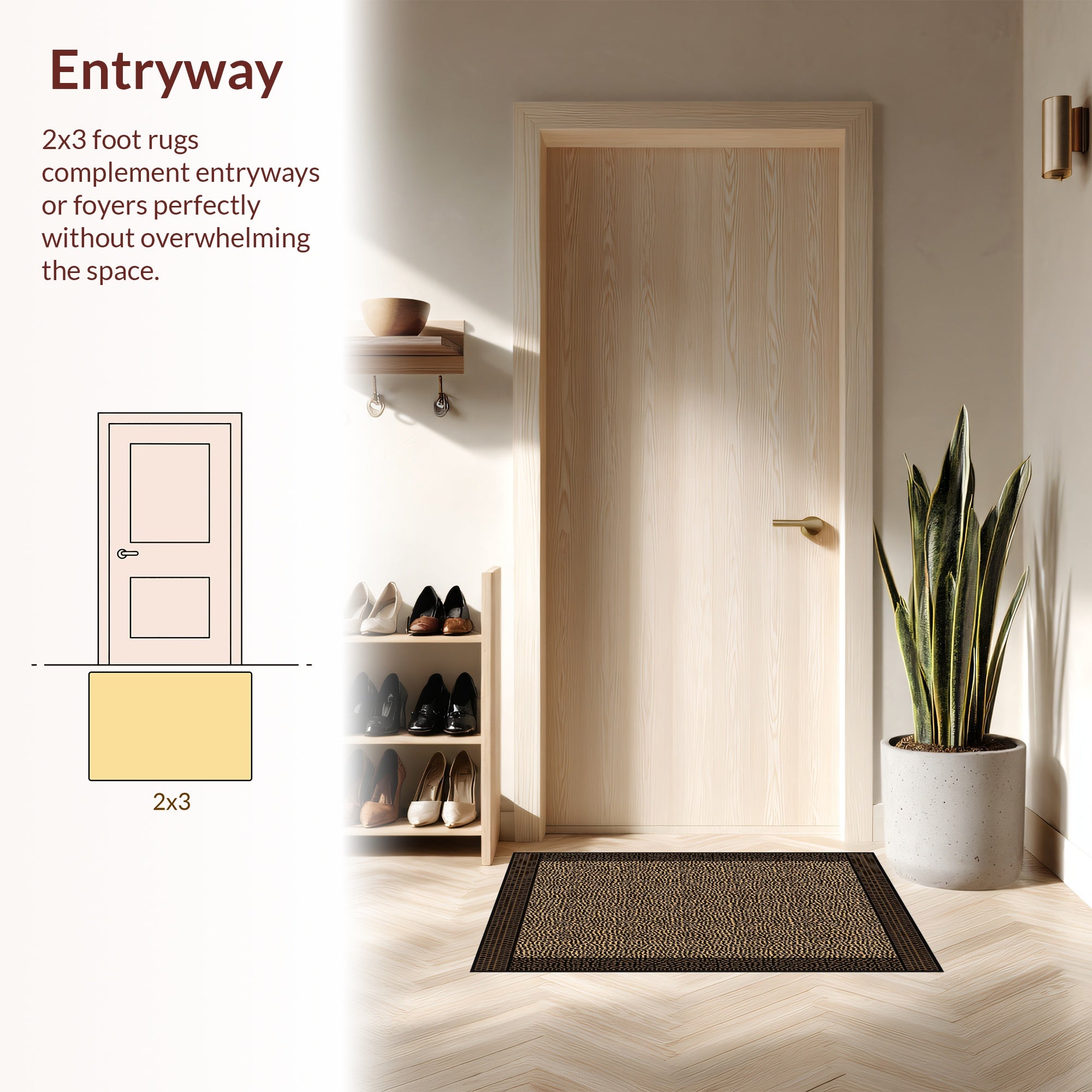 Flatwoven High Traffic Area Rug, Artistic Earthy Toned Print, Non Slip, Stain Resistant, Washable Area Rugs for Living Room, Bedroom (Brown) Overview: