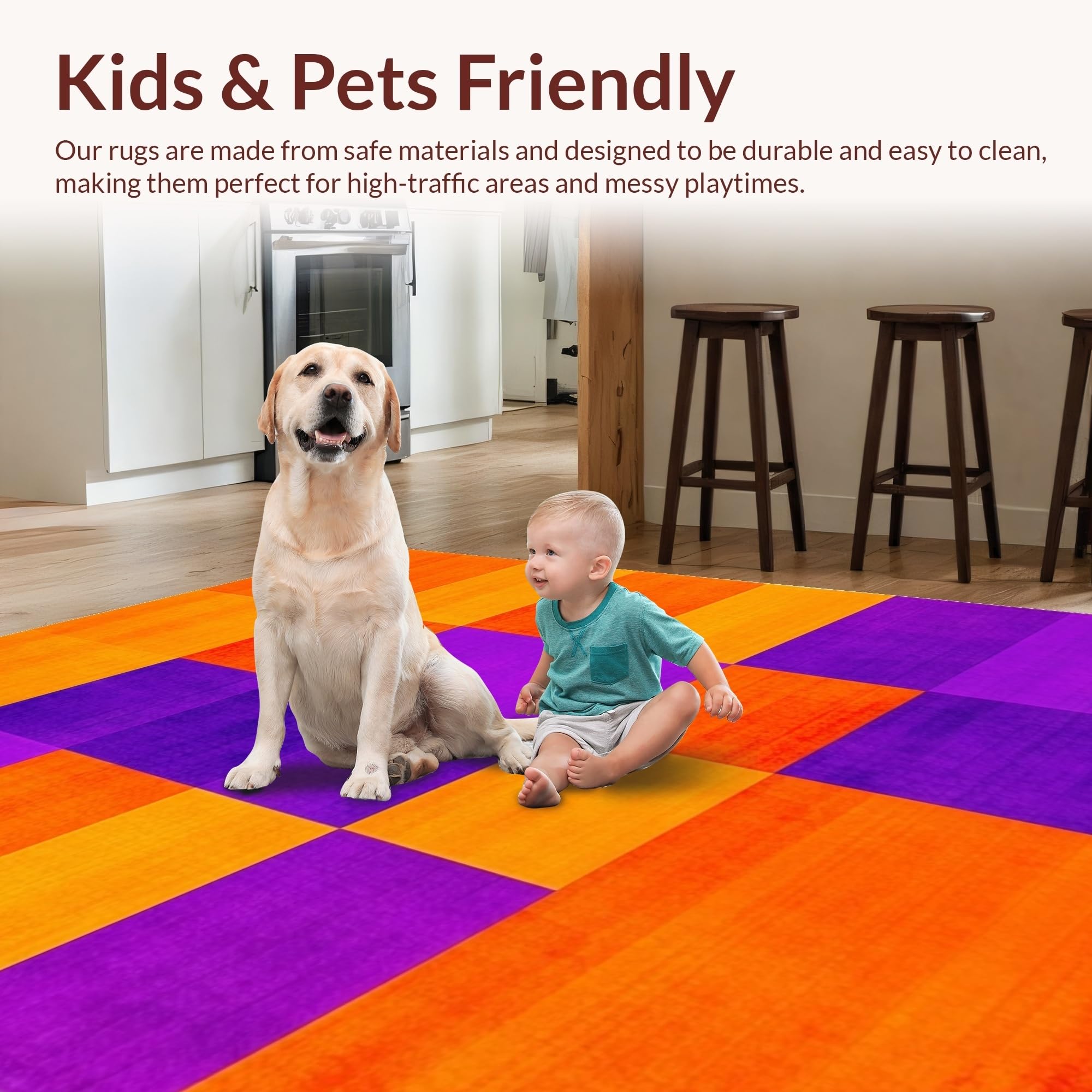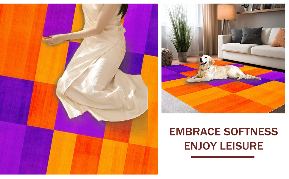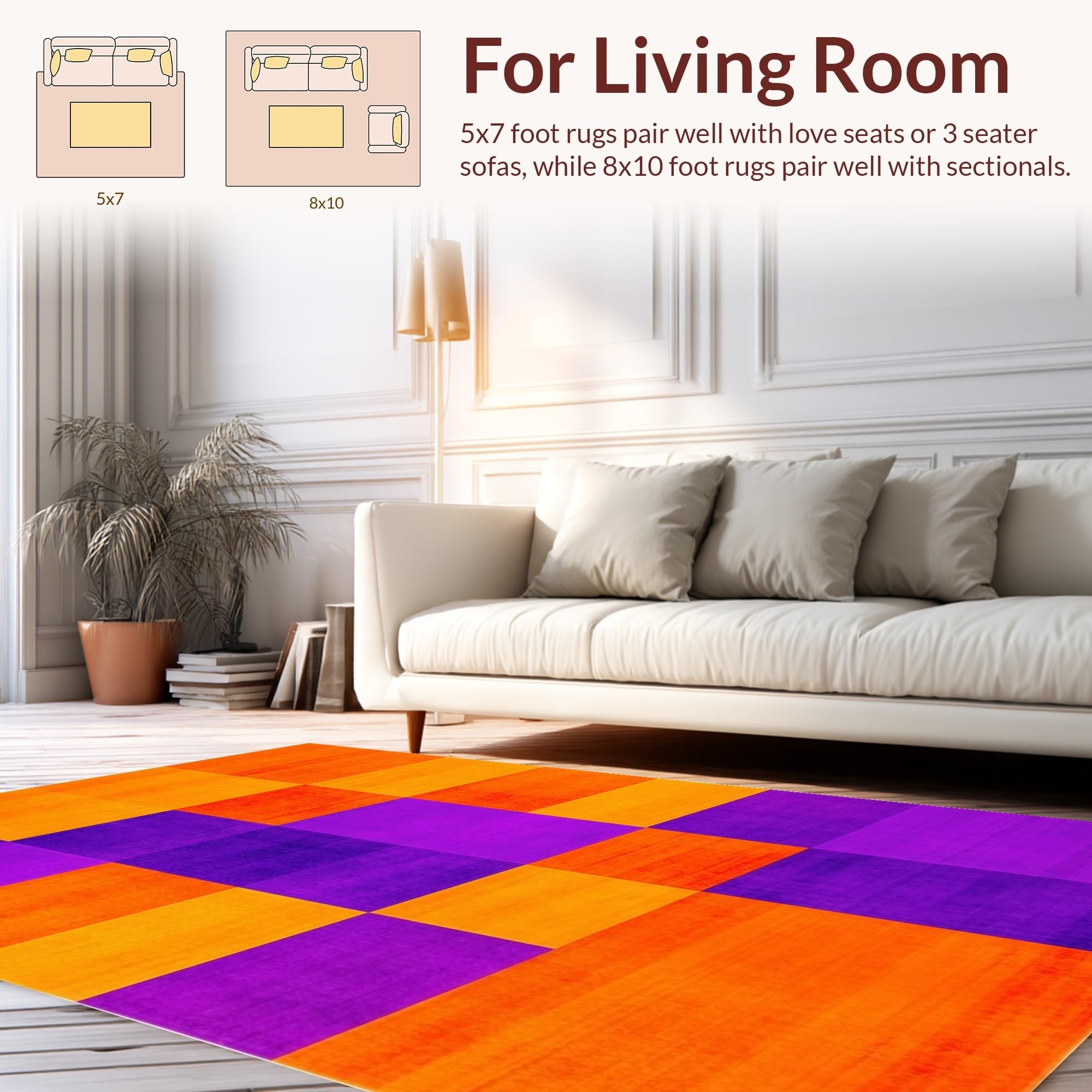 Ultra Soft Area Rug, Non Slip, Stain Resistant, Washable Area Rugs for Living Room, Bedroom, Artistic Energetic Motion Elements(Purple) Overview: