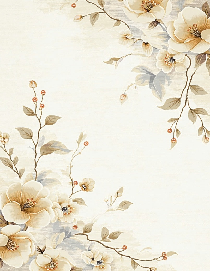 Artistic Floral Beige and Ivory Tones Modern Design(Beige)