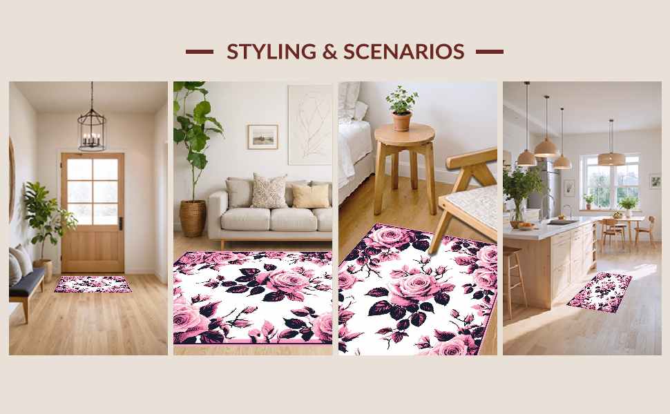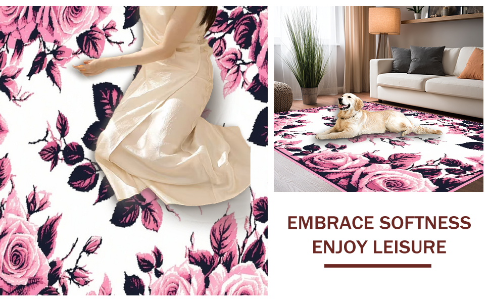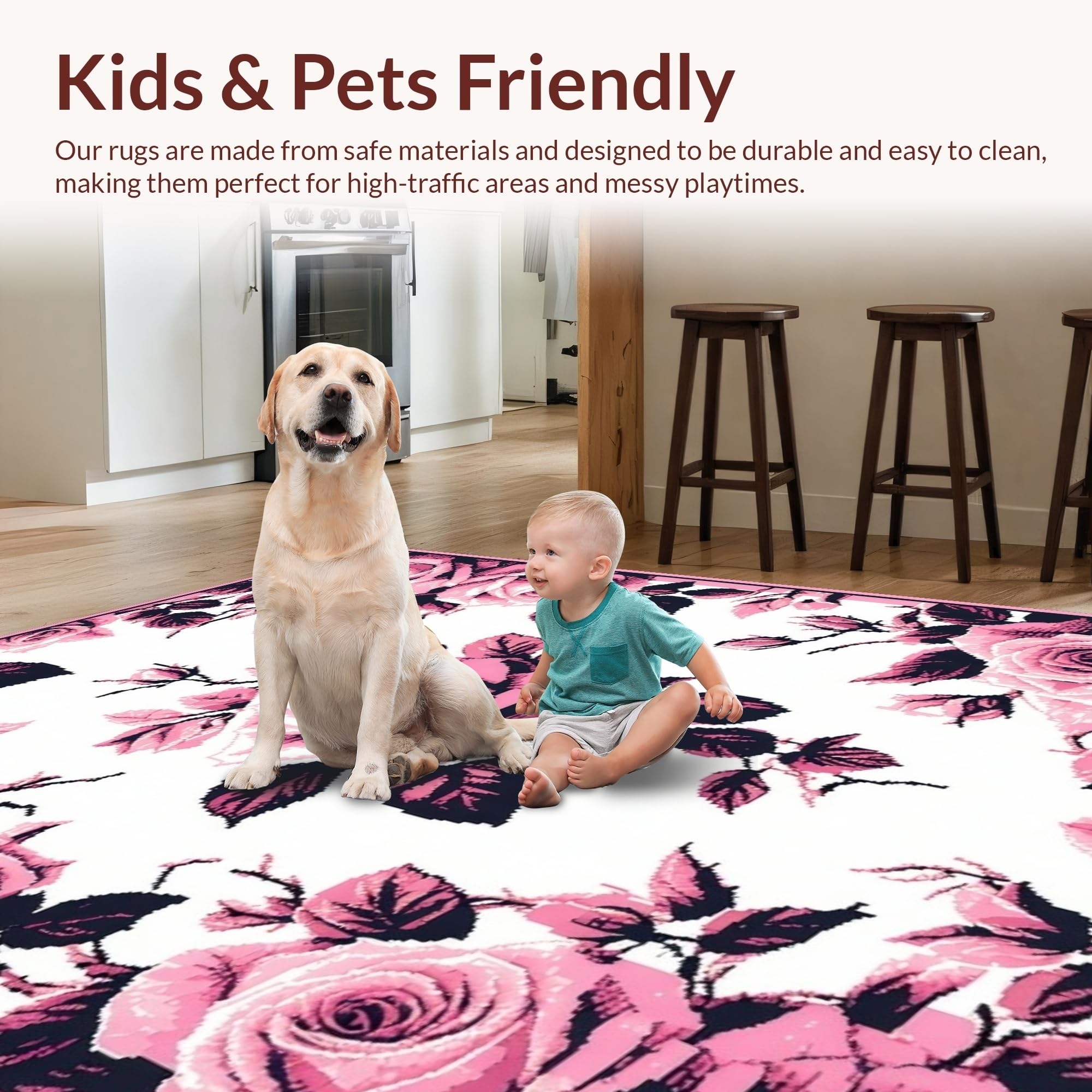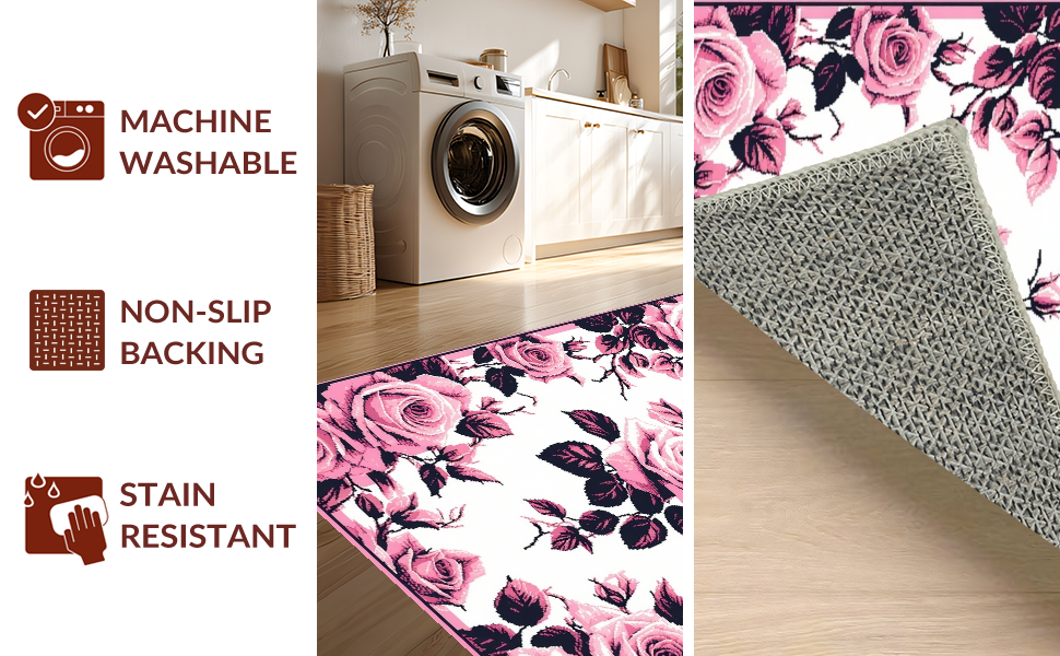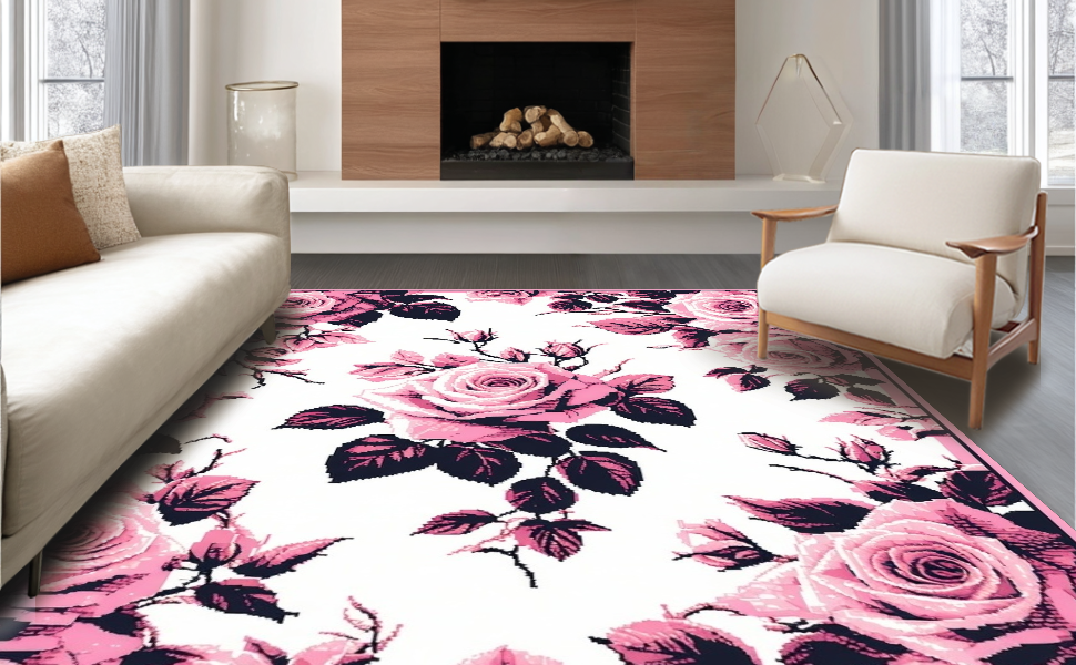 Ultra Soft Area Rug, Non Slip, Stain Resistant, Washable Area Rugs for Living Room, Bedroom, Artistic Garden Inspired Bath Mat(Pink) Overview: