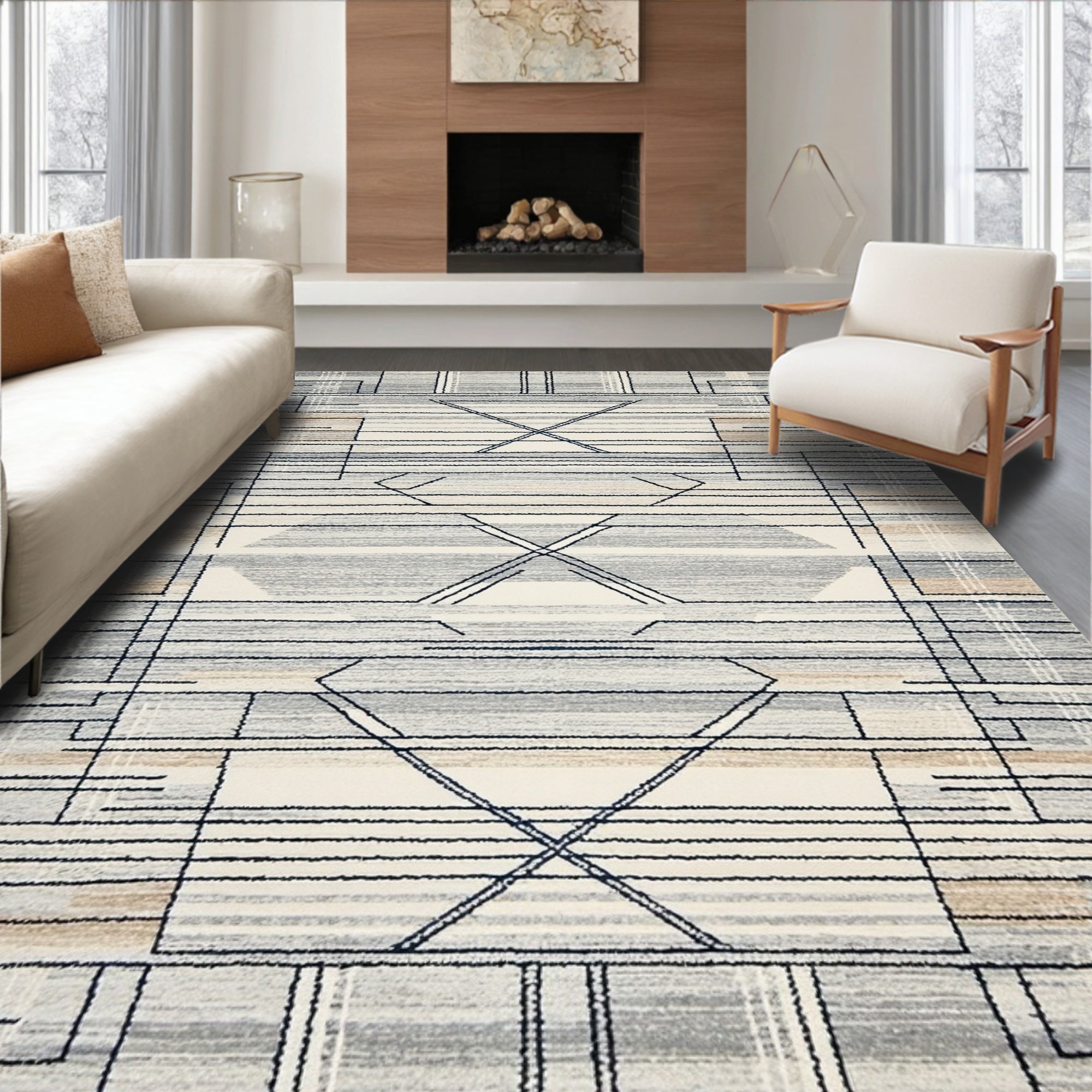 Ultra Soft Area Rug, Non Slip, Stain Resistant, Washable Area Rugs for Living Room, Bedroom, Artistic Geometric Area Boho Grey Beige(Gray) Overview: