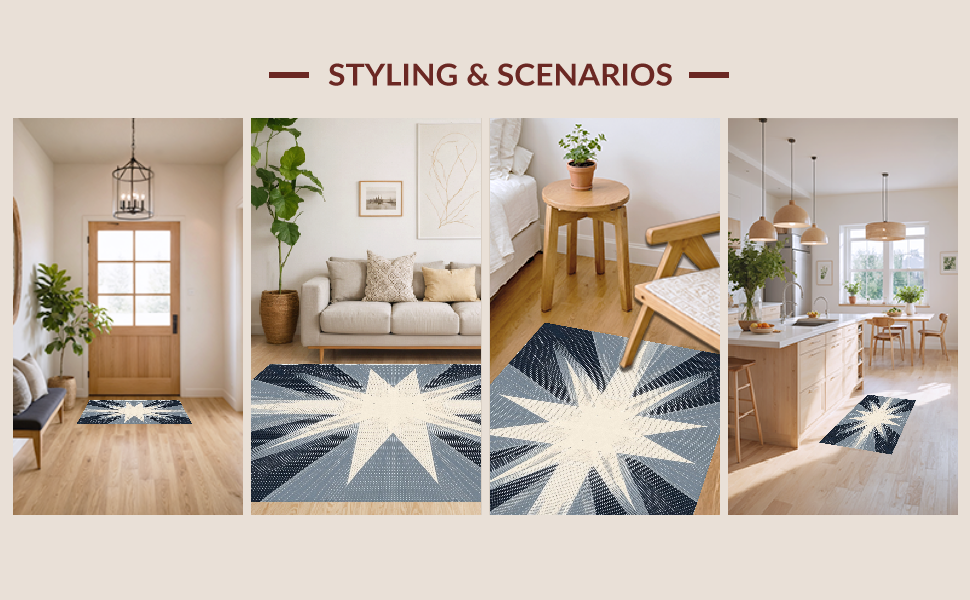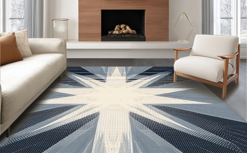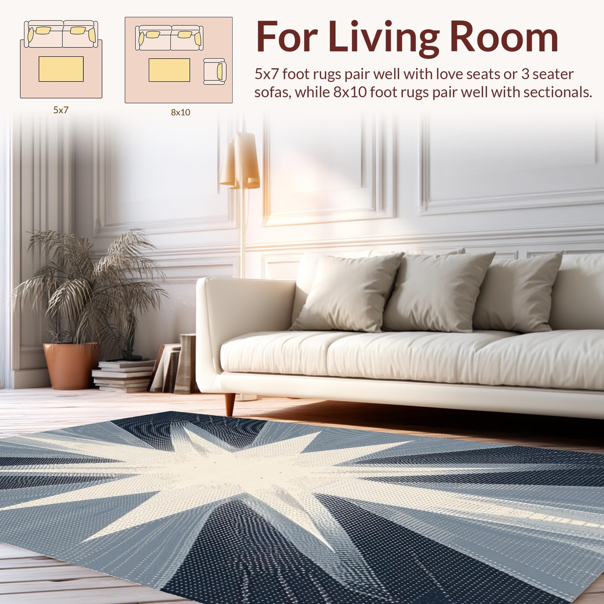 Ultra Soft Area Rug, Non Slip, Stain Resistant, Washable Area Rugs for Living Room, Bedroom, Artistic Geometric Star Visual Theme(Gray) Overview: