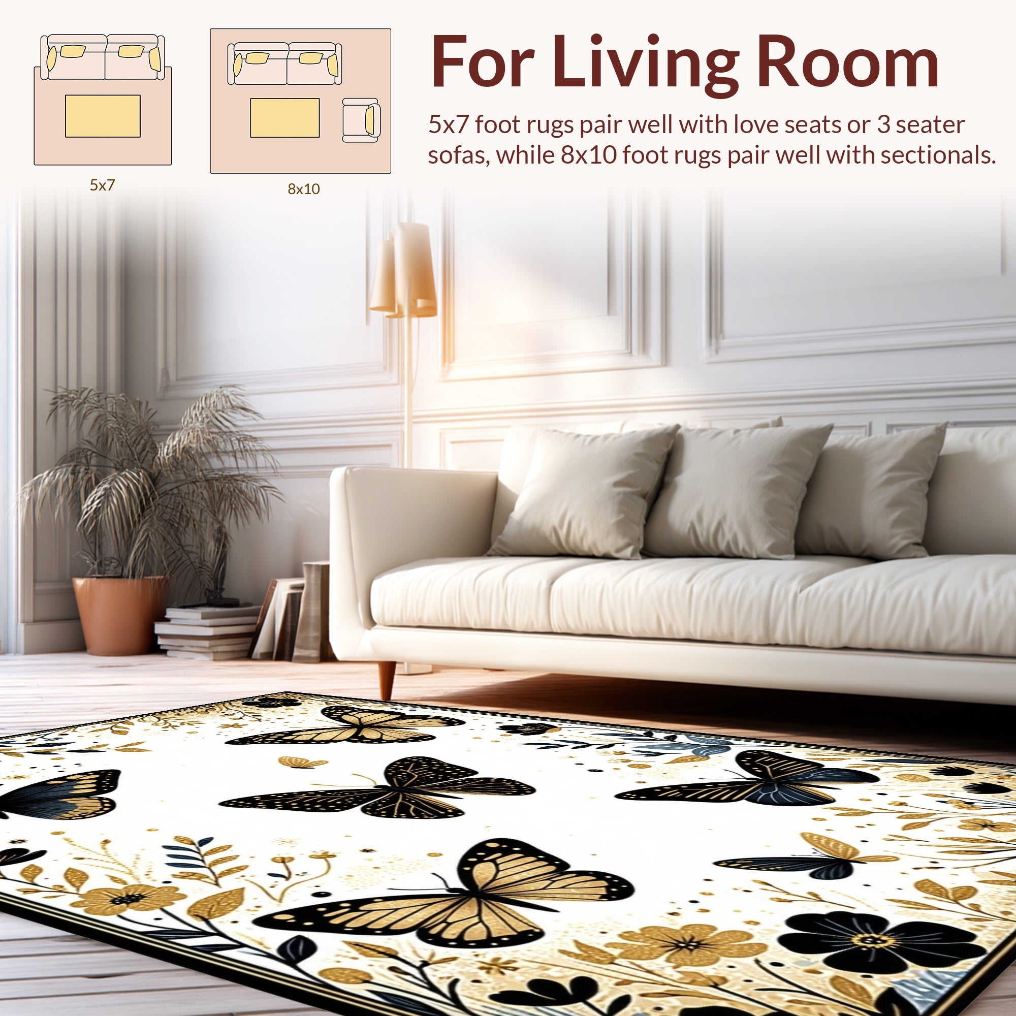 Flatwoven High Traffic Area Rug, Artistic Insect, Non Slip, Stain Resistant, Washable Area Rugs for Living Room, Bedroom (Gold) Overview: