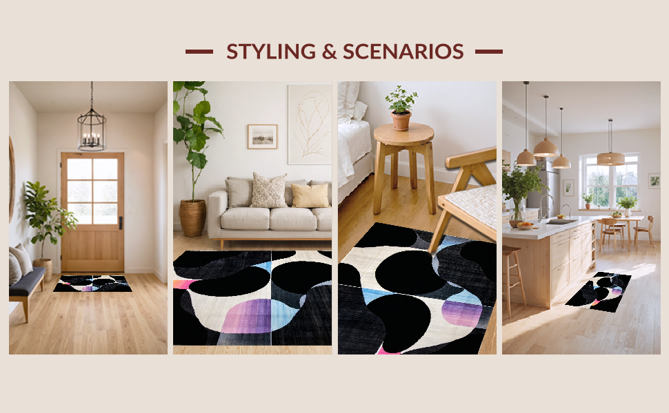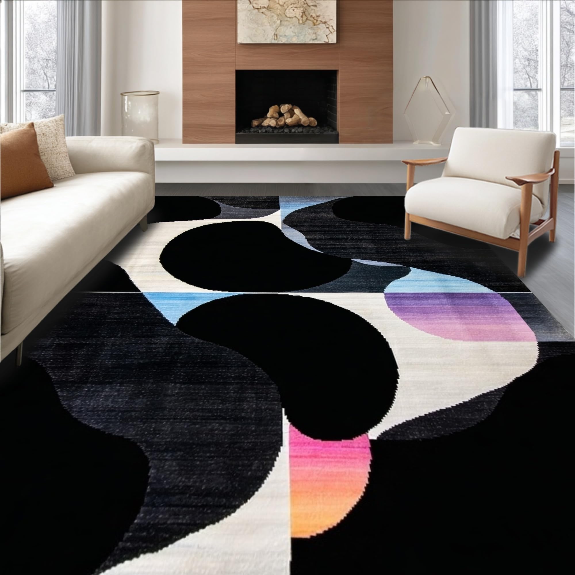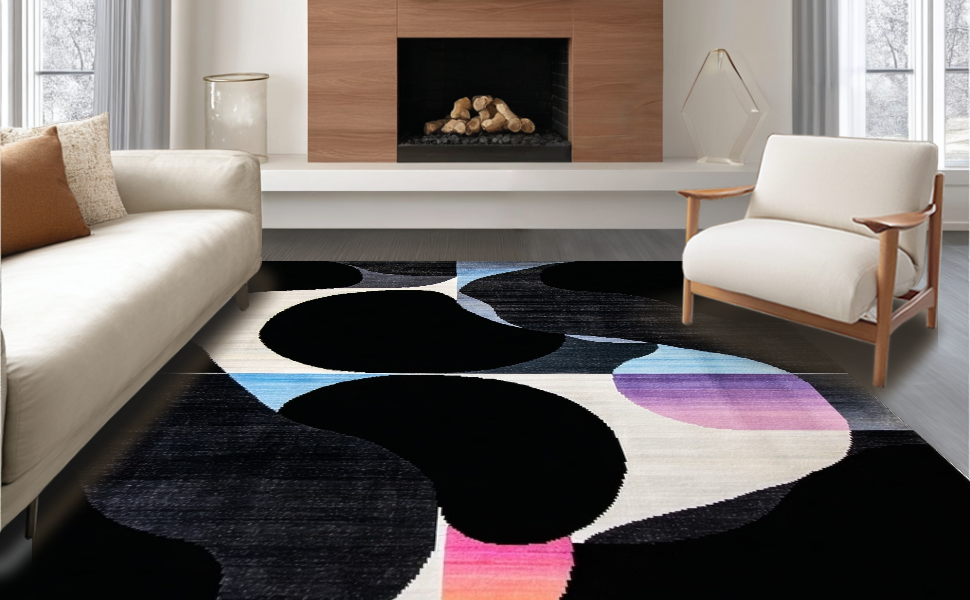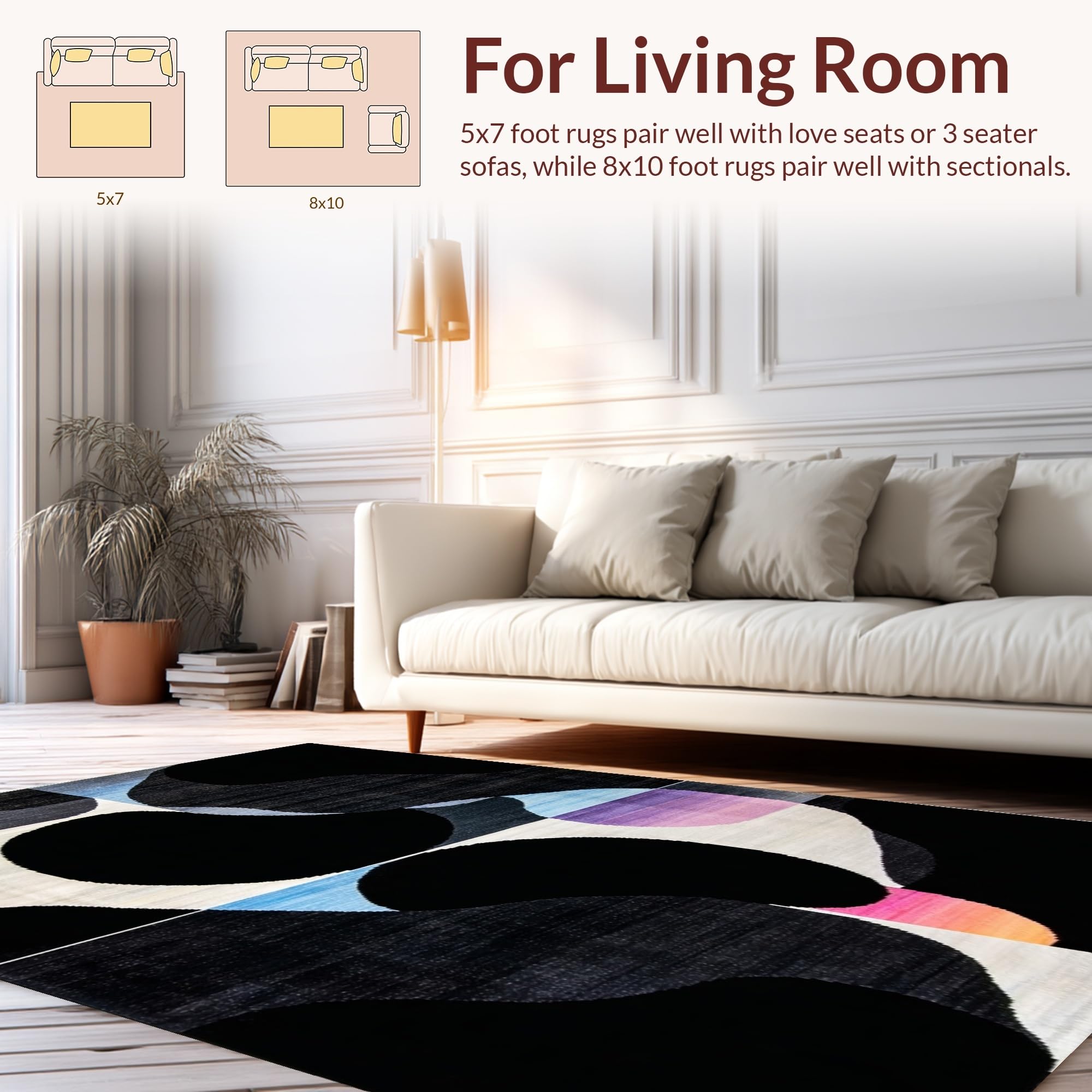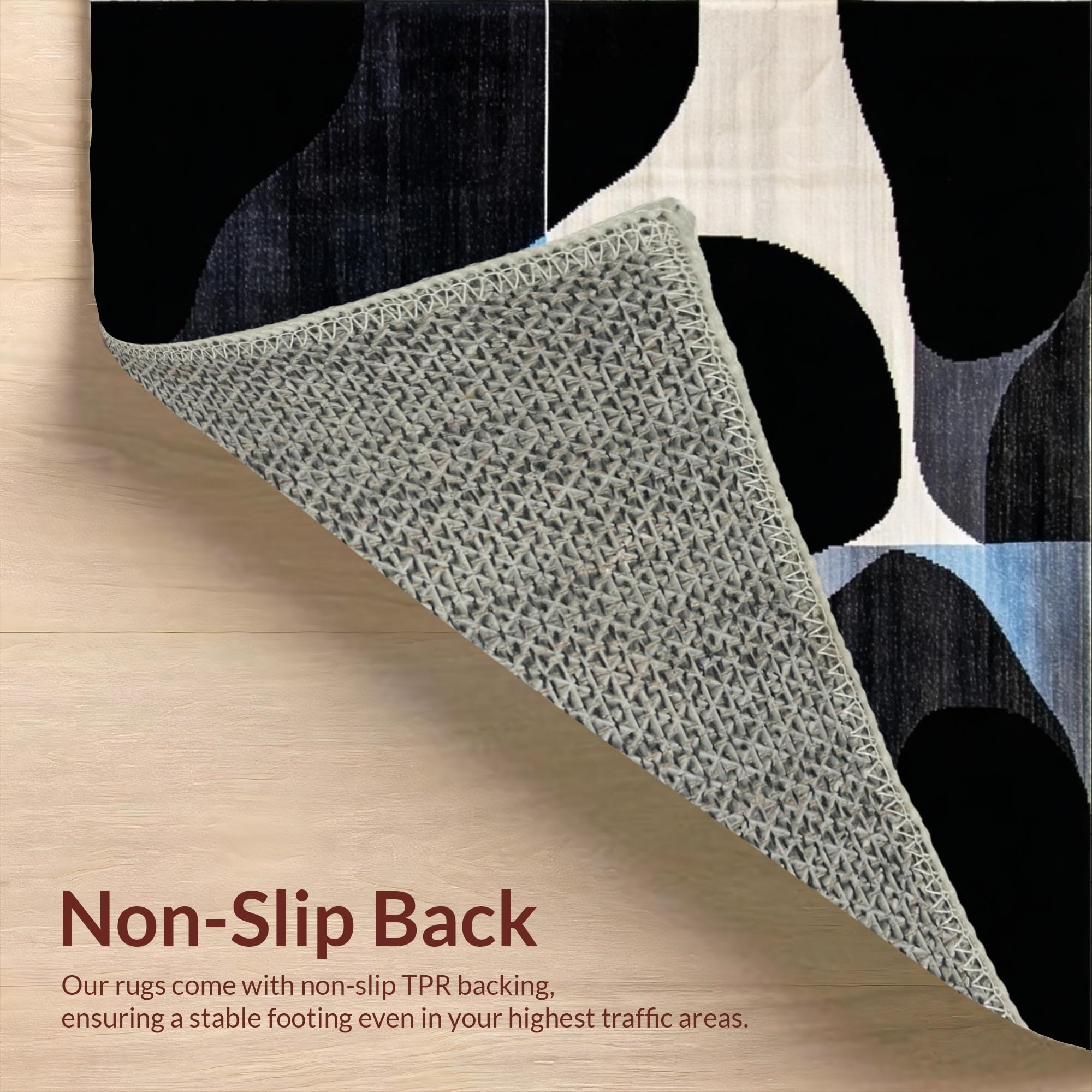 Ultra Soft Area Rug, Non Slip, Stain Resistant, Washable Area Rugs for Living Room, Bedroom, Artistic Linear Gray and White Aesthetic(Black) Overview: