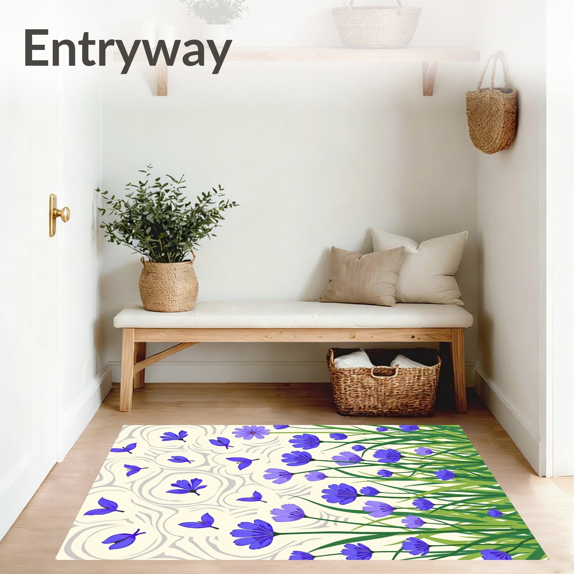Ultra Soft Area Rug, Non Slip, Stain Resistant, Washable Area Rugs for Living Room, Bedroom, Artistic Meadow Symphony Blossom(Blue) Overview: