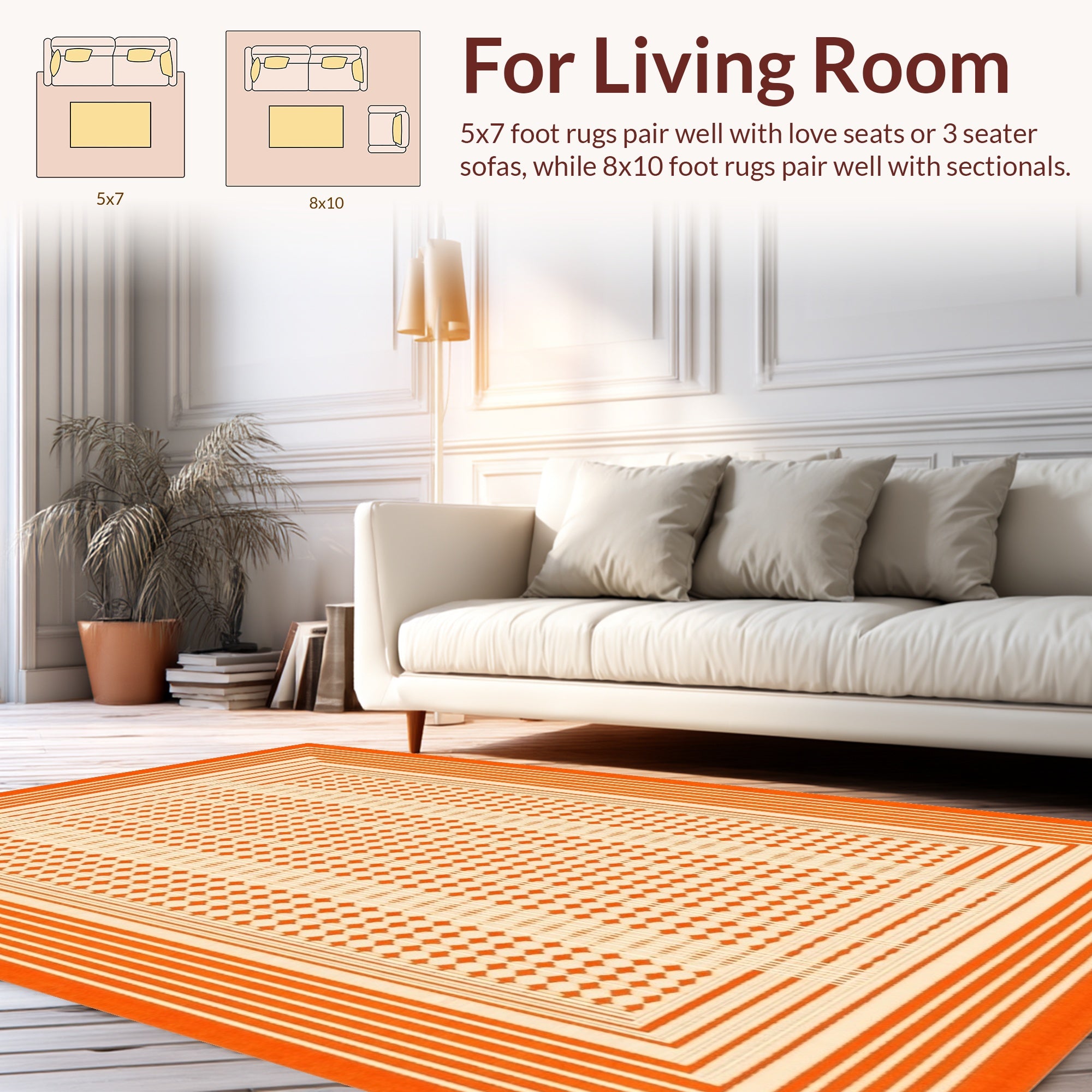 Flatwoven High Traffic Area Rug, Artistic Mid Geometric Flair, Non Slip, Stain Resistant, Washable Area Rugs for Living Room, Bedroom (Orange) Overview: