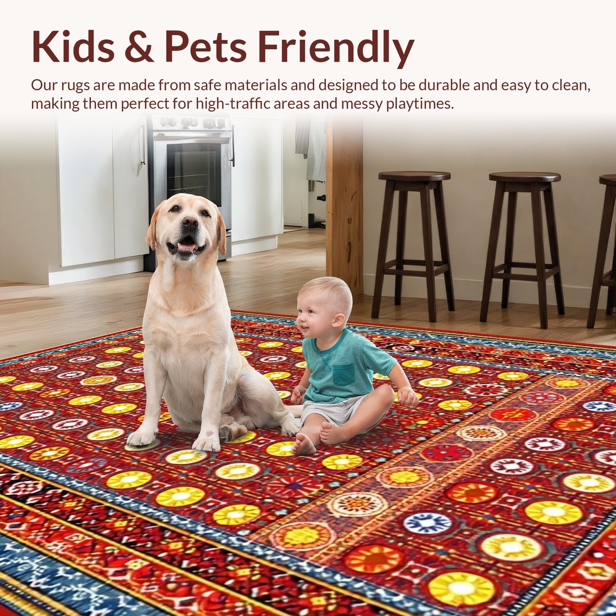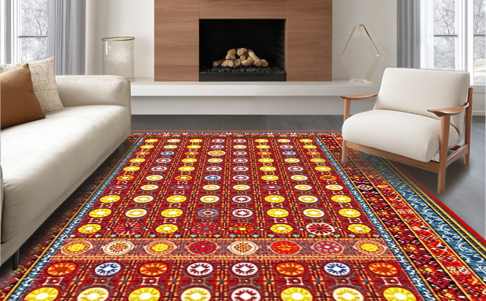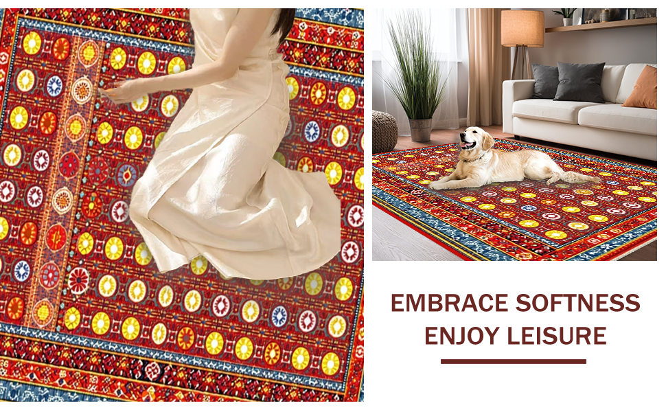 Ultra Soft Area Rug, Non Slip, Stain Resistant, Washable Area Rugs for Living Room, Bedroom, Artistic Multi-Hued Pattern(Red) Overview: