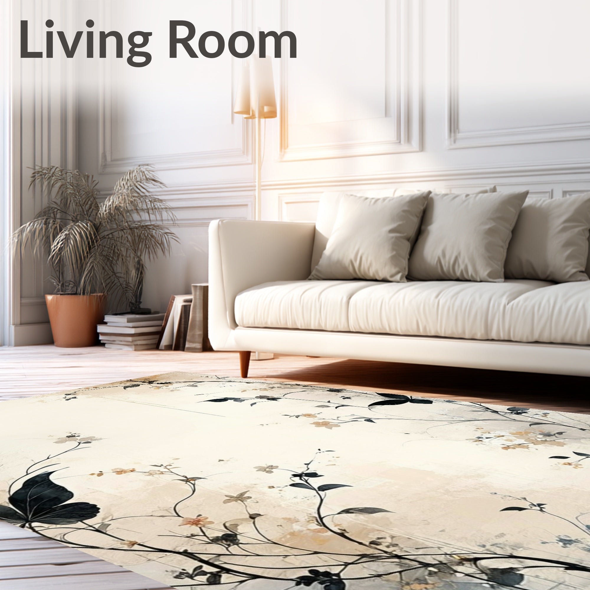 Ultra Soft Area Rug, Non Slip, Stain Resistant, Washable Area Rugs for Living Room, Bedroom, Artistic Nature Inspired Area with Fluttering Wing and Petal Design(Beige) Overview: