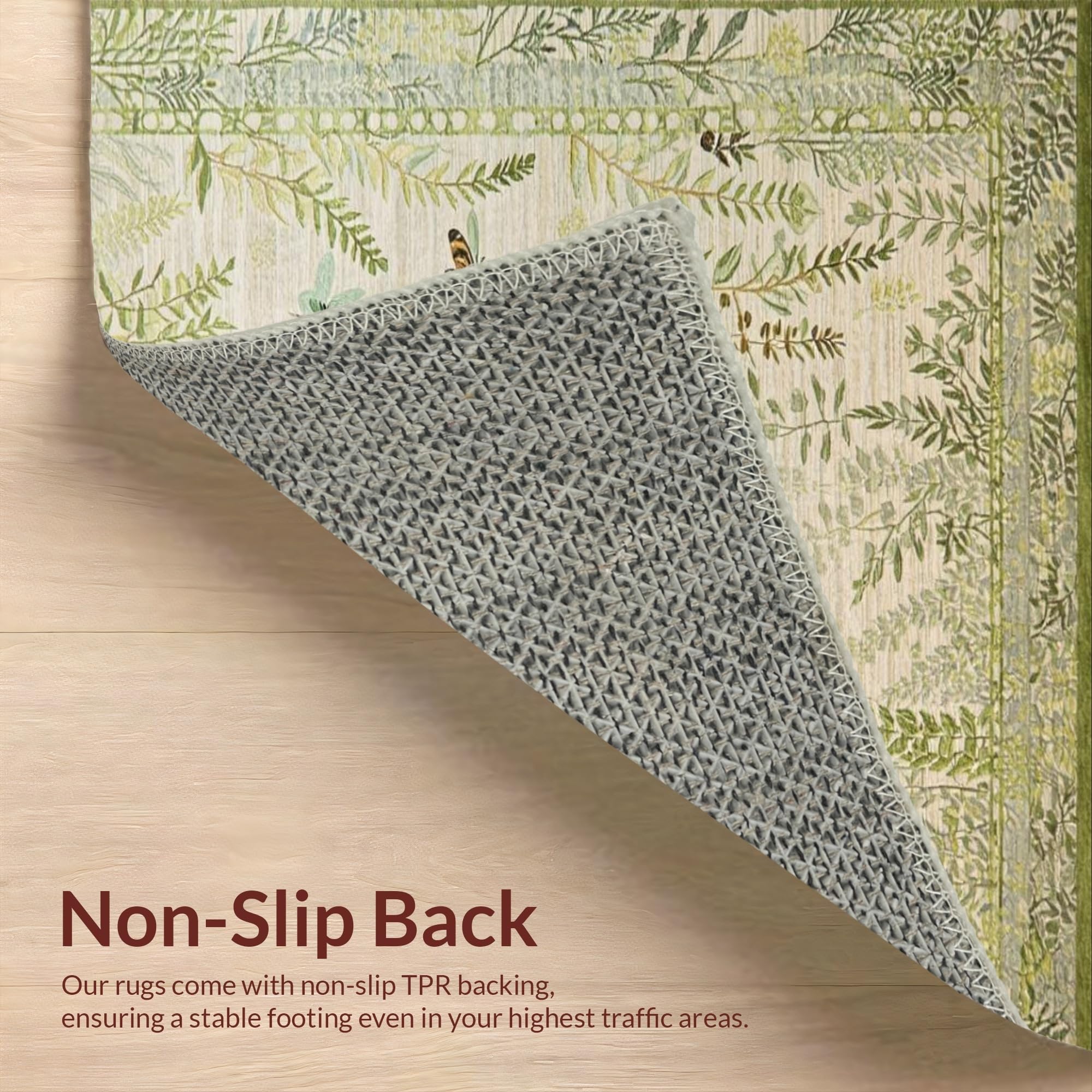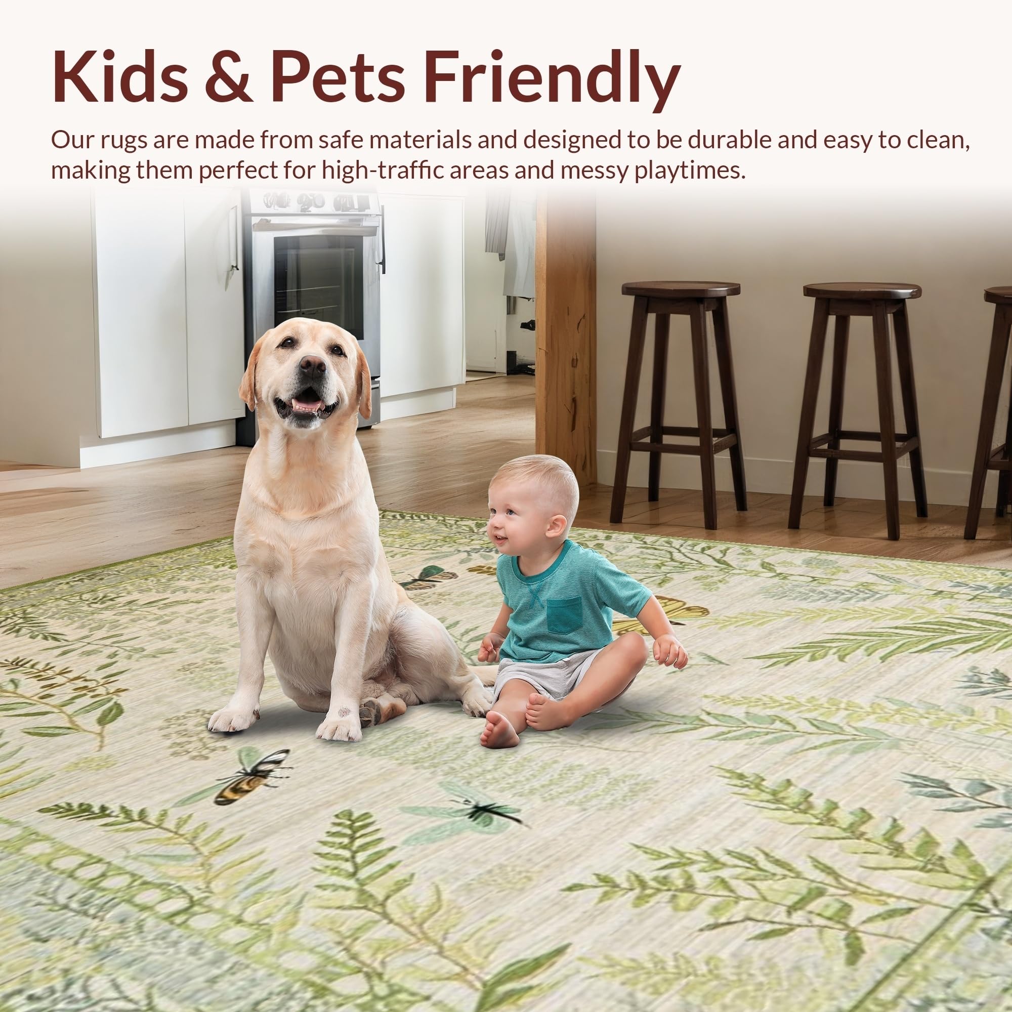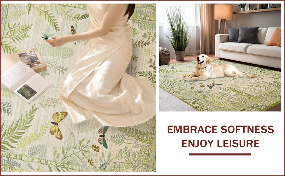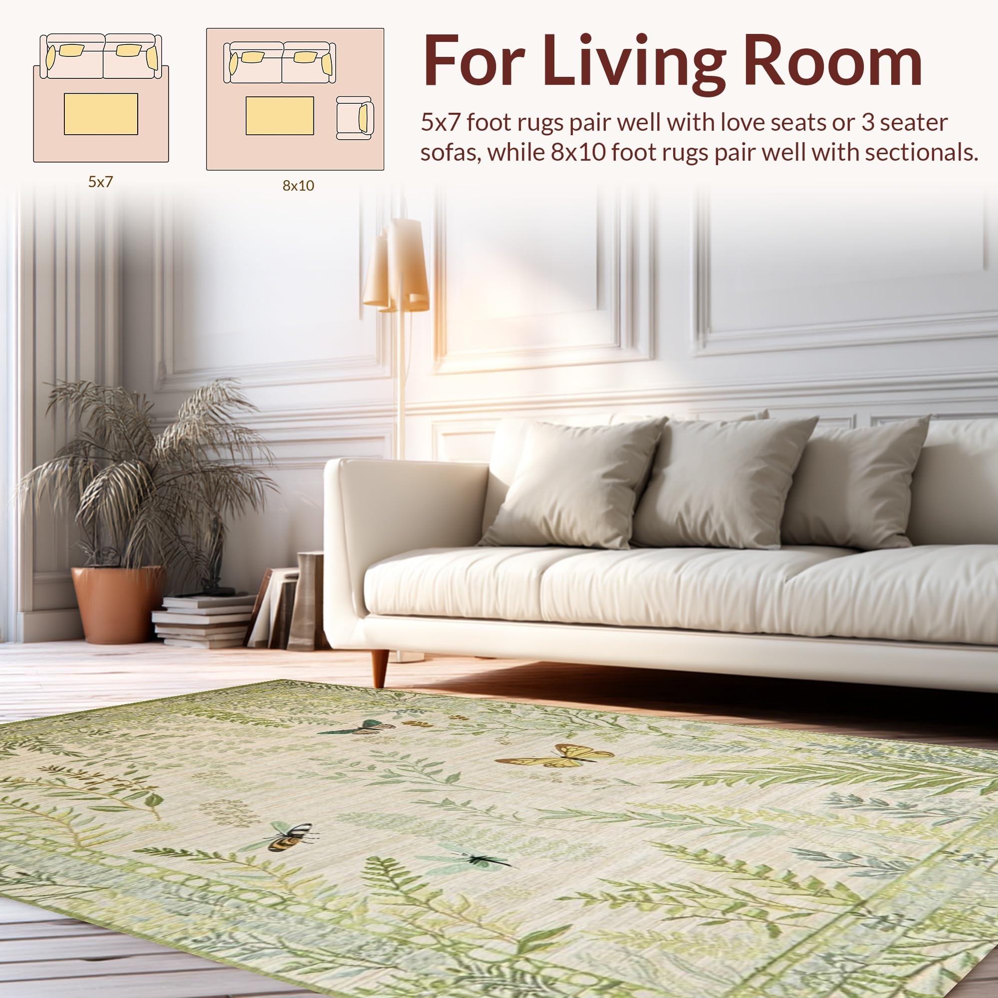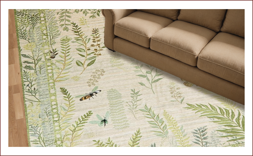 Ultra Soft Area Rug, Non Slip, Stain Resistant, Washable Area Rugs for Living Room, Bedroom, Artistic Nature-Inspired Insect Motif(Beige) Overview: