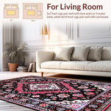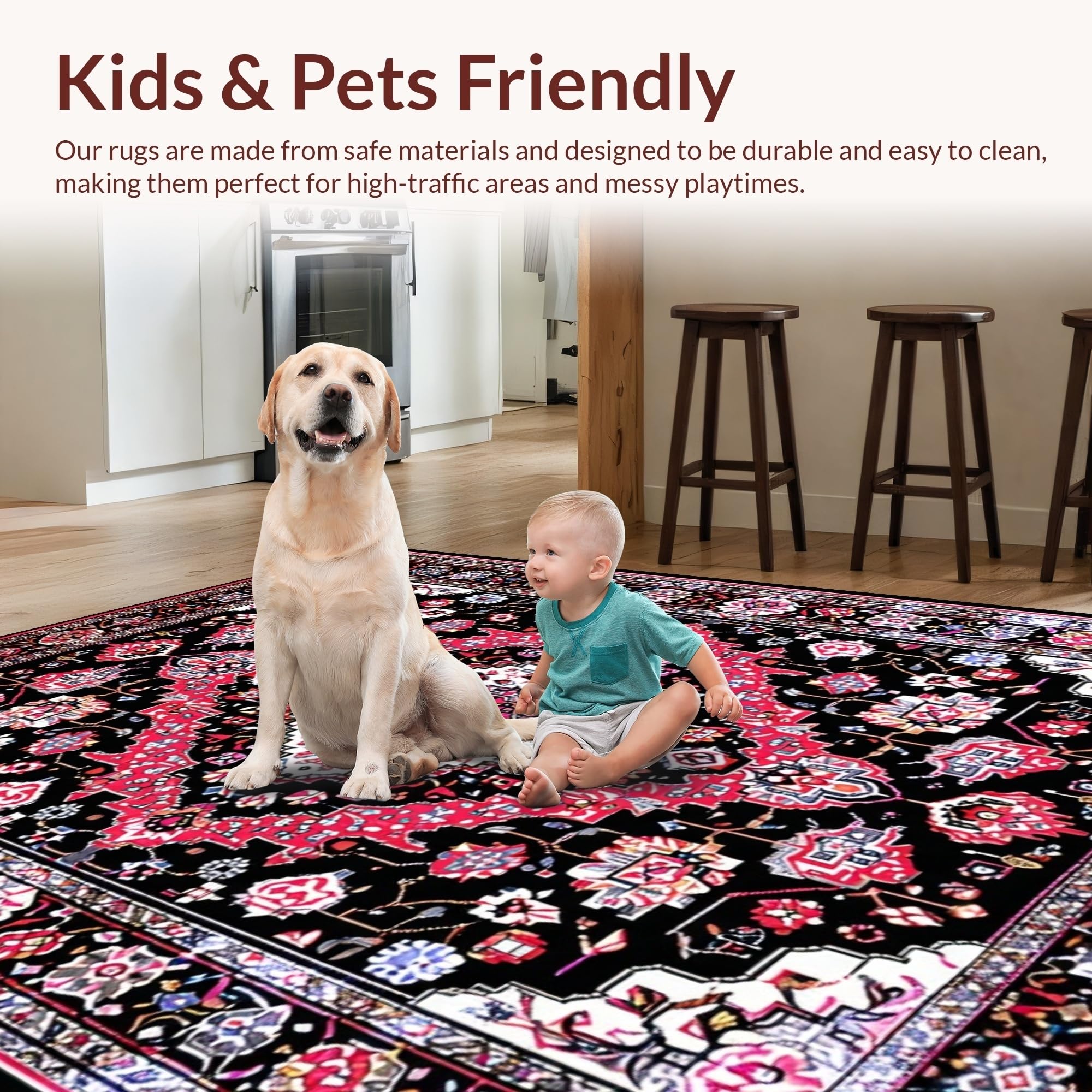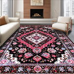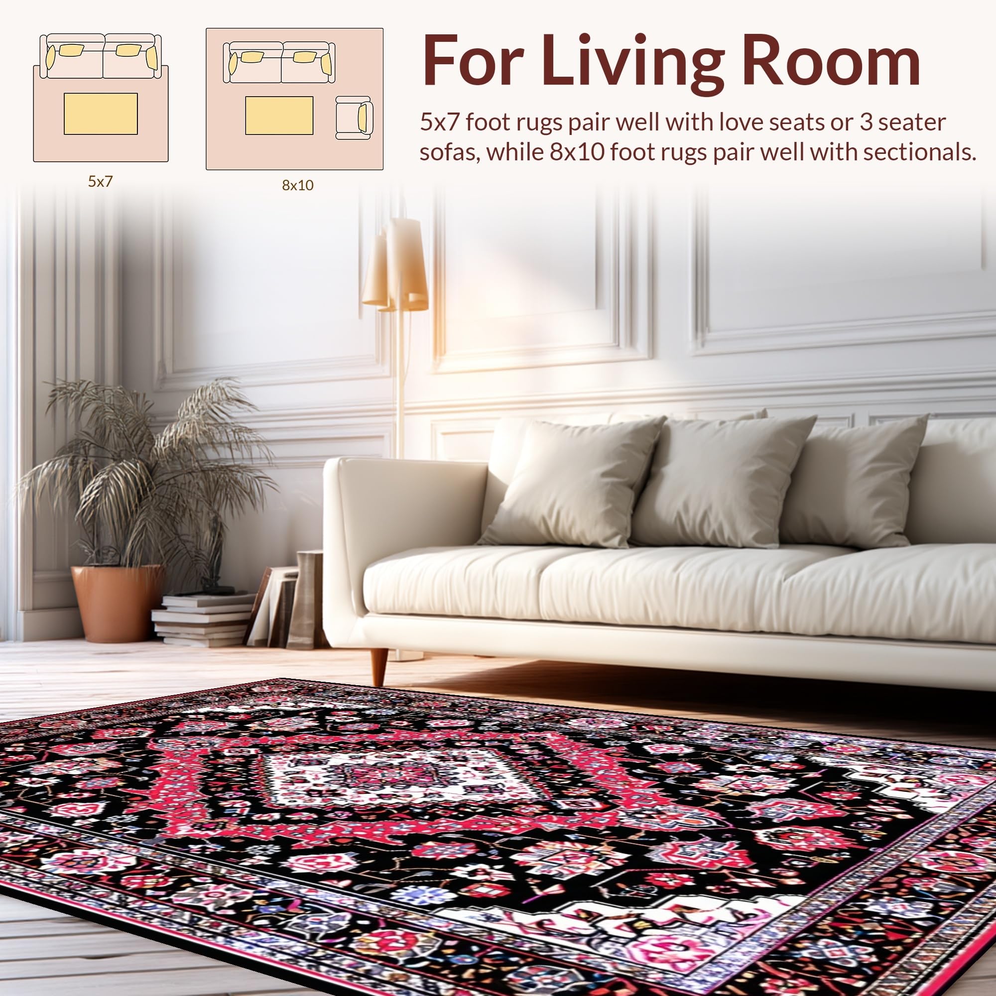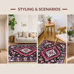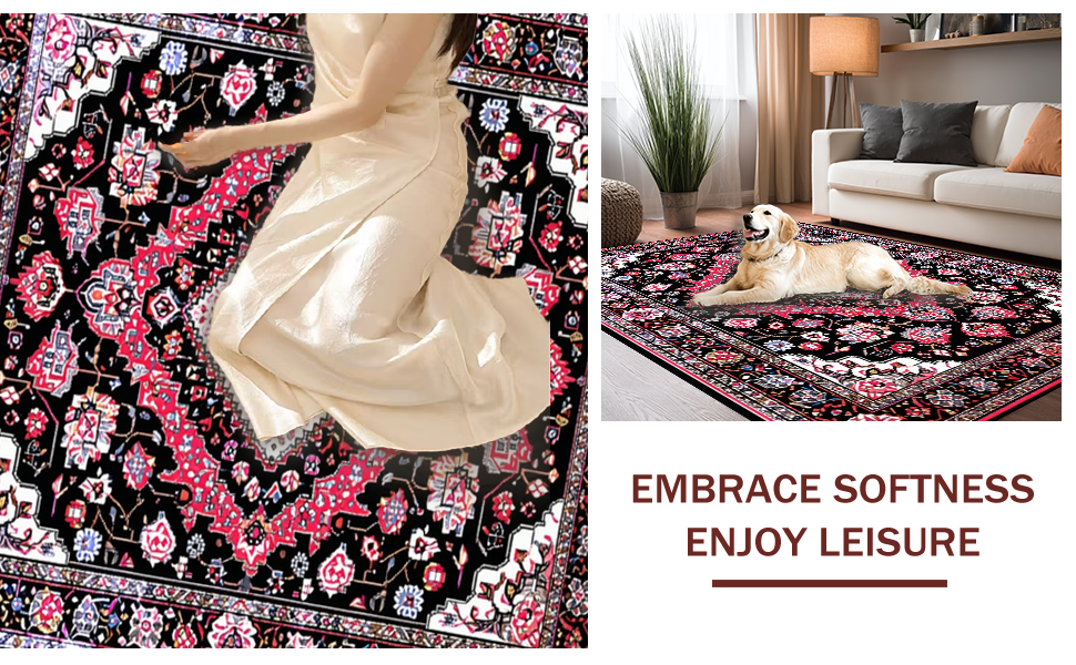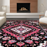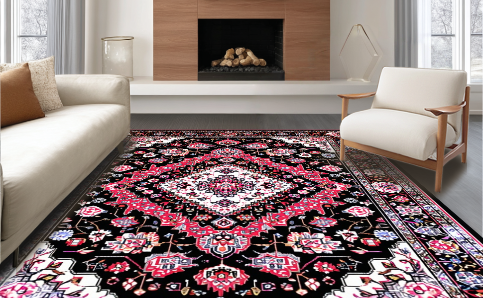 Ultra Soft Area Rug, Non Slip, Stain Resistant, Washable Area Rugs for Living Room, Bedroom, Artistic Ogee Floral Composition(Black) Overview: