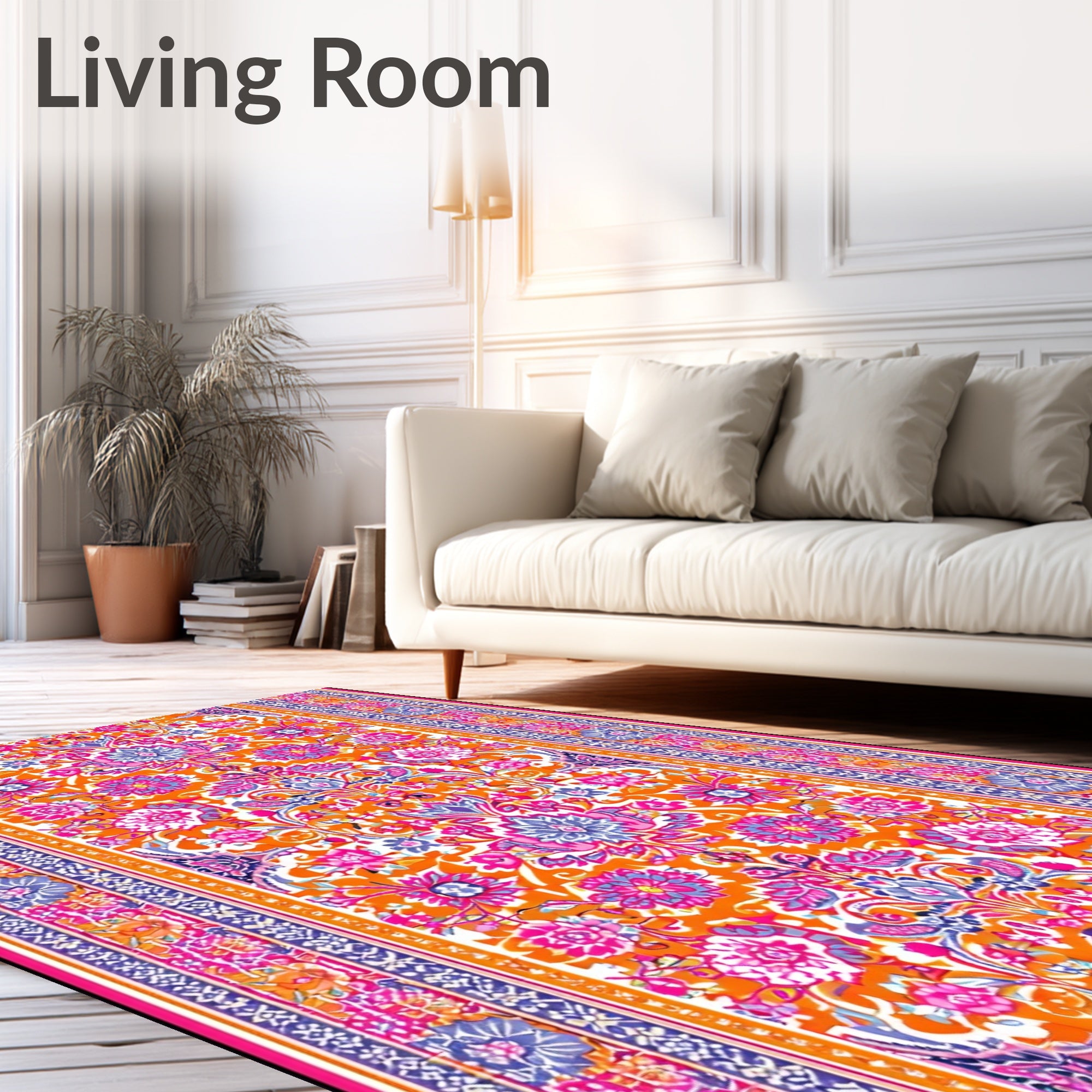 Ultra Soft Area Rug, Non Slip, Stain Resistant, Washable Area Rugs for Living Room, Bedroom, Artistic Paisley Area Runner(Orange) Overview: