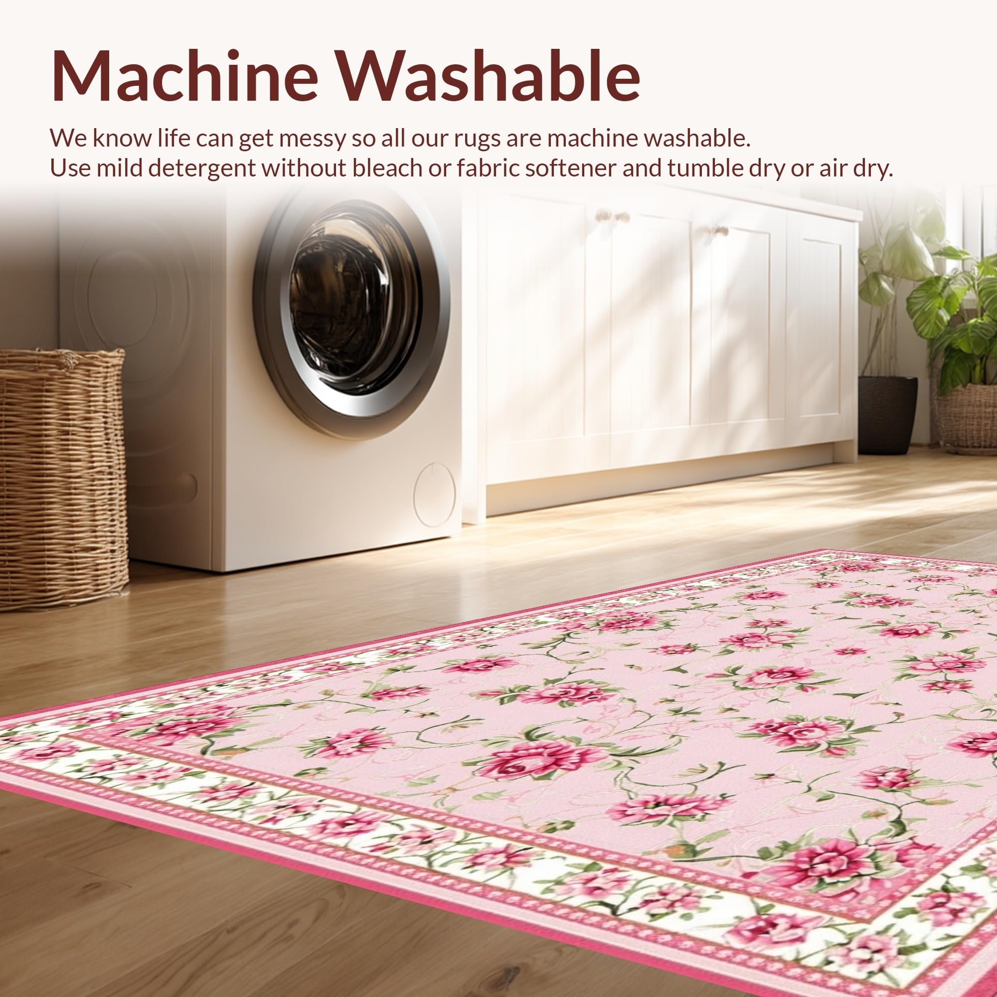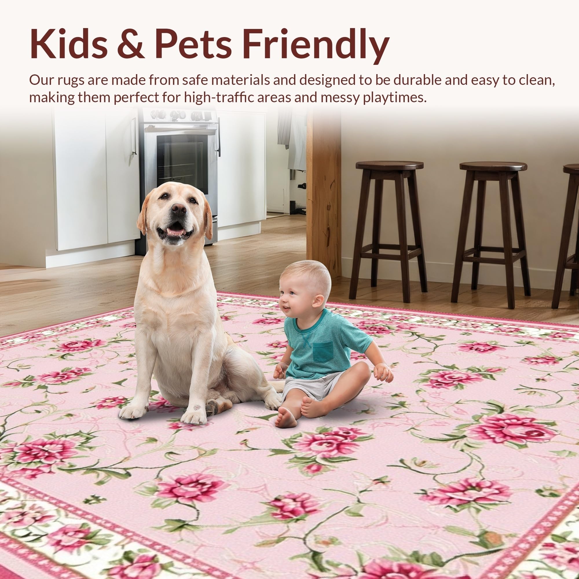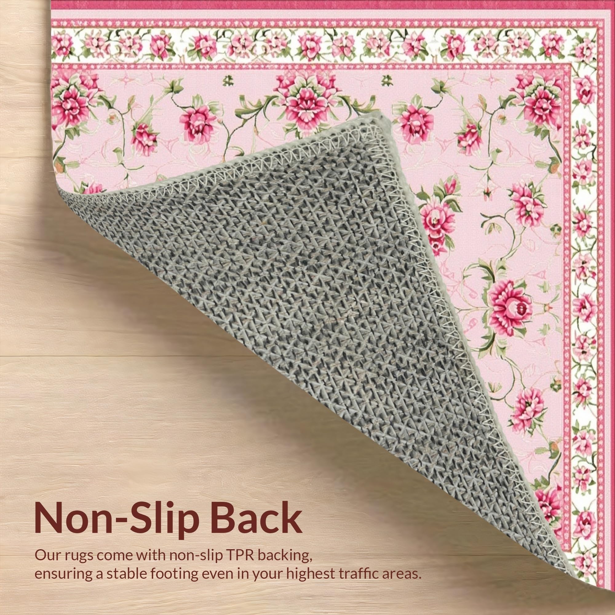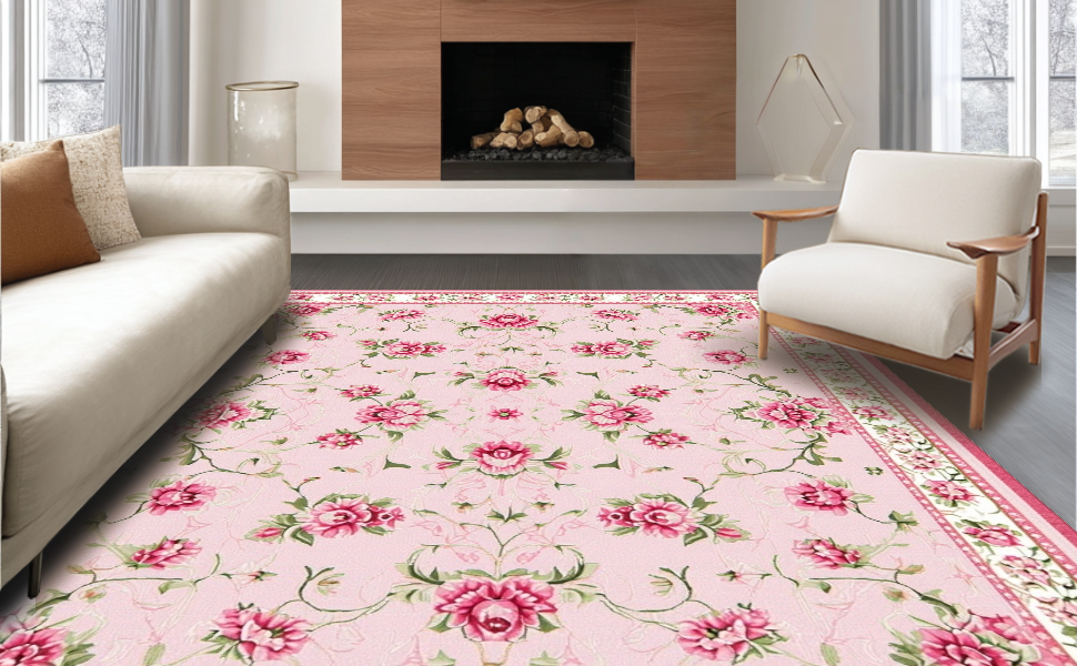 Ultra Soft Area Rug, Non Slip, Stain Resistant, Washable Area Rugs for Living Room, Bedroom, Artistic Pink Flora Composition(Pink) Overview: