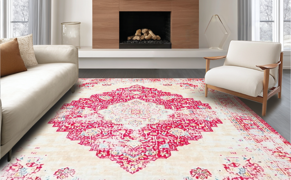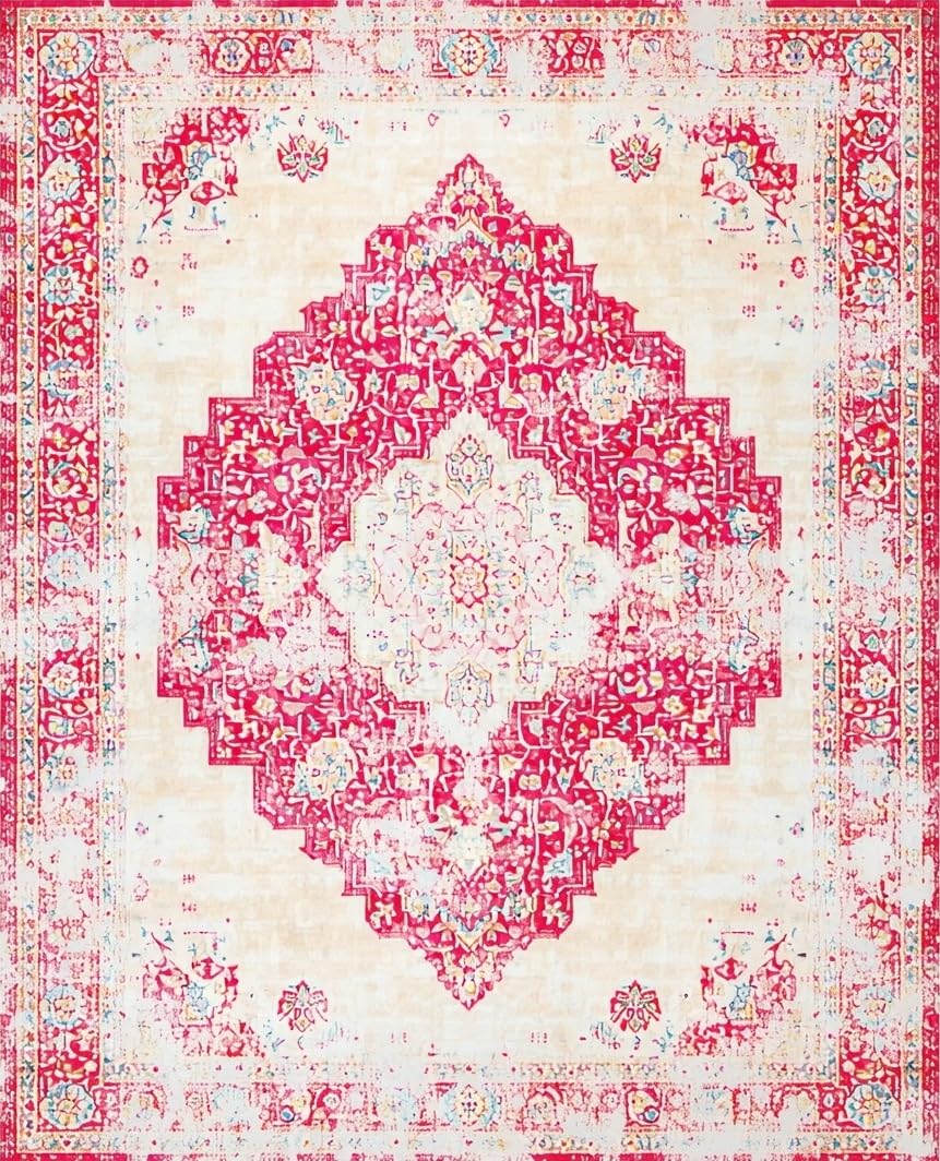 Ultra Soft Area Rug, Non Slip, Stain Resistant, Washable Area Rugs for Living Room, Bedroom, Artistic Playful Colorful Ogee Pattern(Beige) Overview: