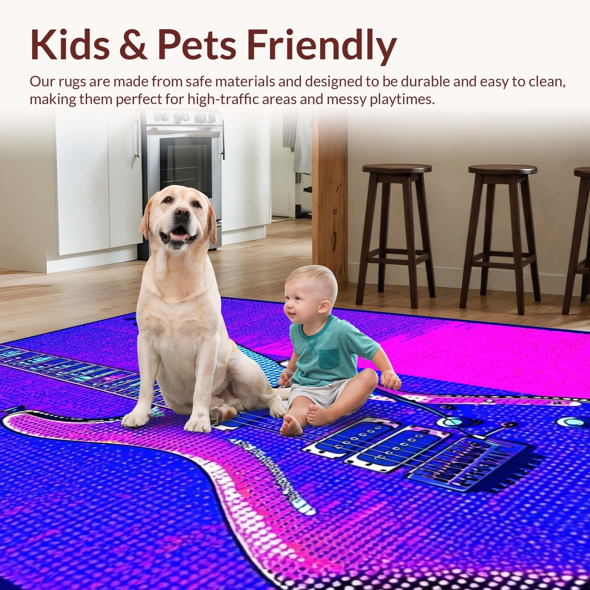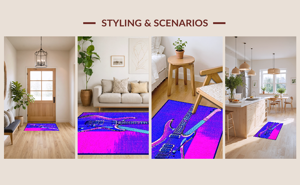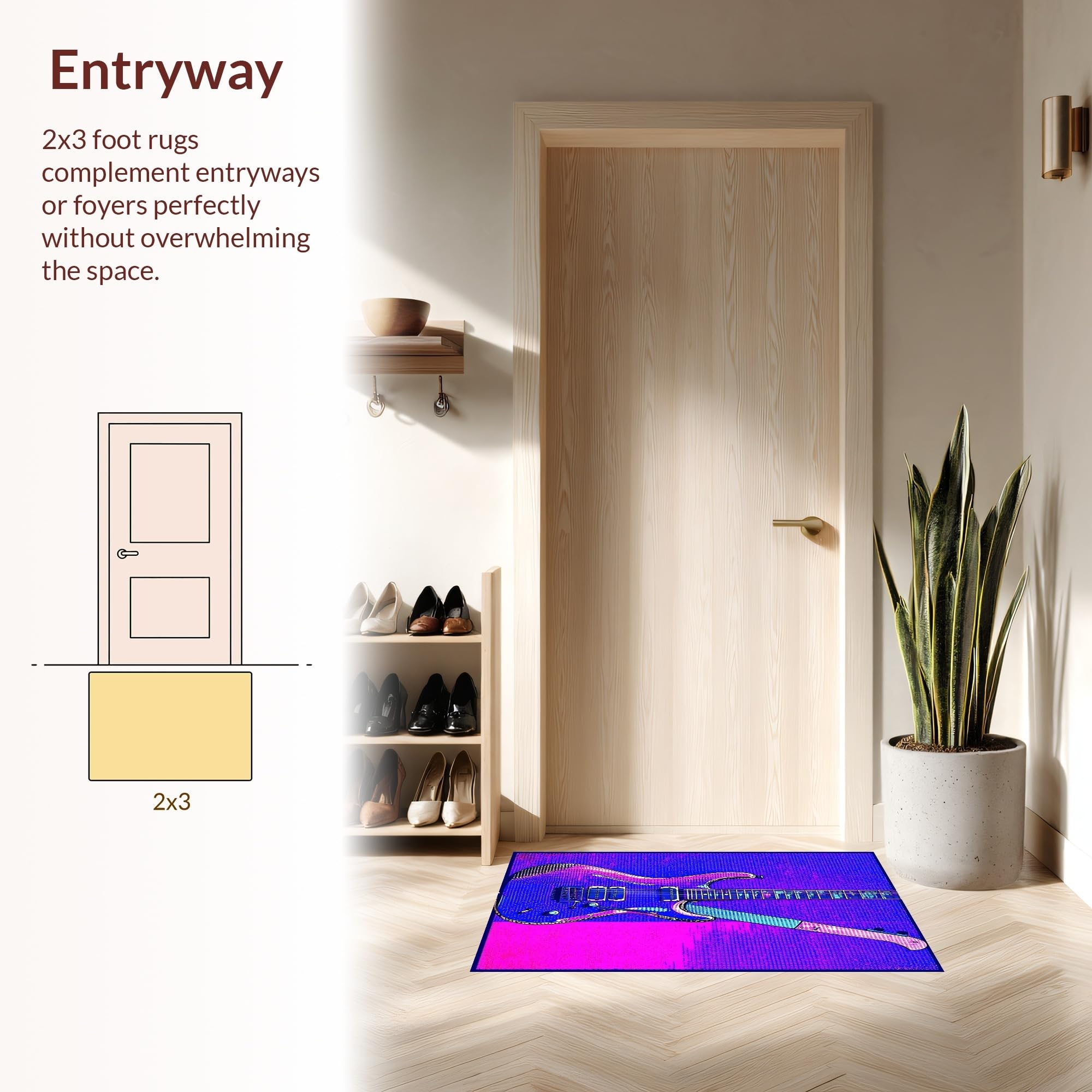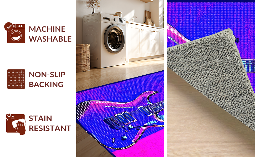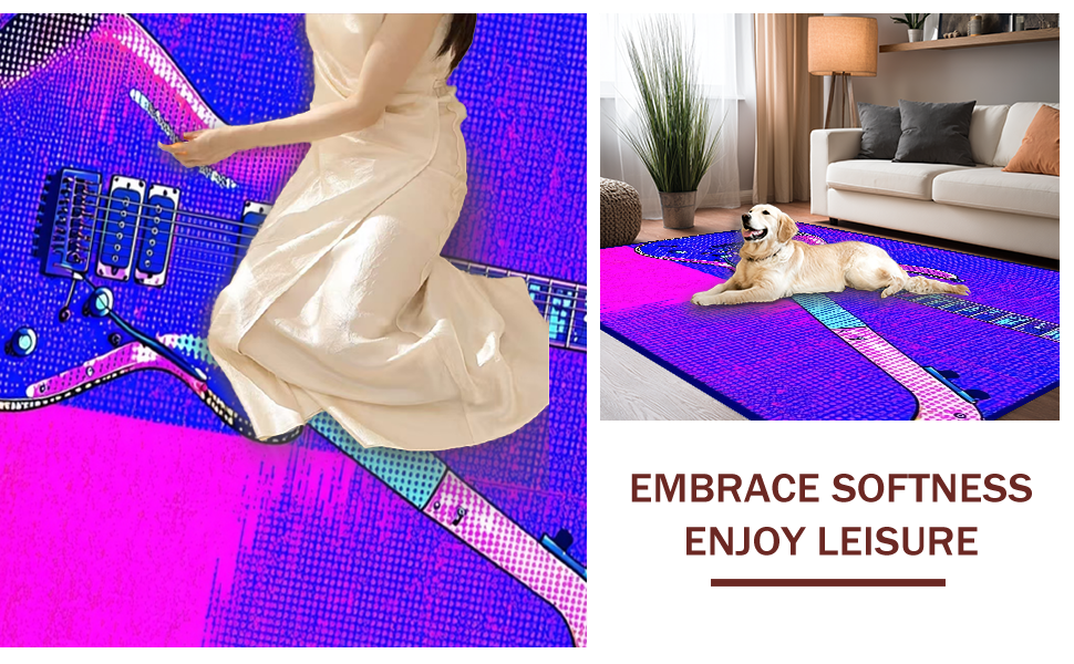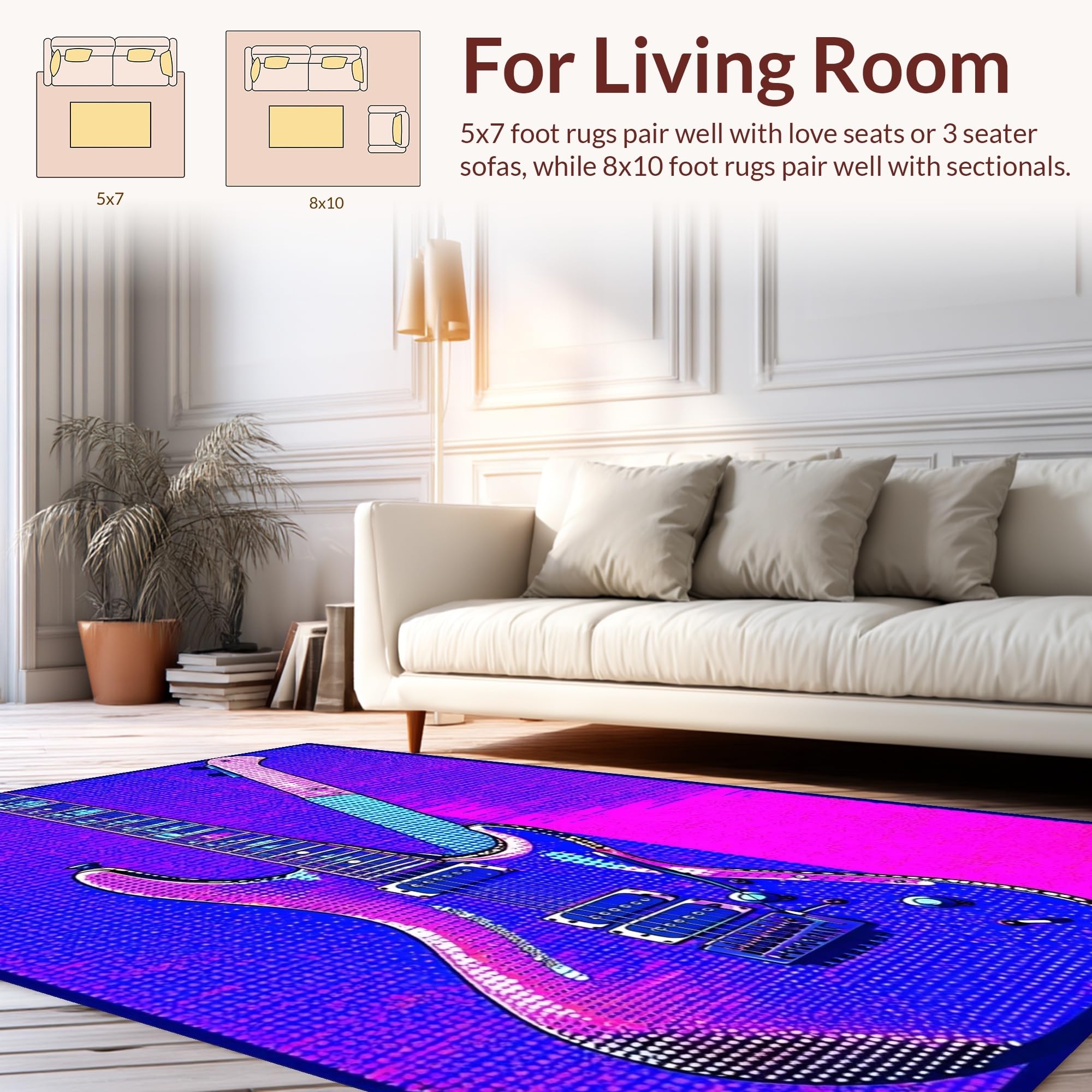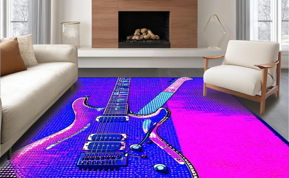 Ultra Soft Area Rug, Non Slip, Stain Resistant, Washable Area Rugs for Living Room, Bedroom, Artistic Reflective Guitar Motif(Blue) Overview: