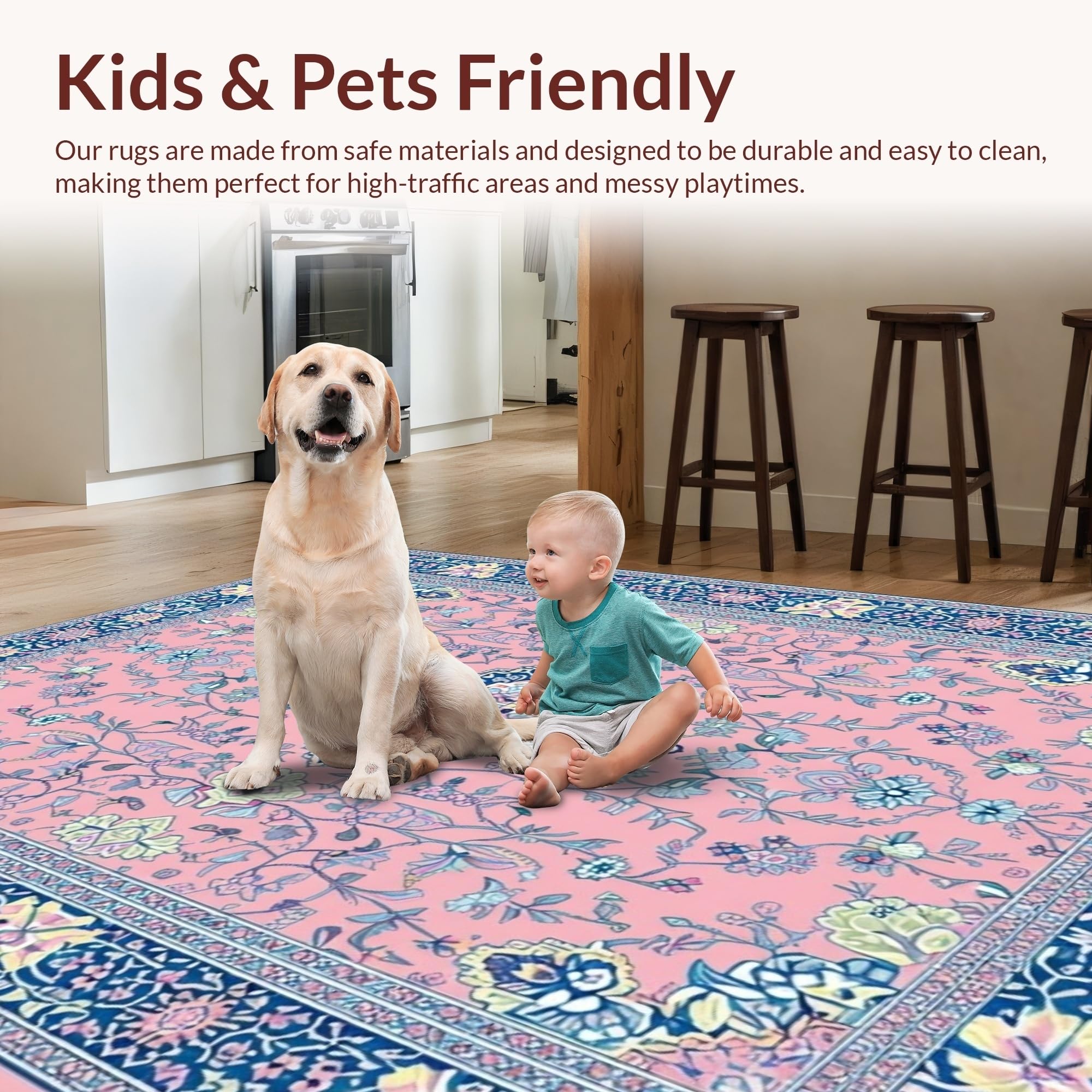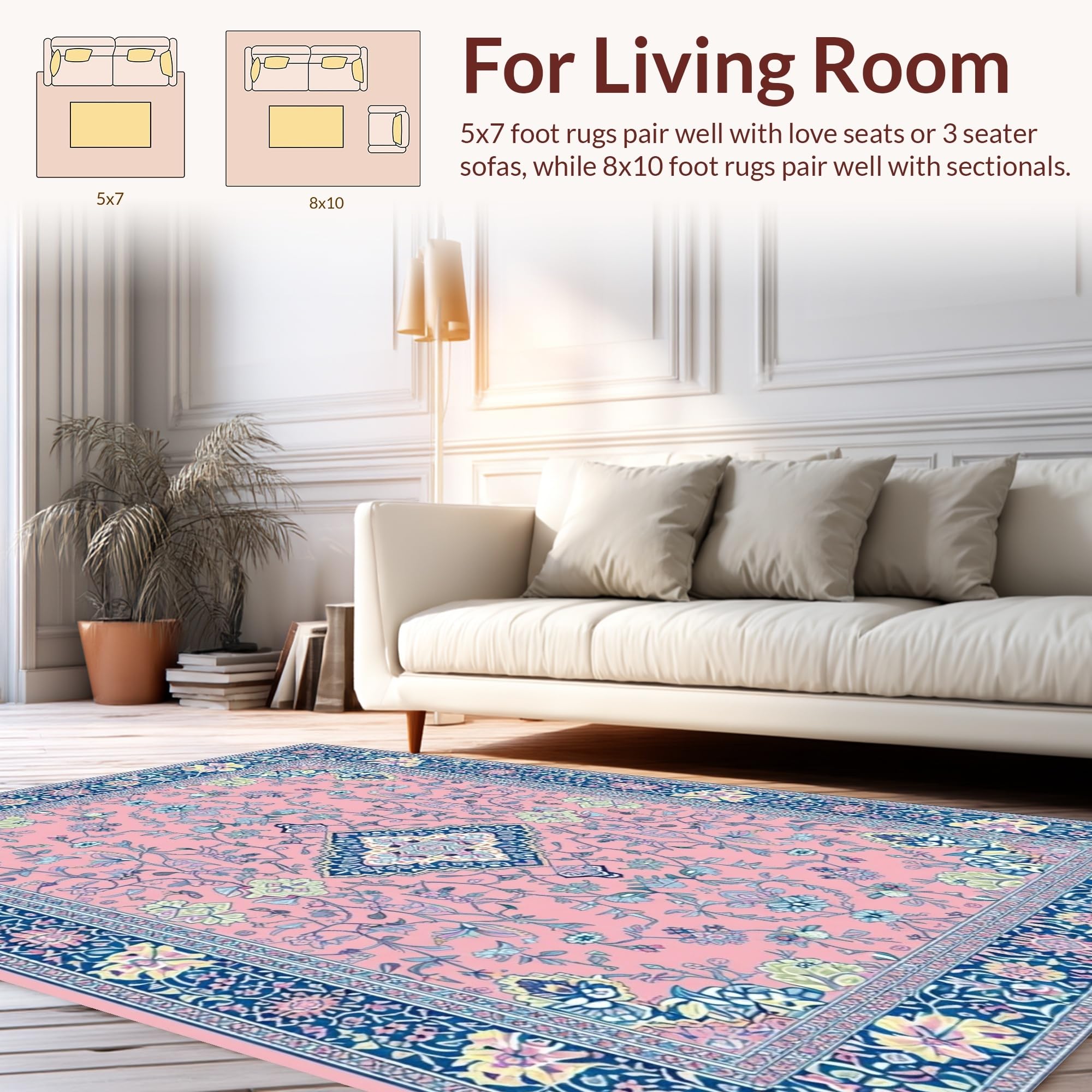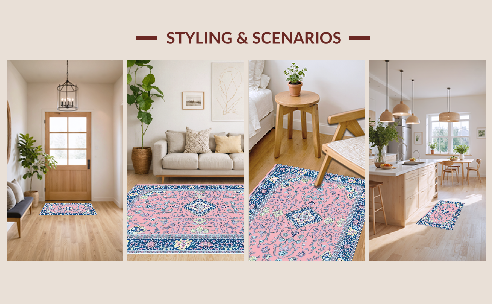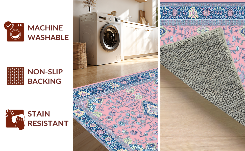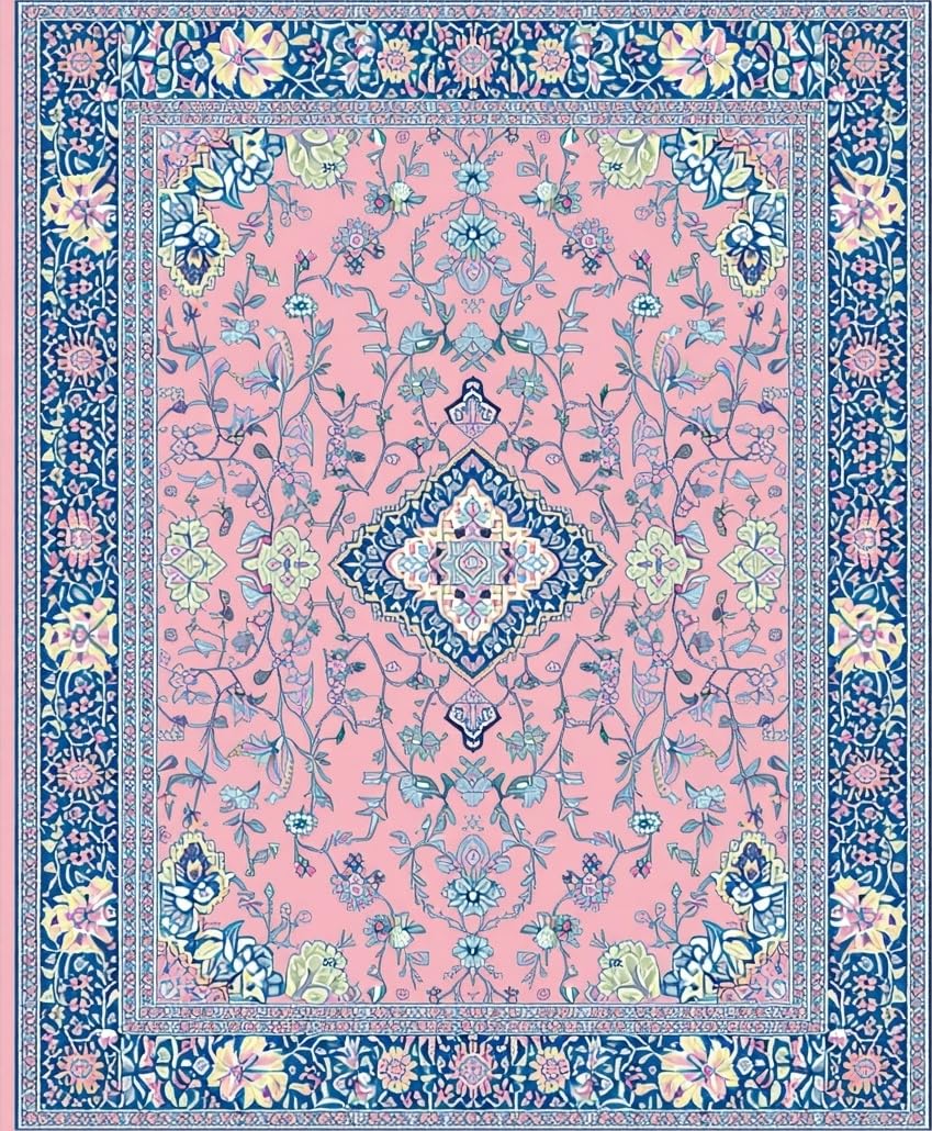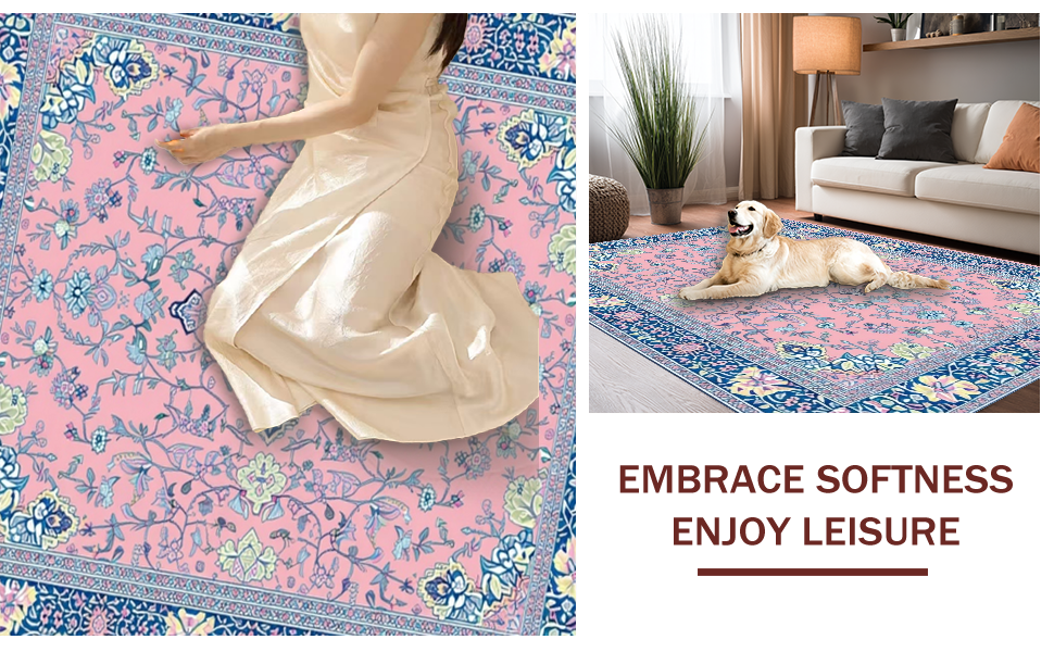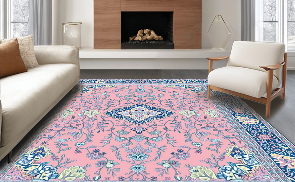Ultra Soft Area Rug, Non Slip, Stain Resistant, Washable Area Rugs for Living Room, Bedroom, Artistic Retro Floral Composition(Pink) Overview: