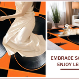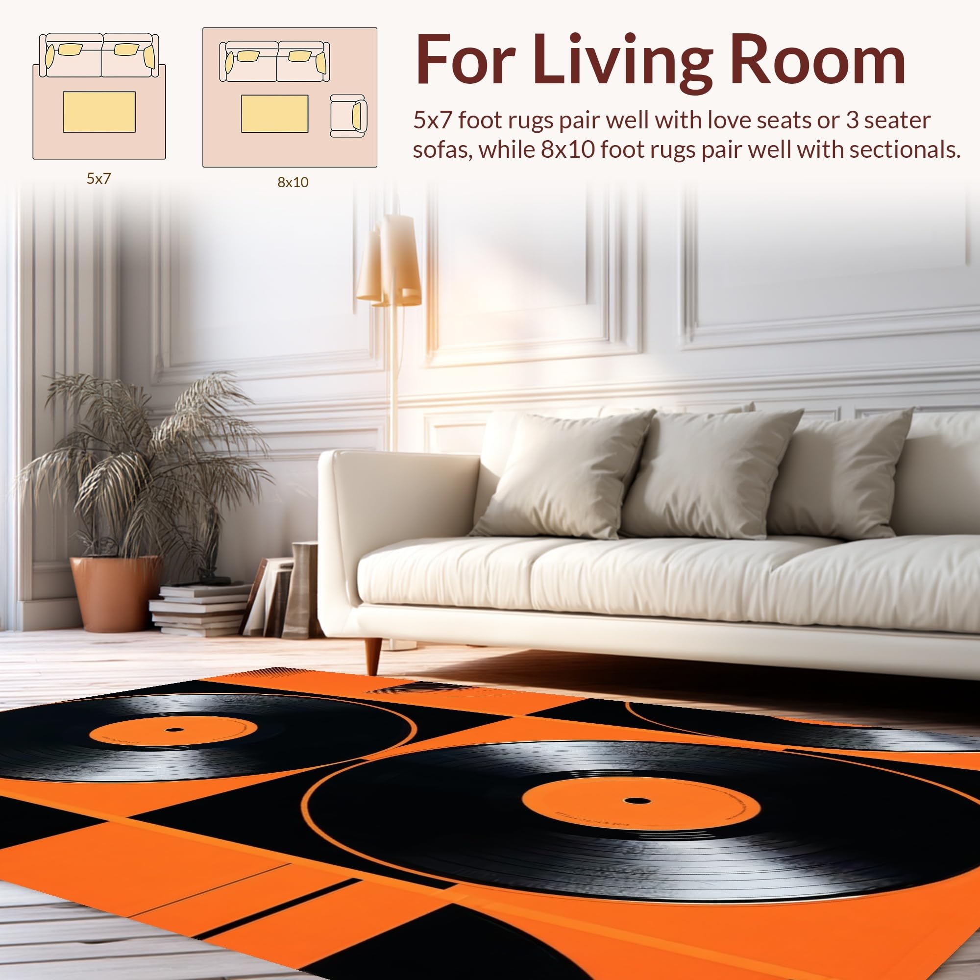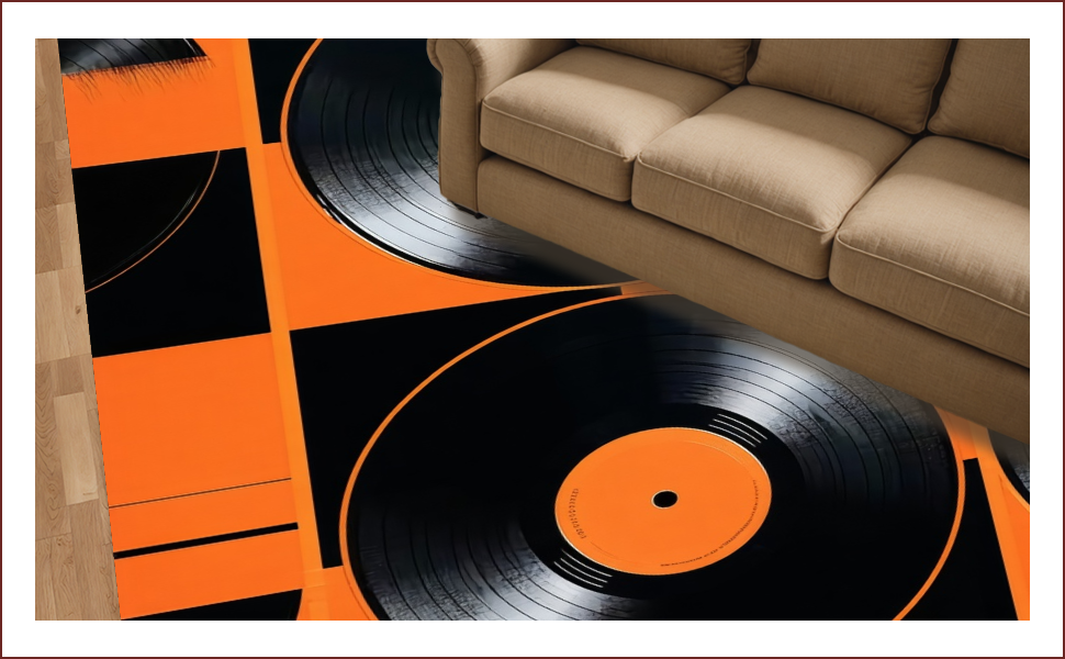 Ultra Soft Area Rug, Non Slip, Stain Resistant, Washable Area Rugs for Living Room, Bedroom, Artistic Semi-Circle Record Design(Black) Overview: