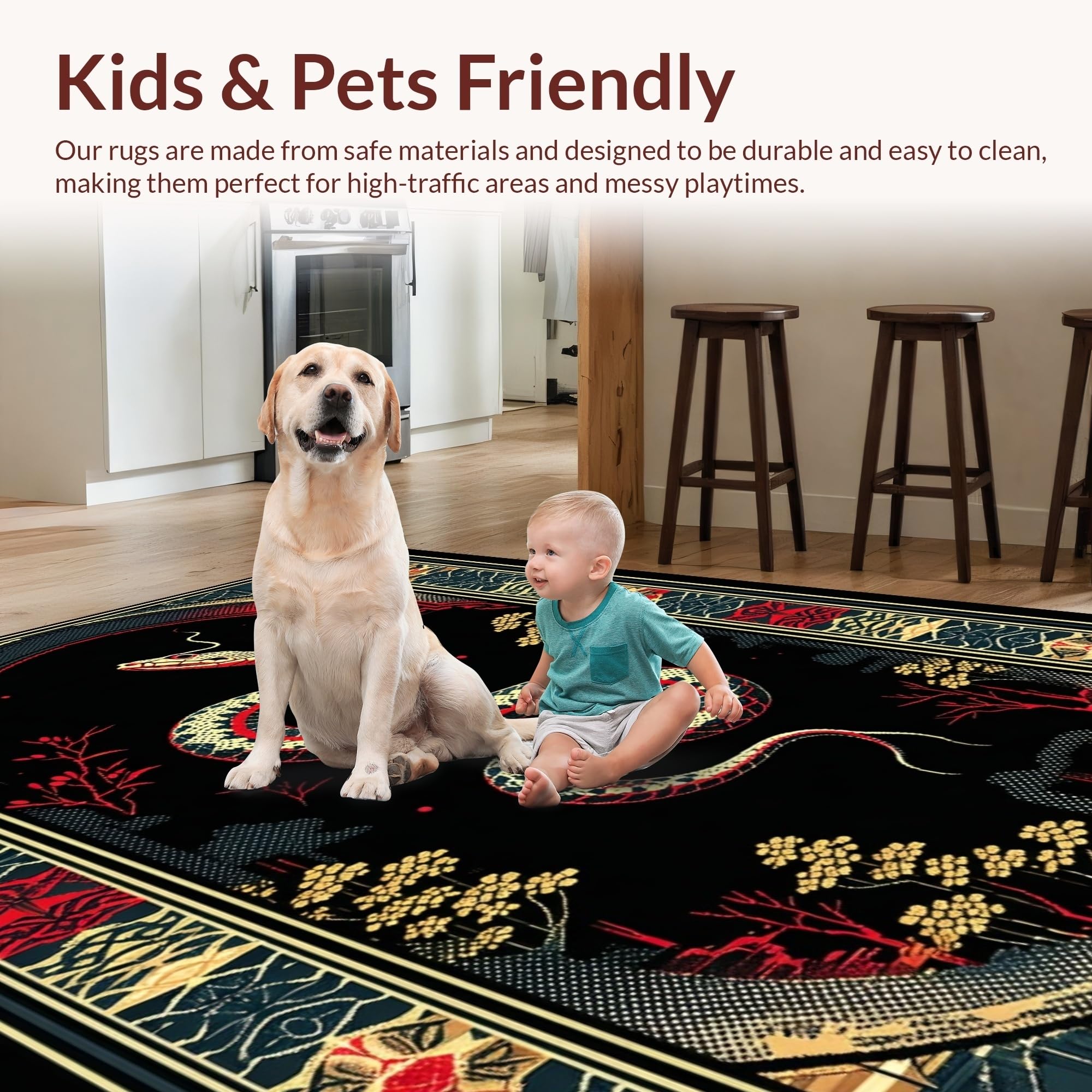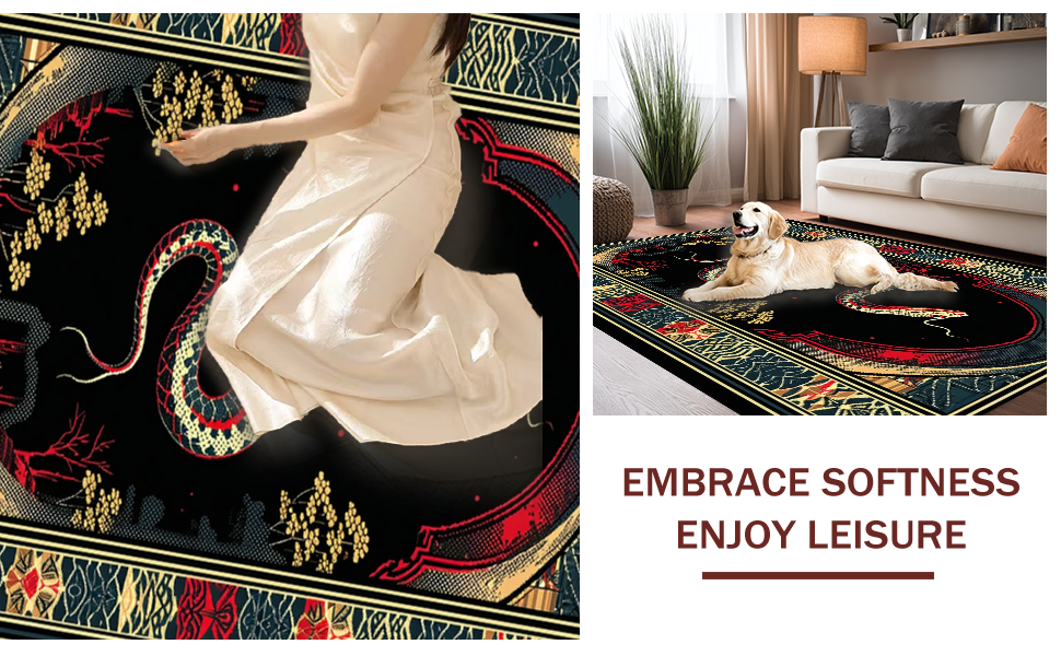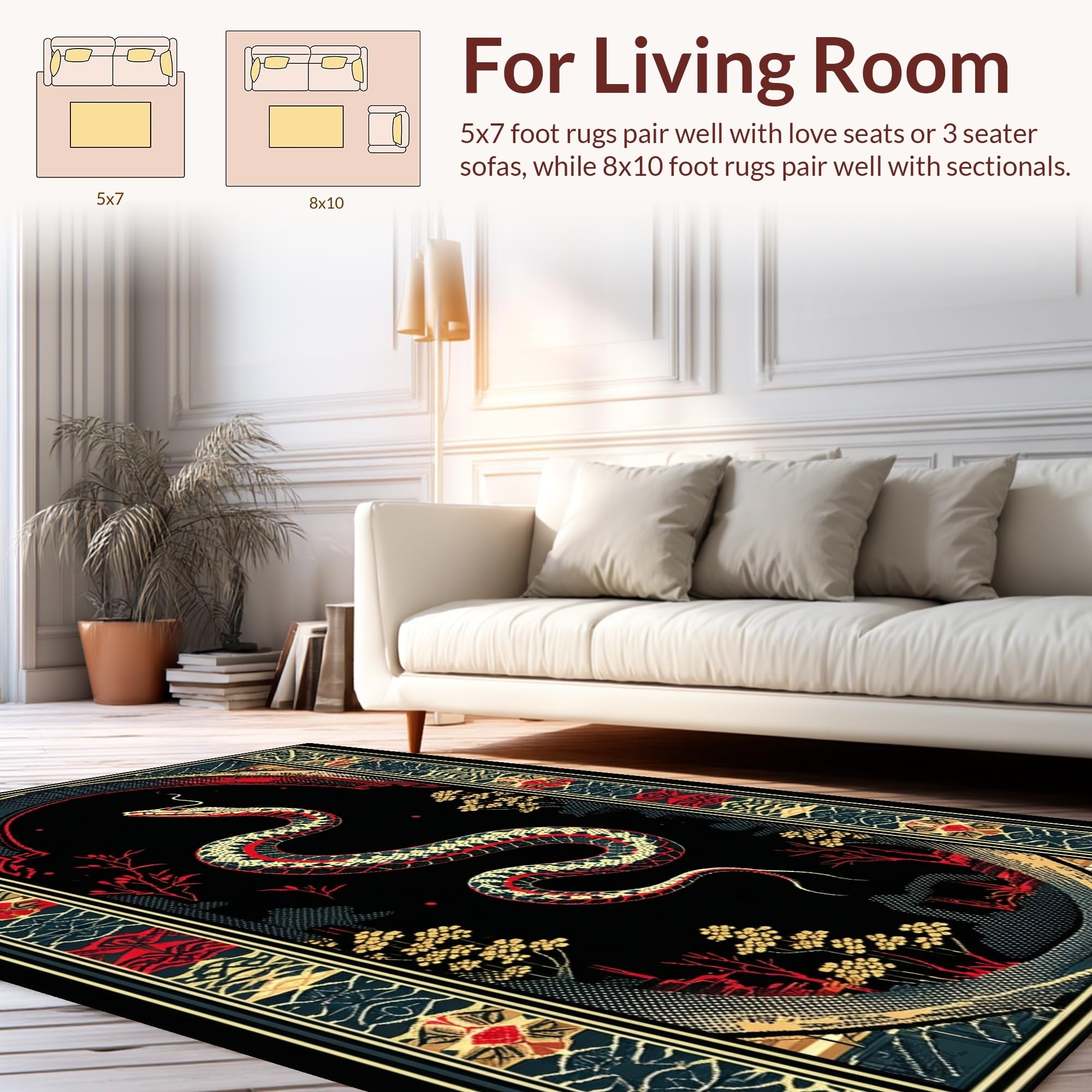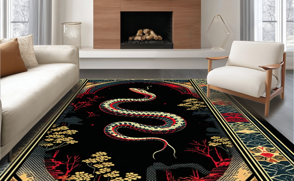 Ultra Soft Area Rug, Non Slip, Stain Resistant, Washable Area Rugs for Living Room, Bedroom, Artistic Serpent-Inspired Design(Black) Overview: