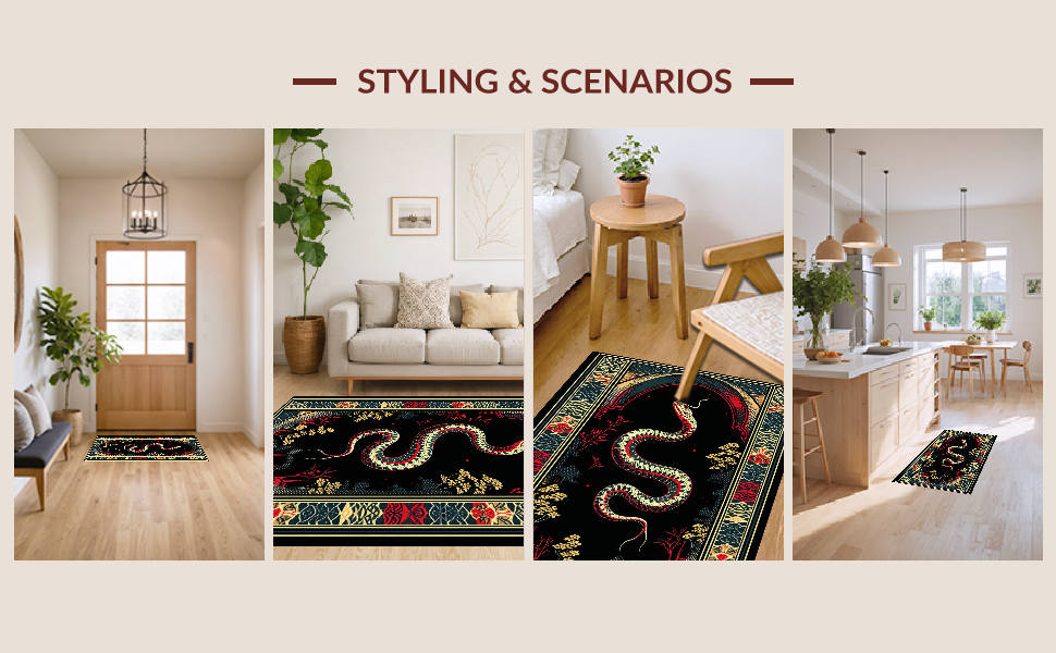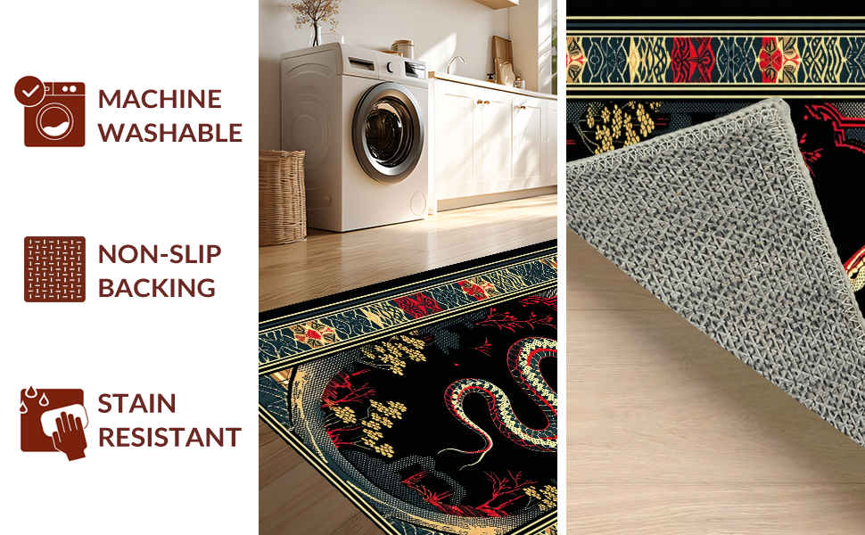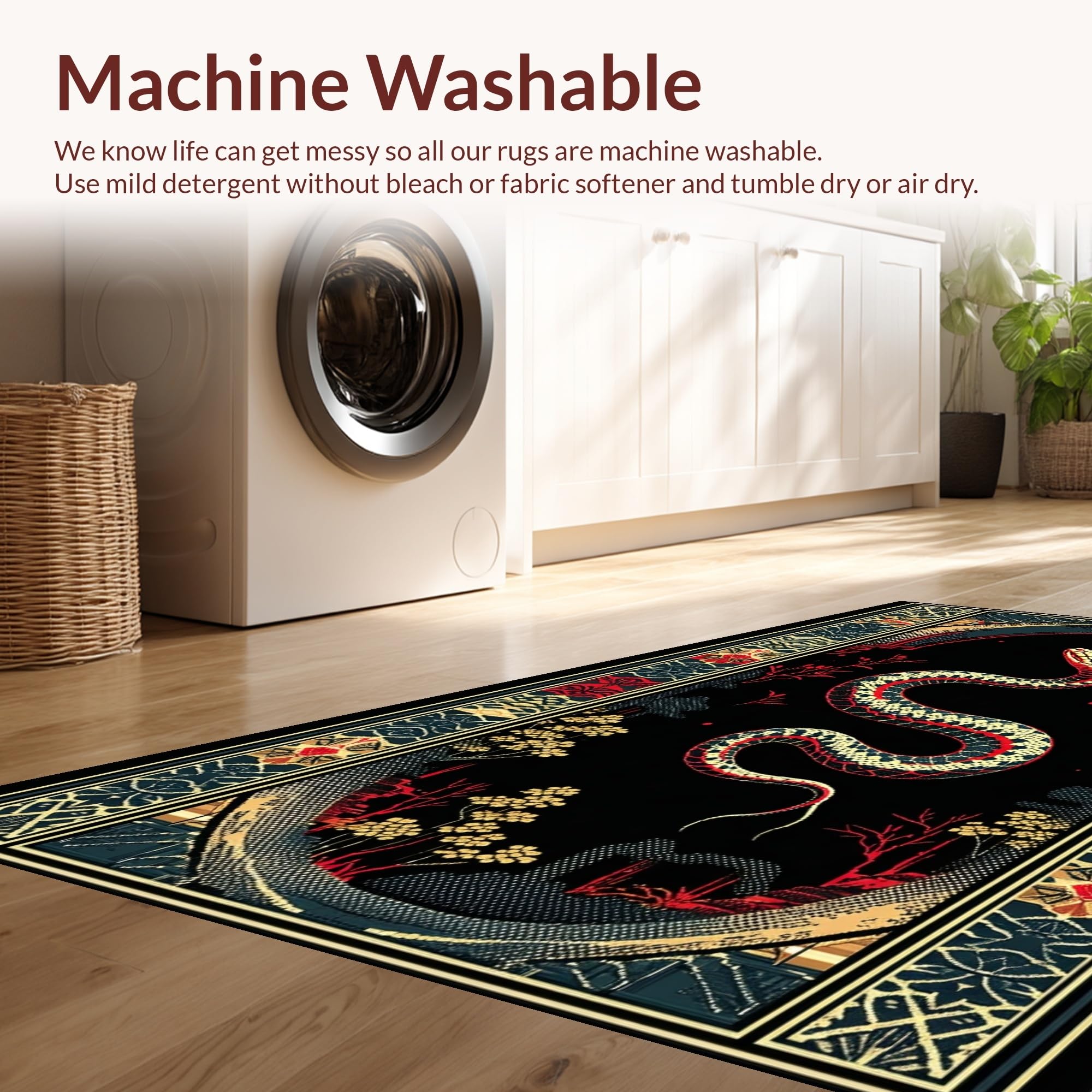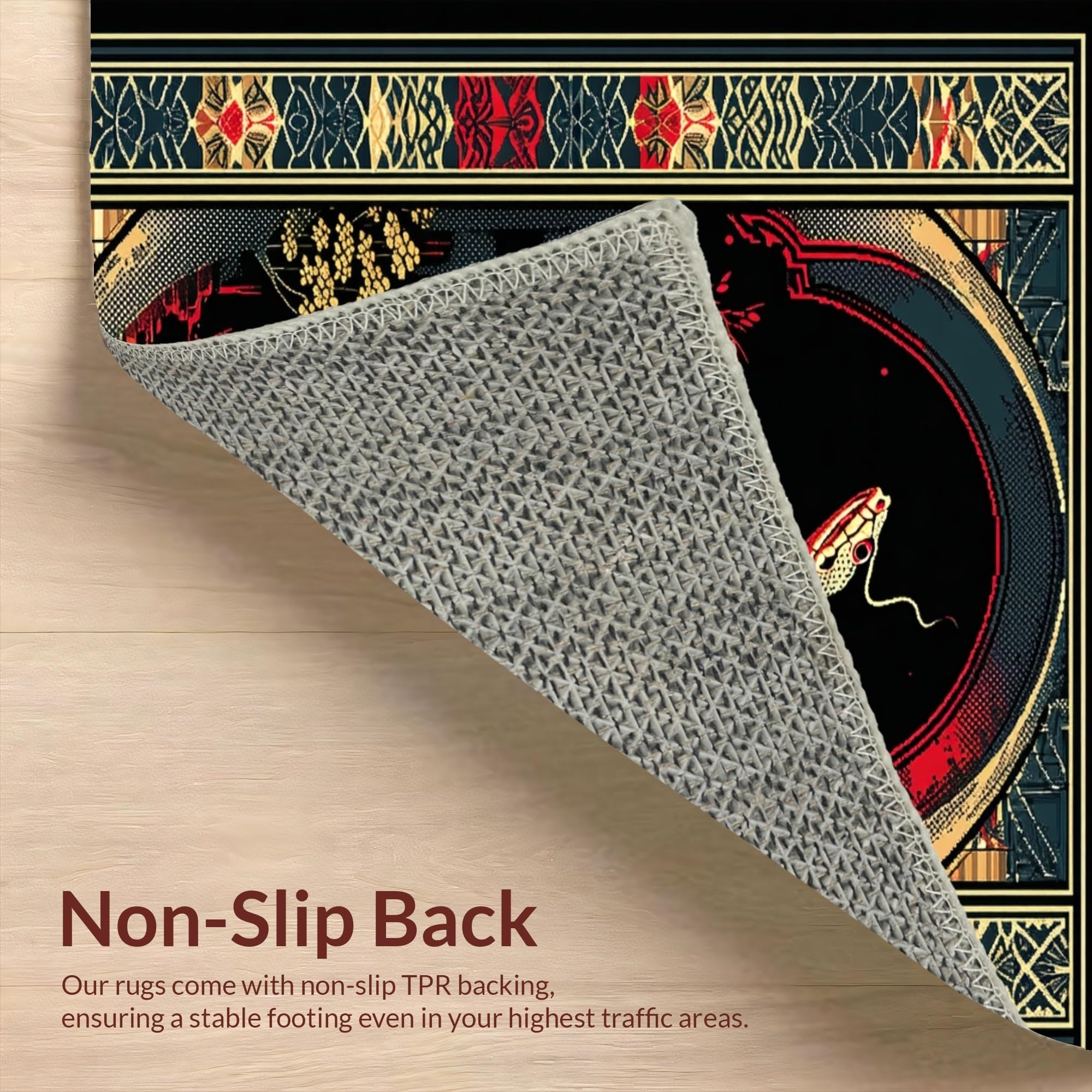 Ultra Soft Area Rug, Non Slip, Stain Resistant, Washable Area Rugs for Living Room, Bedroom, Artistic Serpent-Inspired Design(Black) Overview: