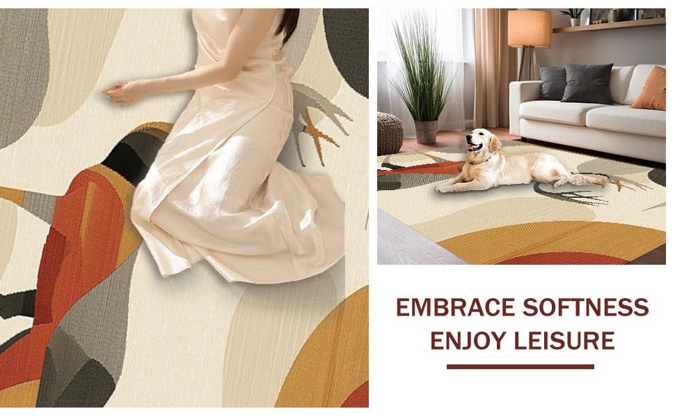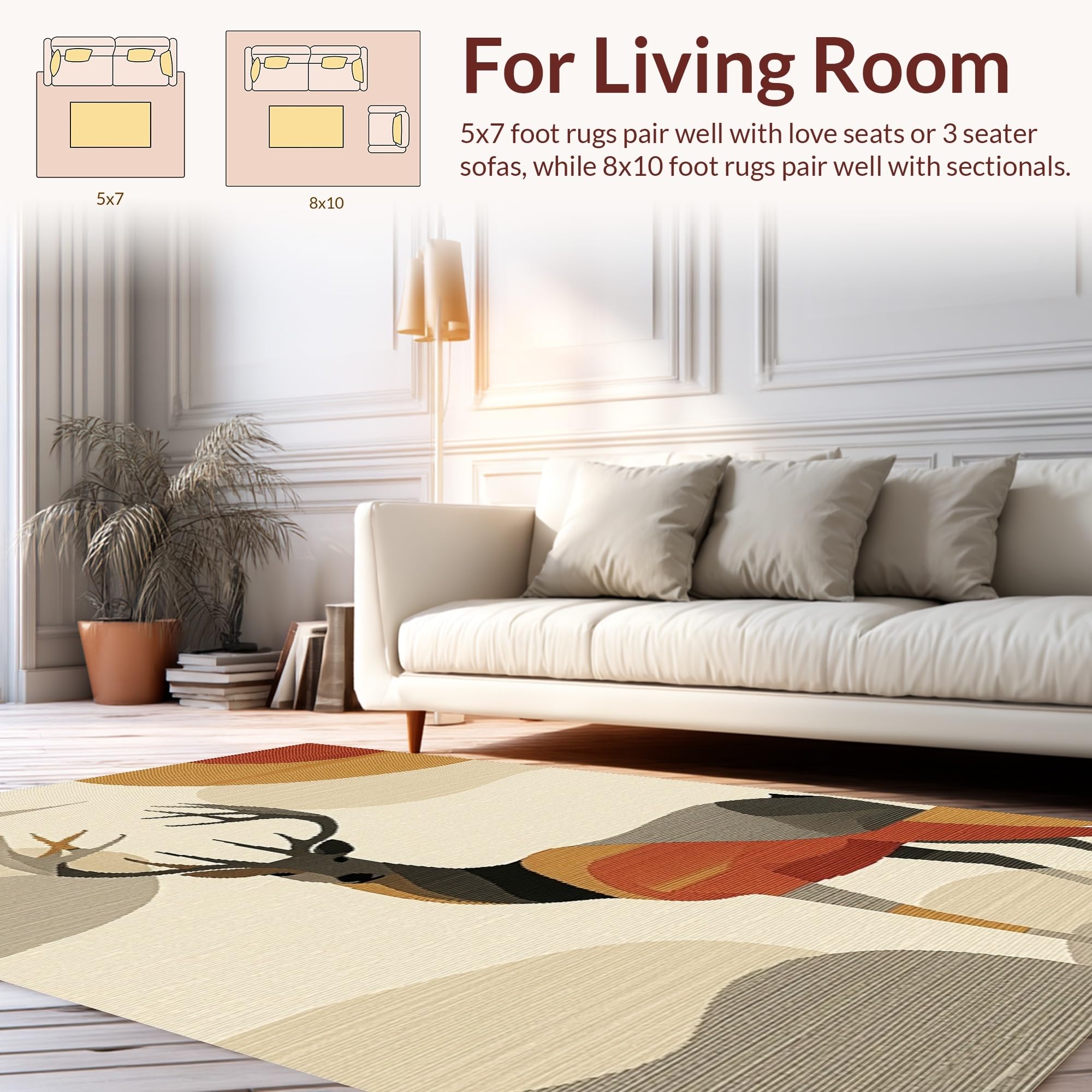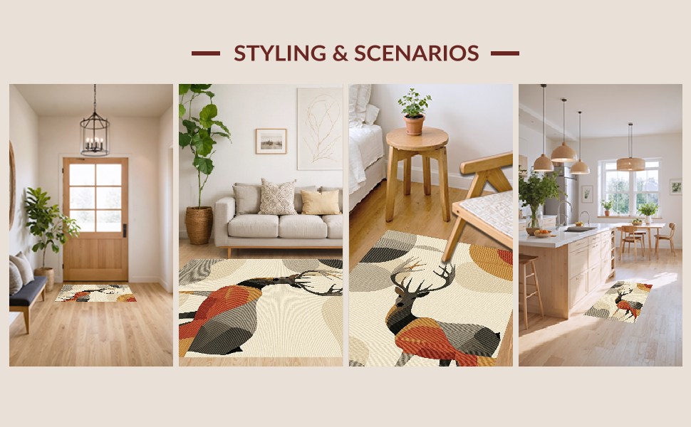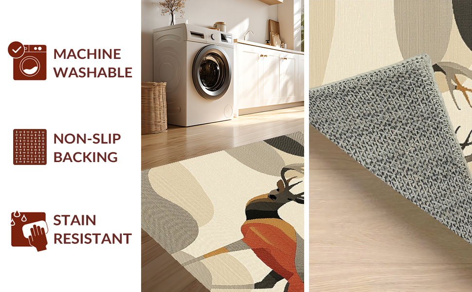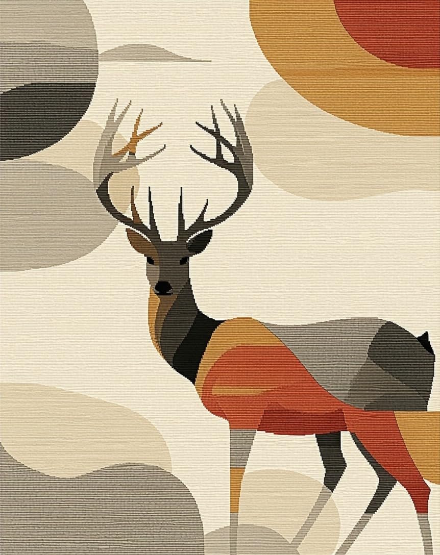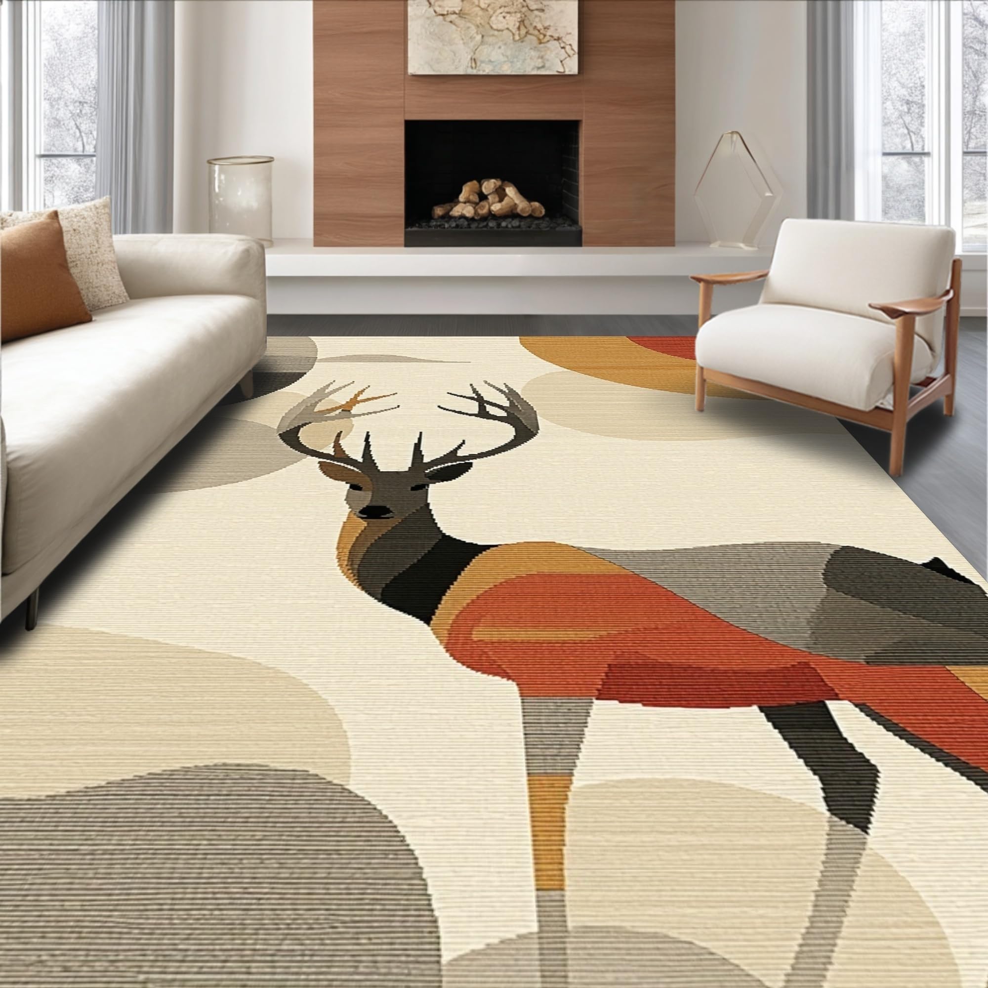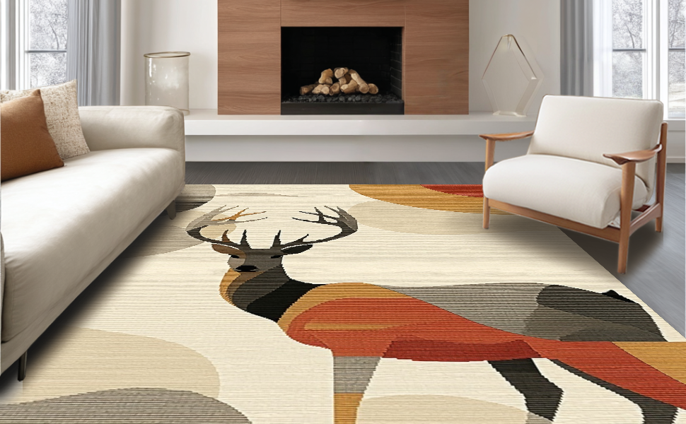 Ultra Soft Area Rug, Non Slip, Stain Resistant, Washable Area Rugs for Living Room, Bedroom, Artistic Sika Deer Textural Element(Beige) Overview: