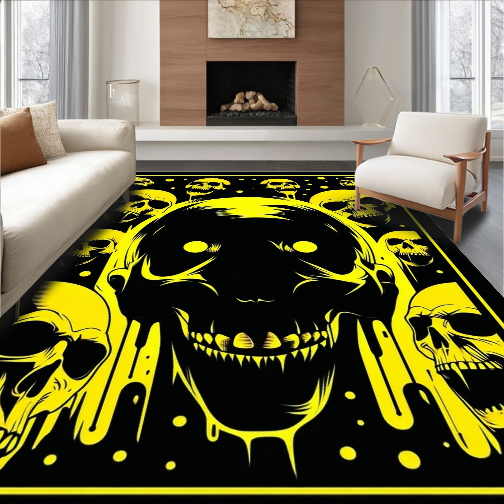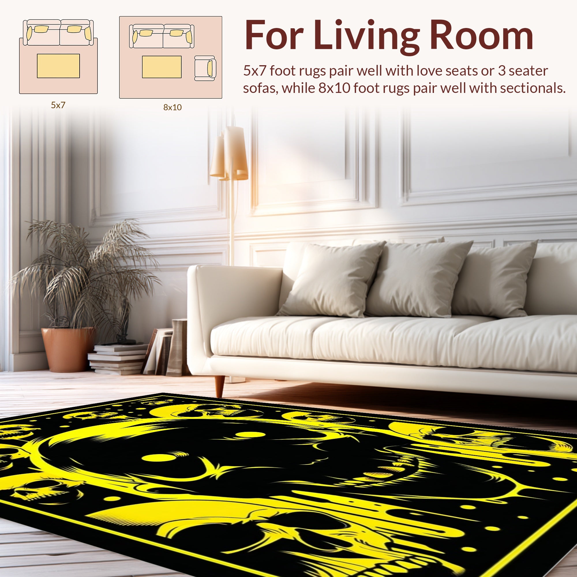 Flatwoven High Traffic Area Rug, Artistic Skull Head Illustration Style, Non Slip, Stain Resistant, Washable Area Rugs for Living Room, Bedroom (Black) Overview: