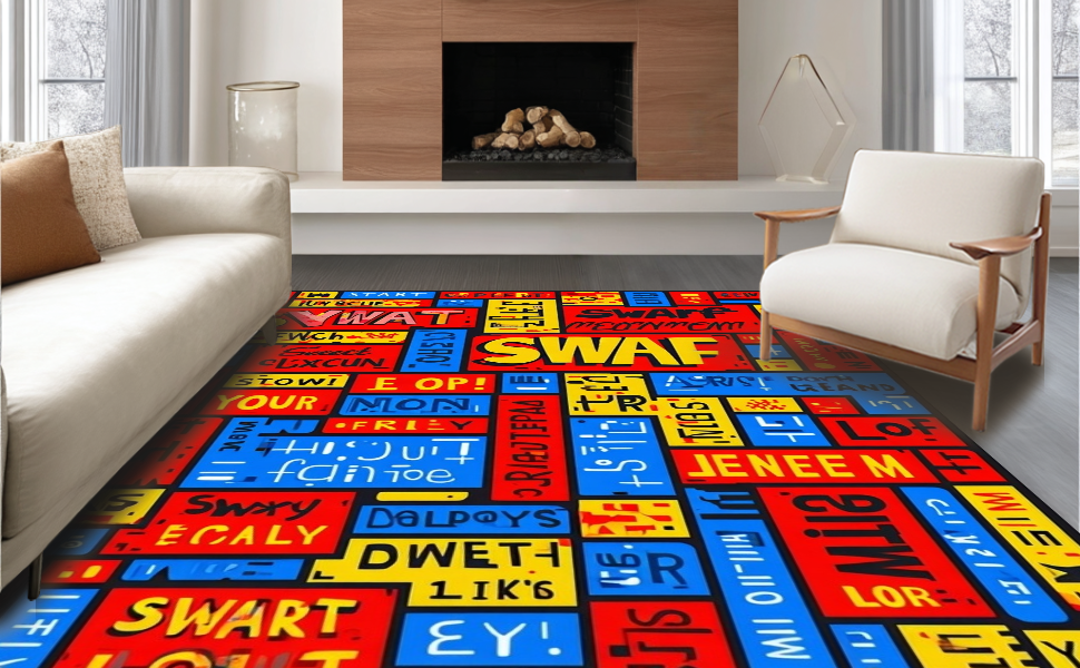 Ultra Soft Area Rug, Non Slip, Stain Resistant, Washable Area Rugs for Living Room, Bedroom, Artistic Striking Color Blend Pattern(Black) Overview: