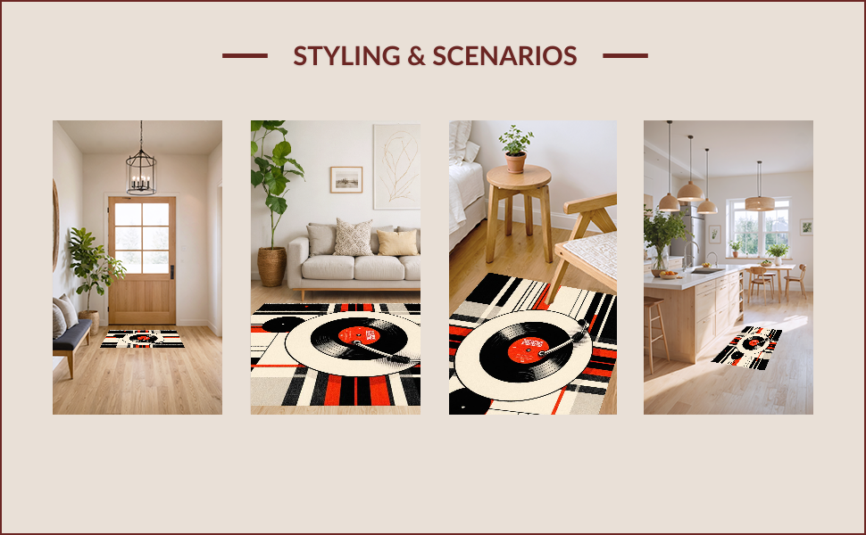 Ultra Soft Area Rug, Non Slip, Stain Resistant, Washable Area Rugs for Living Room, Bedroom, Artistic Striped Vintage Motif(Red) Overview: