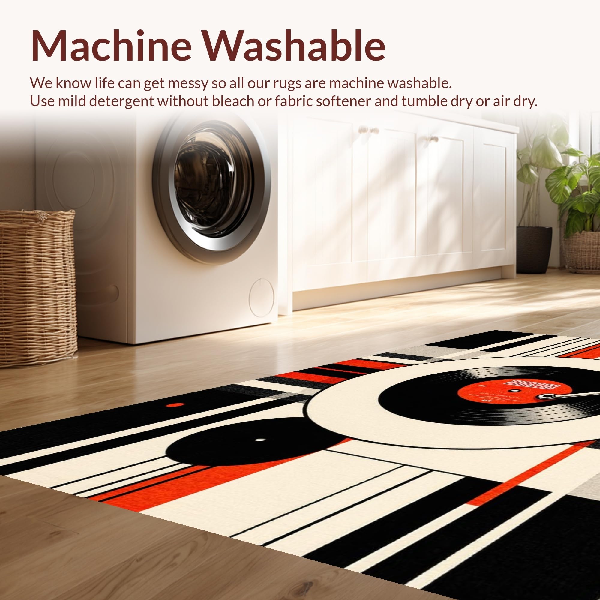 - Machine Washable: Our rugs can be easily thrown in the wash machine.