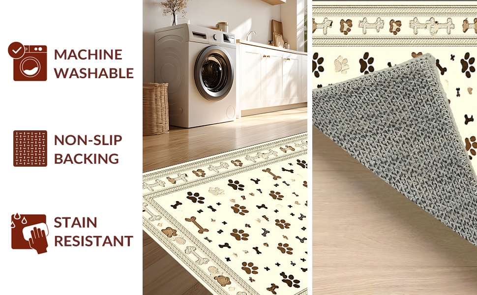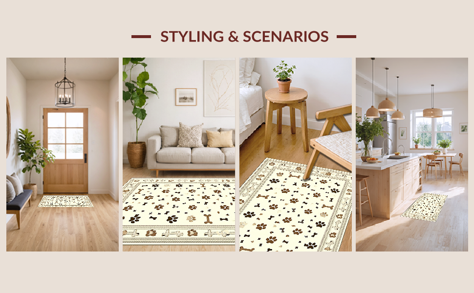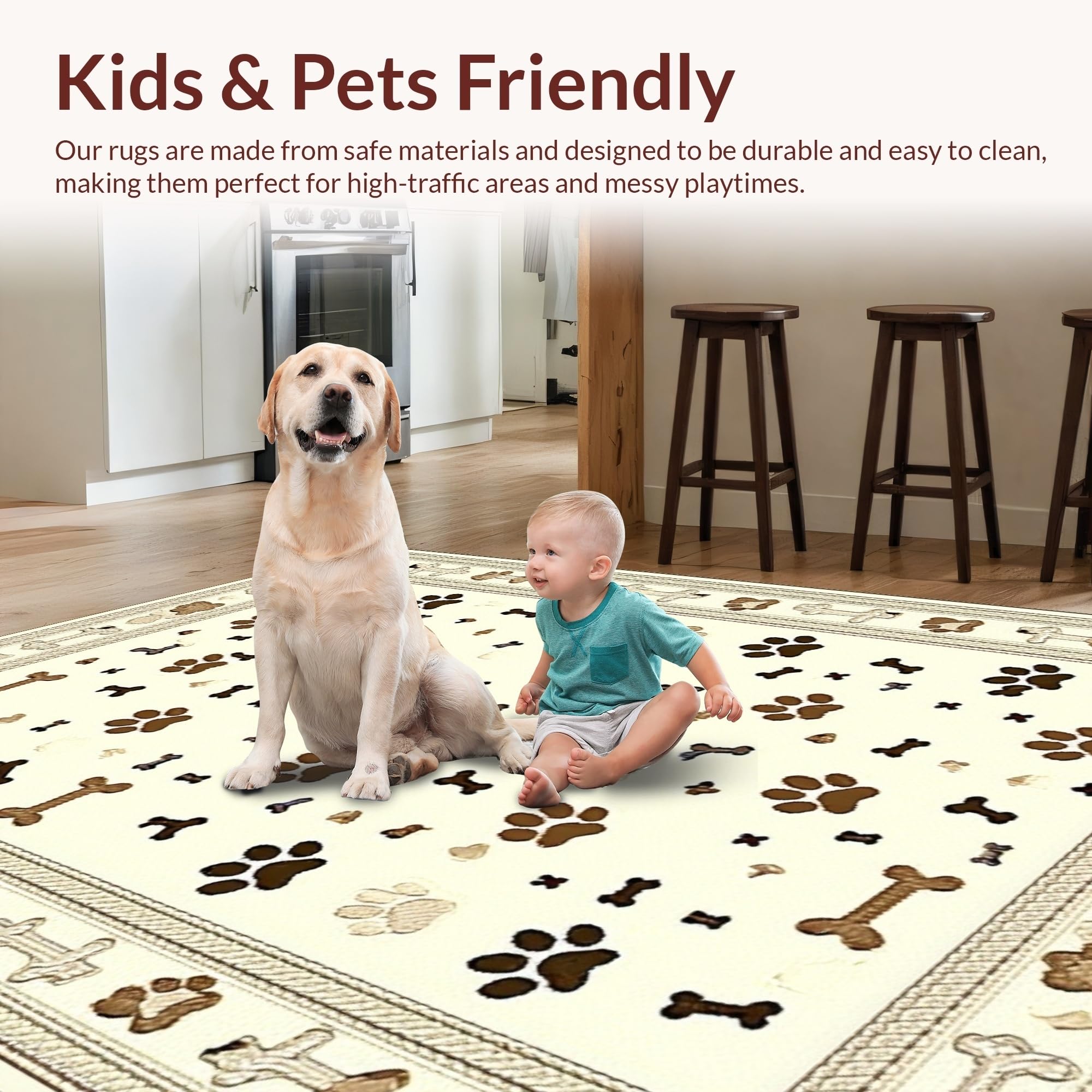 Ultra Soft Area Rug, Non Slip, Stain Resistant, Washable Area Rugs for Living Room, Bedroom, Artistic Subtle Paw Print Elegance(Beige) Overview: