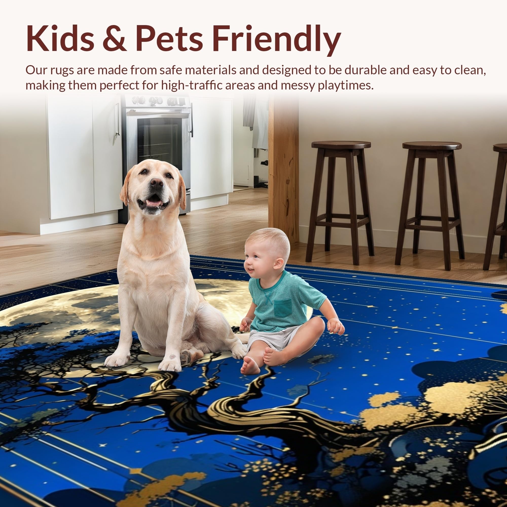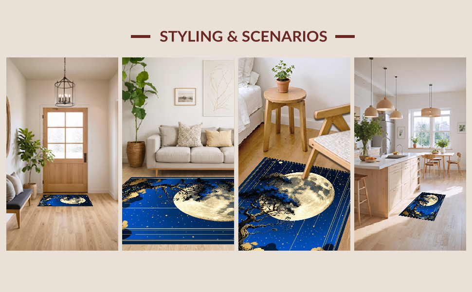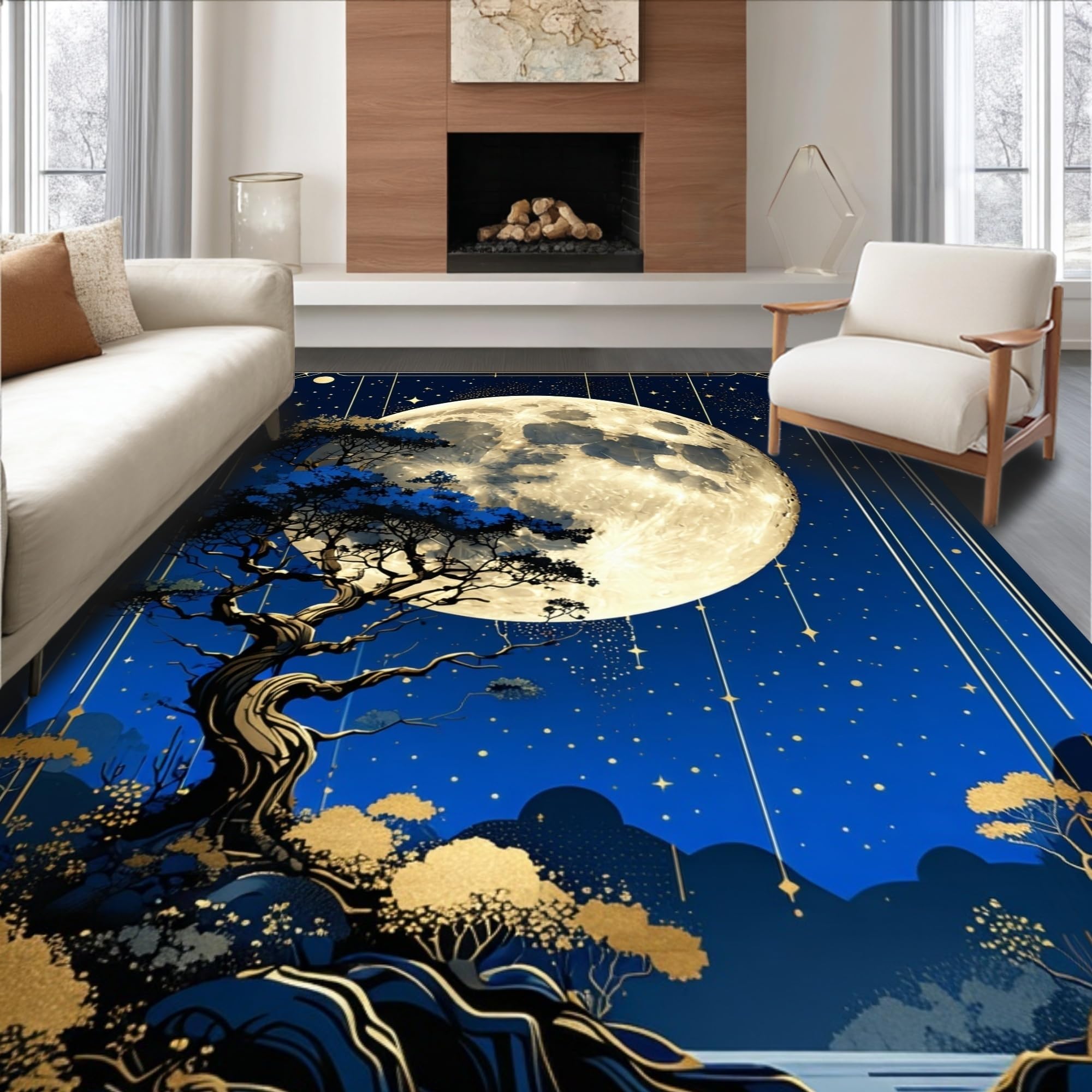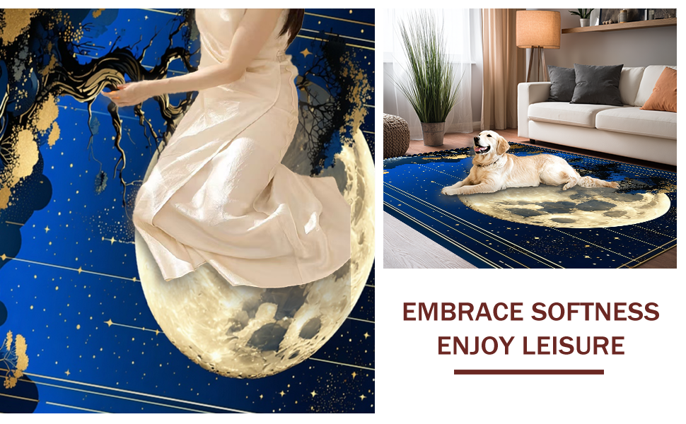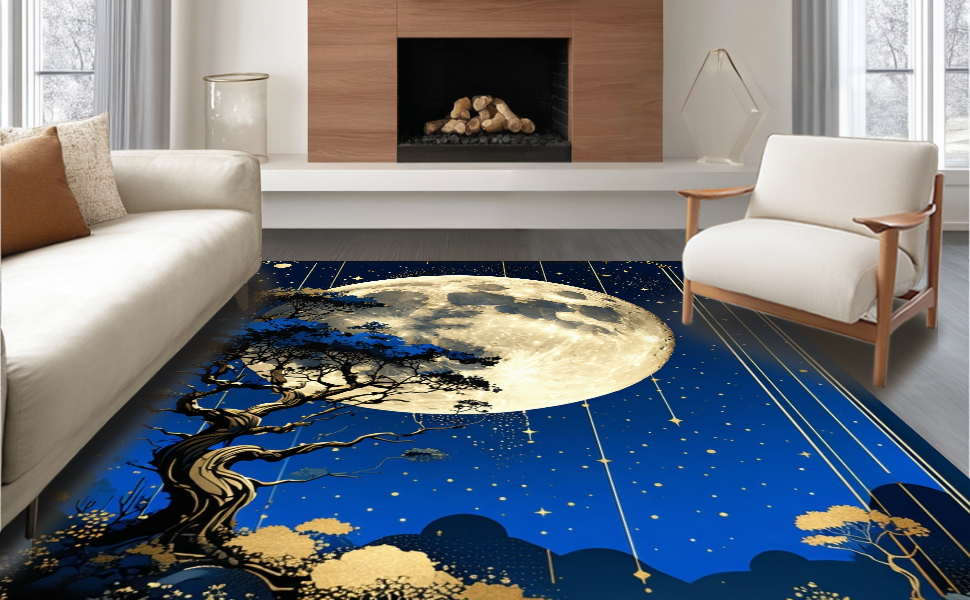 Ultra Soft Area Rug, Non Slip, Stain Resistant, Washable Area Rugs for Living Room, Bedroom, Artistic Sun and Moon Fusion(Blue) Overview: