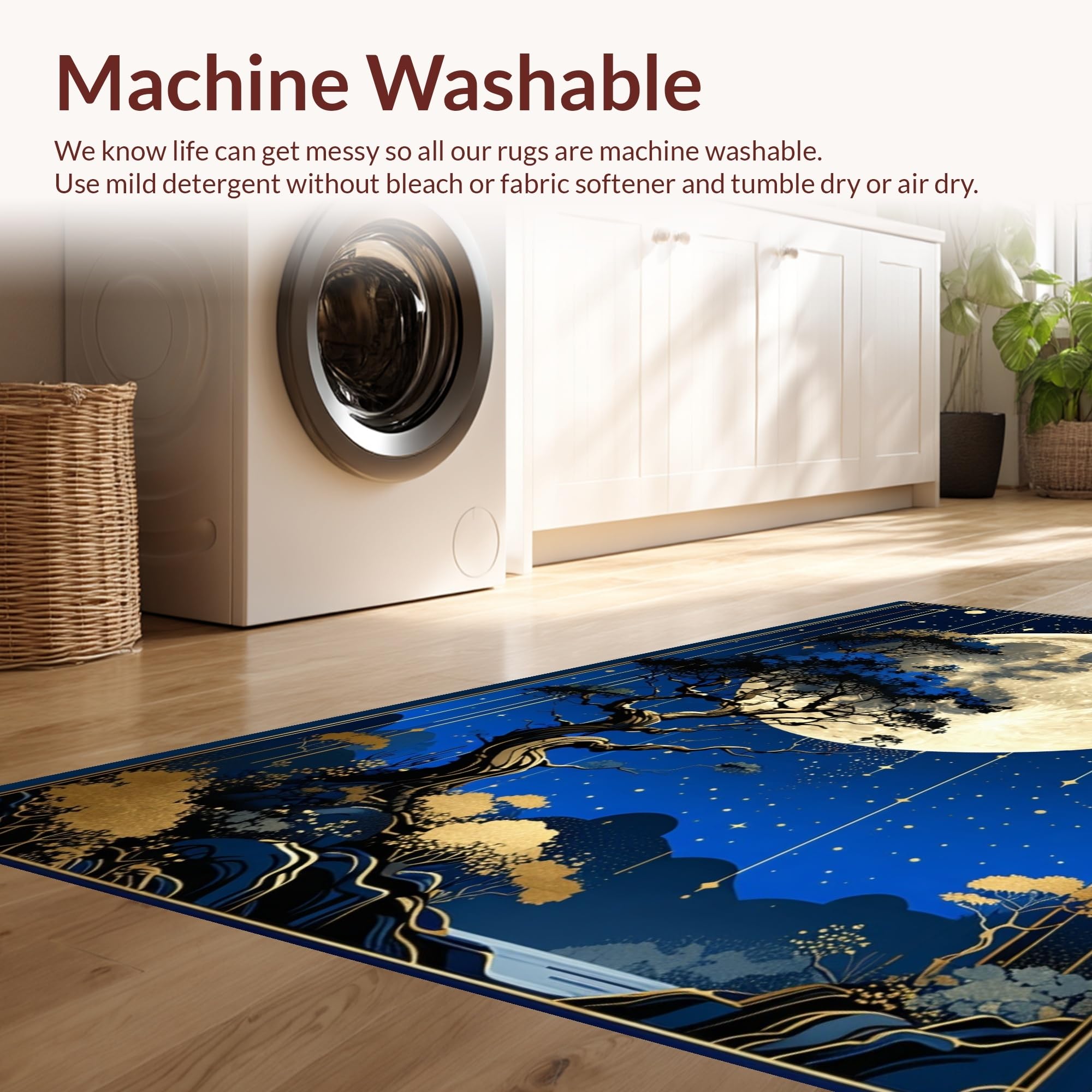 - Machine Washable: Our rugs can be easily thrown in the wash machine.