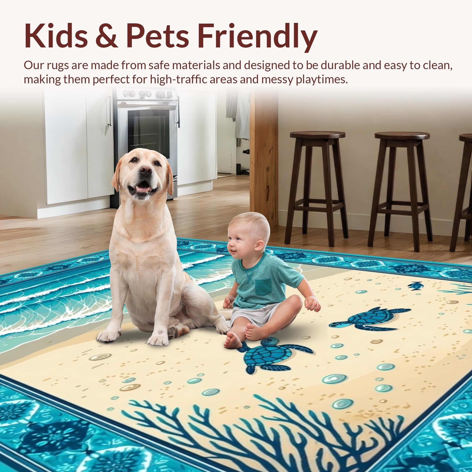 Ultra Soft Area Rug, Non Slip, Stain Resistant, Washable Area Rugs for Living Room, Bedroom, Artistic Underwater Scene Decor(Blue) Overview: