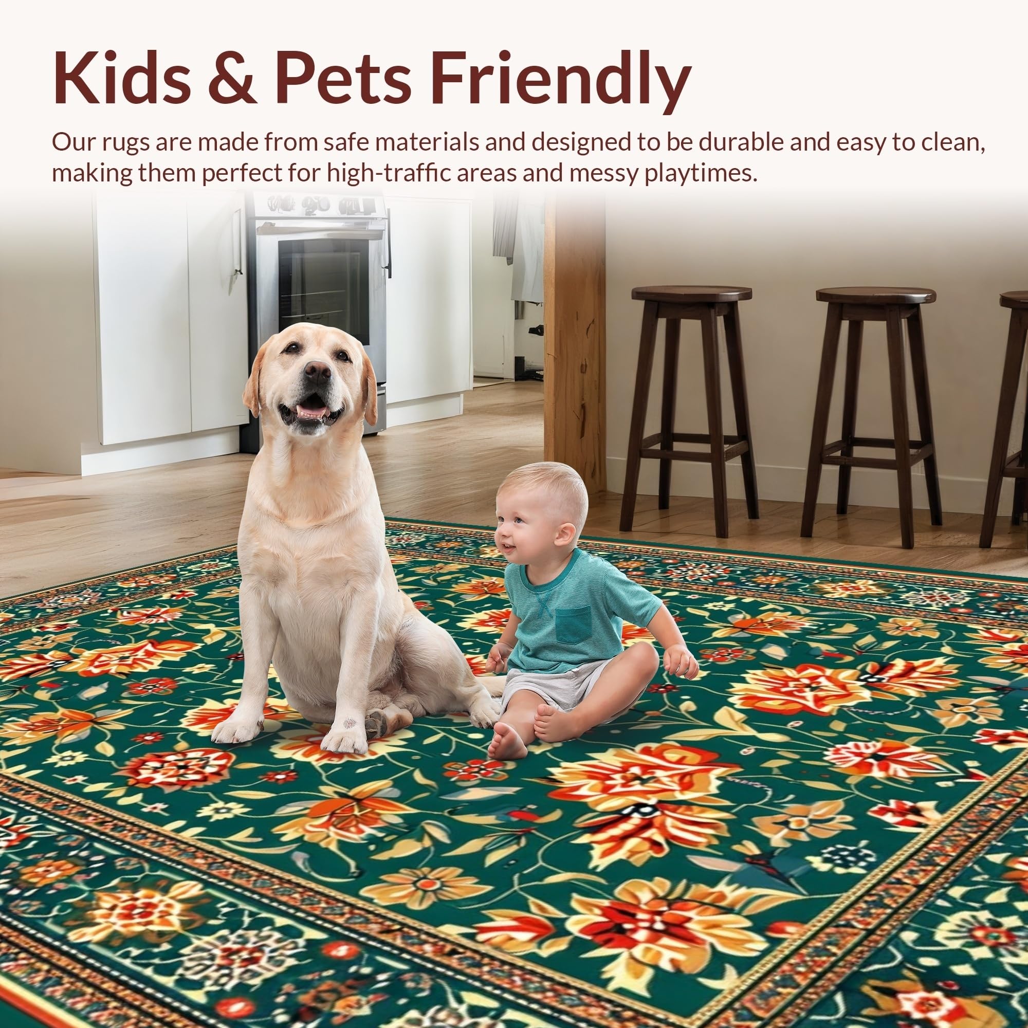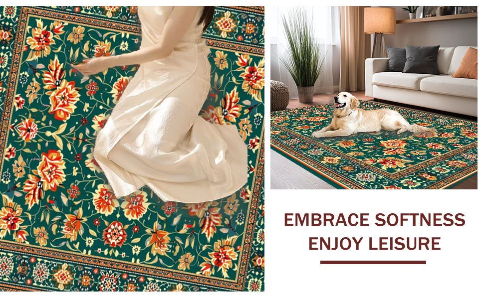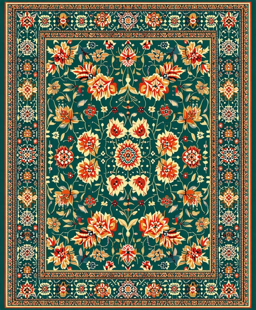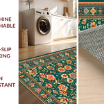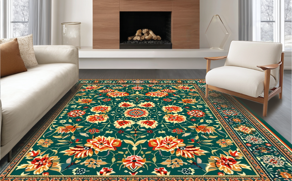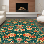 Ultra Soft Area Rug, Non Slip, Stain Resistant, Washable Area Rugs for Living Room, Bedroom, Artistic Vibrant Bloom Composition(Green) Overview: