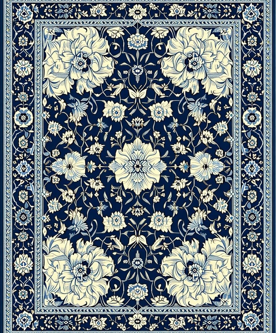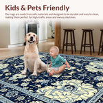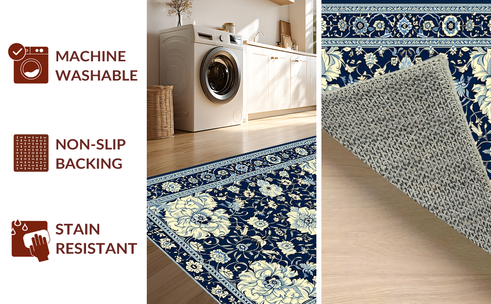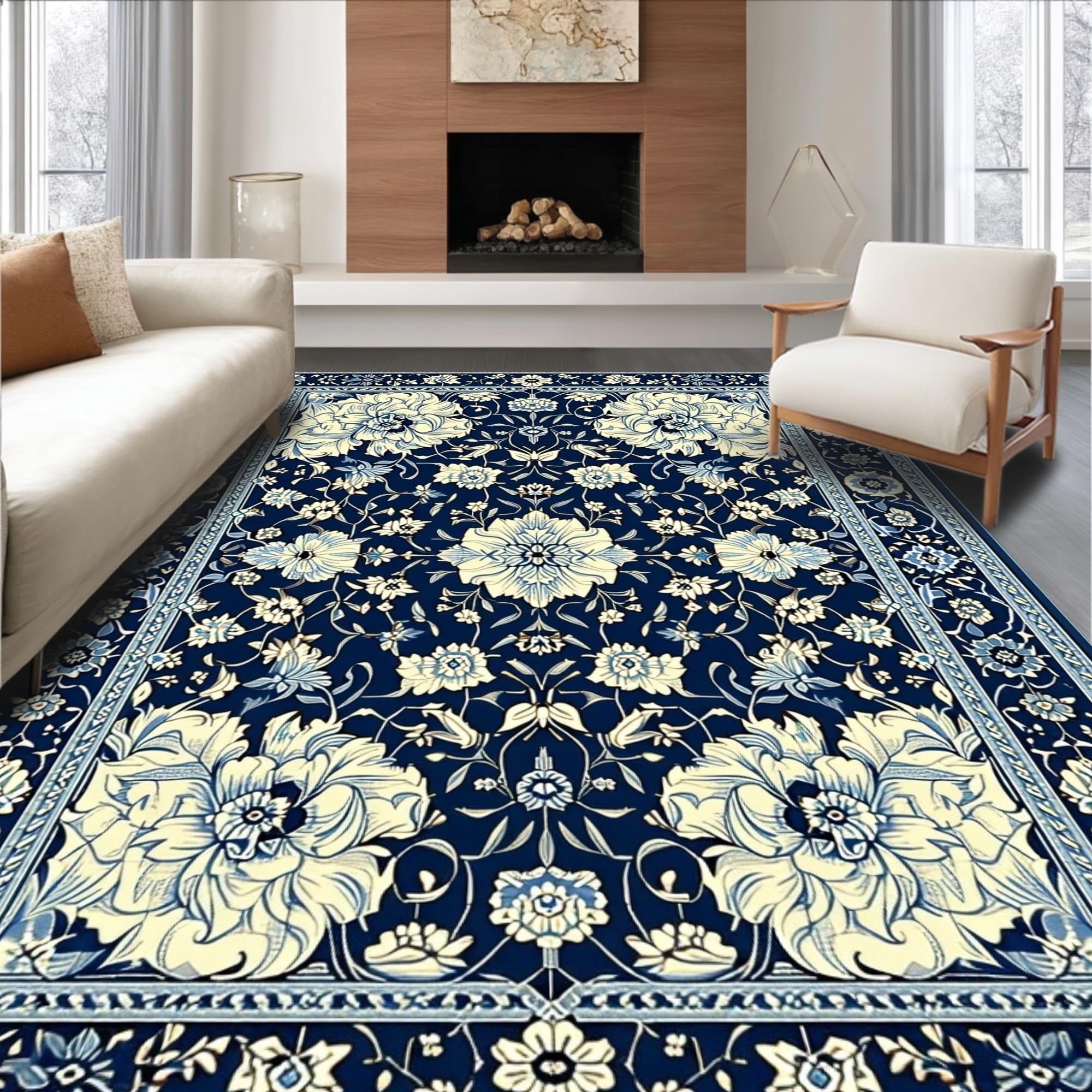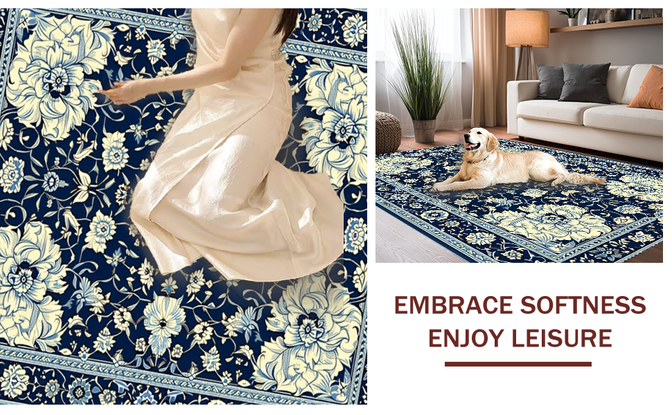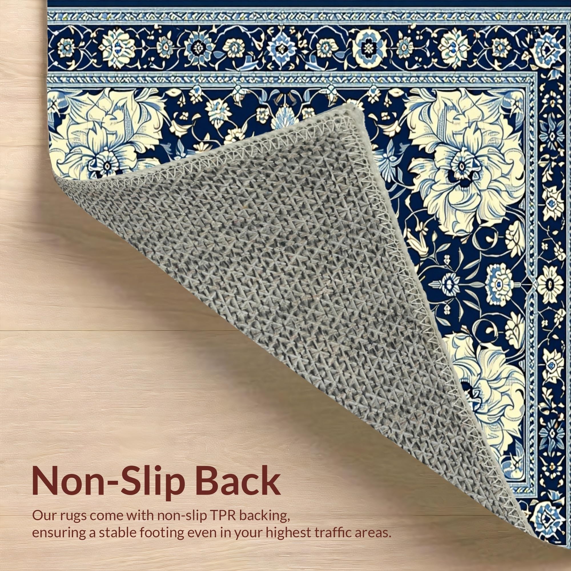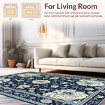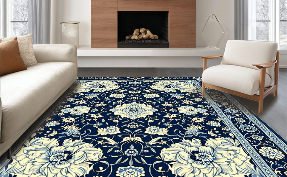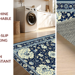 Ultra Soft Area Rug, Non Slip, Stain Resistant, Washable Area Rugs for Living Room, Bedroom, Artistic Vintage Patterned Flourish(Blue) Overview: