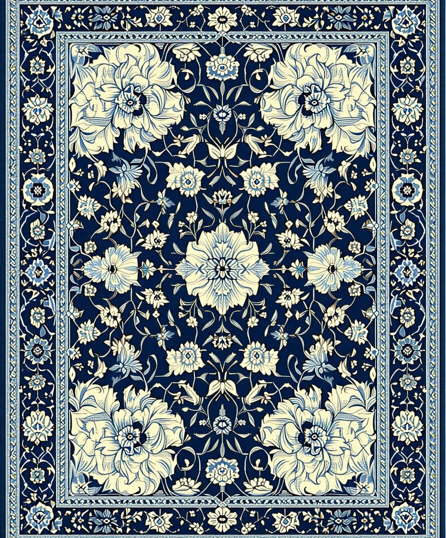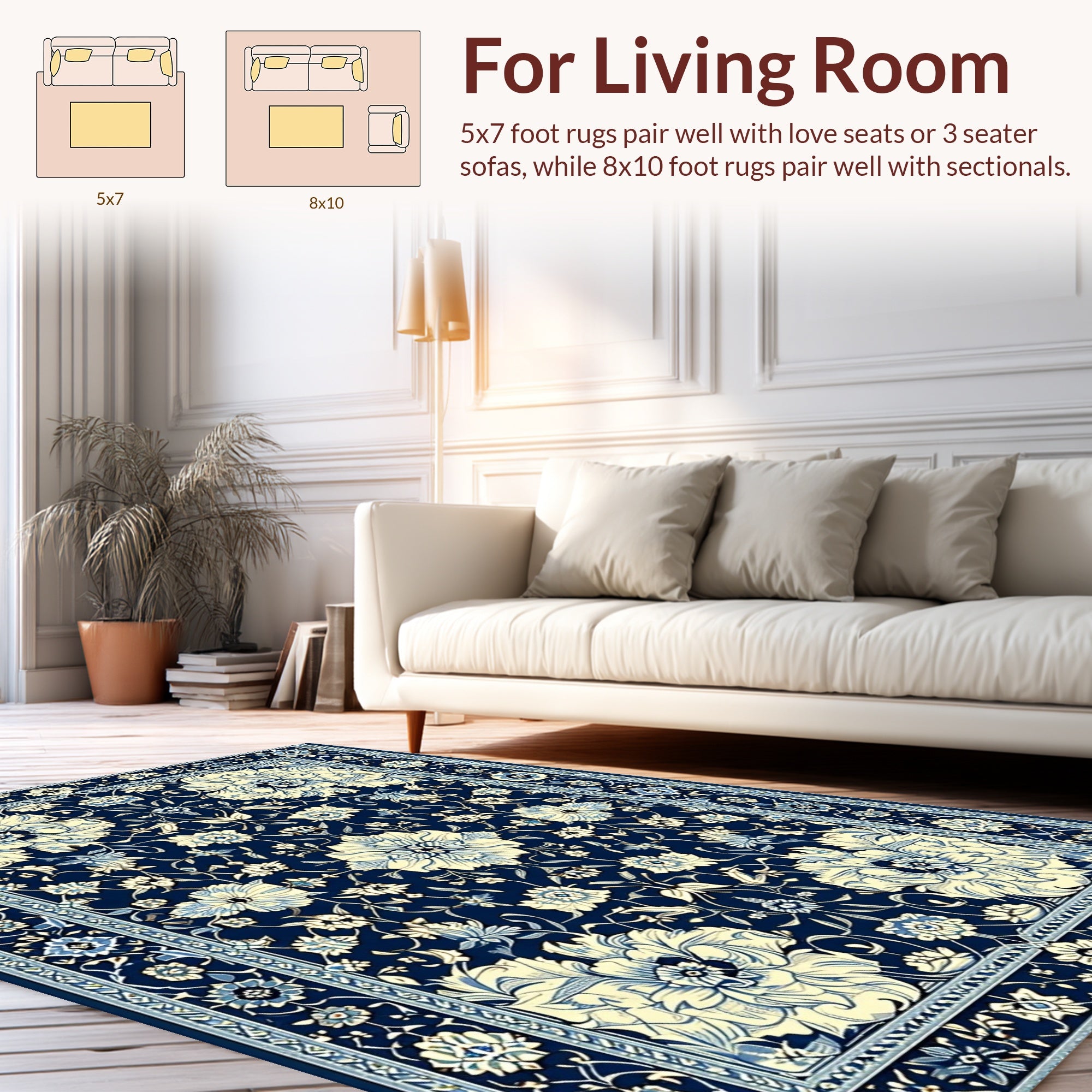 Flatwoven High Traffic Area Rug, Artistic Vintage Patterned Flourish, Non Slip, Stain Resistant, Washable Area Rugs for Living Room, Bedroom (Blue) Overview: