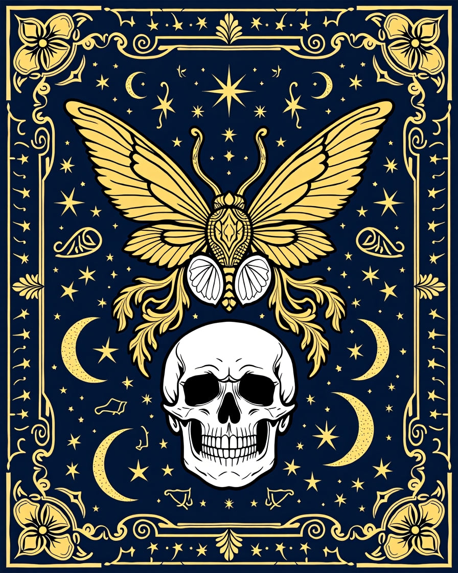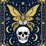 Astrological Skull Collage with Moth Wings and Celestial Embellishments(Gold)