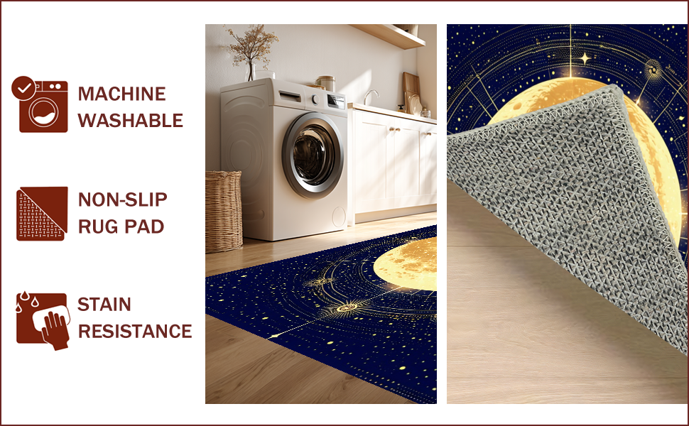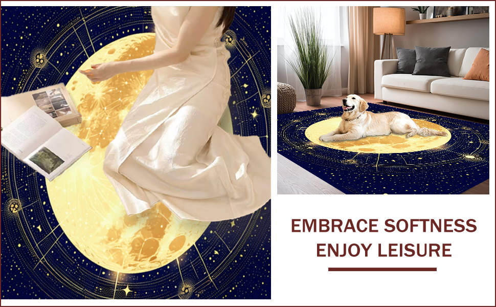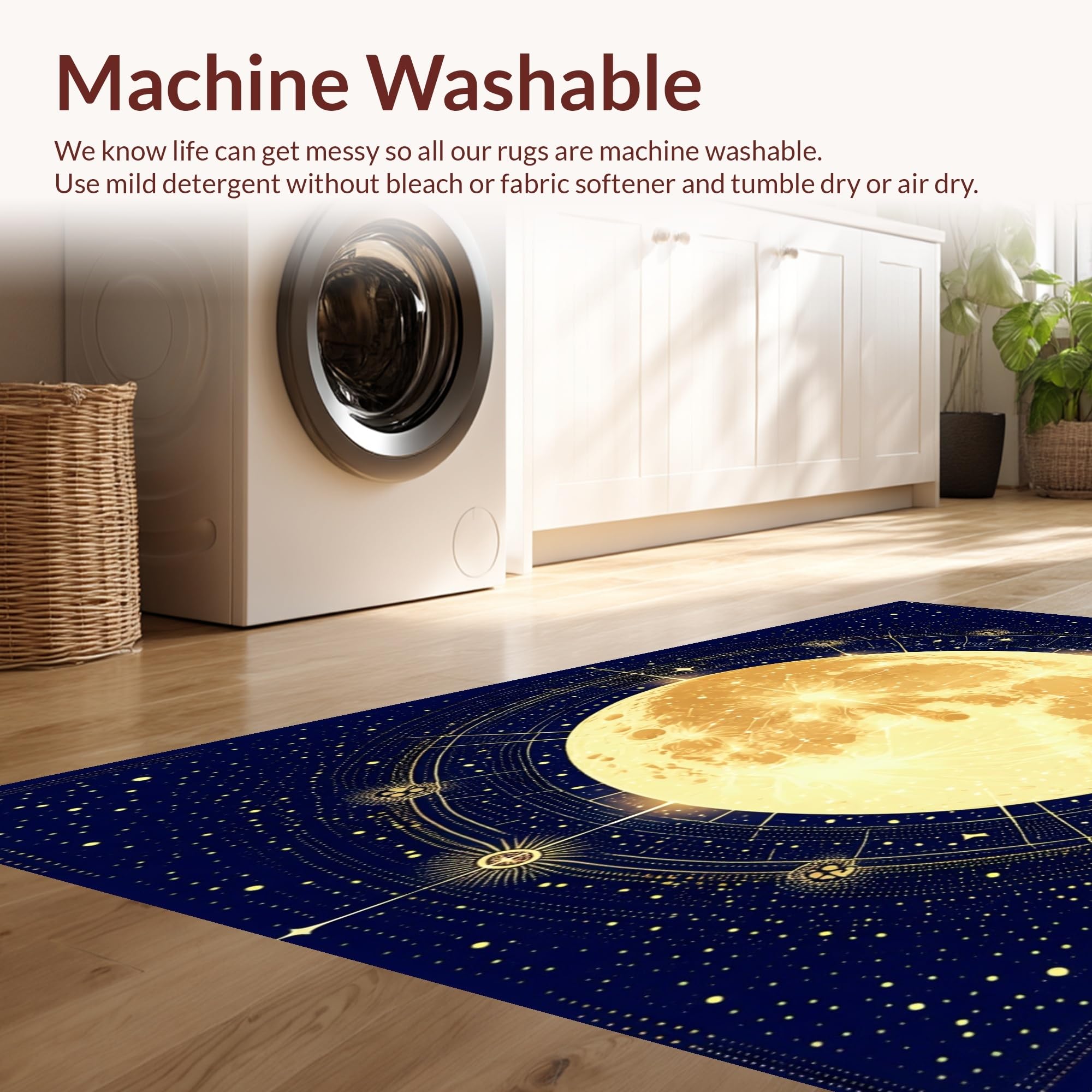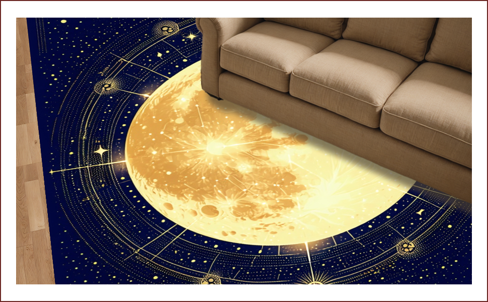 Ultra Soft Area Rug, Non Slip, Stain Resistant, Washable Area Rugs for Living Room, Bedroom, Astrology Sun and Moon Living Room Rug(Gold) Overview: