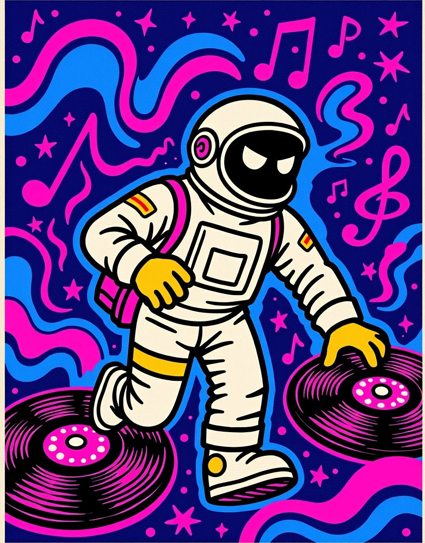 Astronaut DJ Vinyl Galaxy Space Adventure Art(Pink)