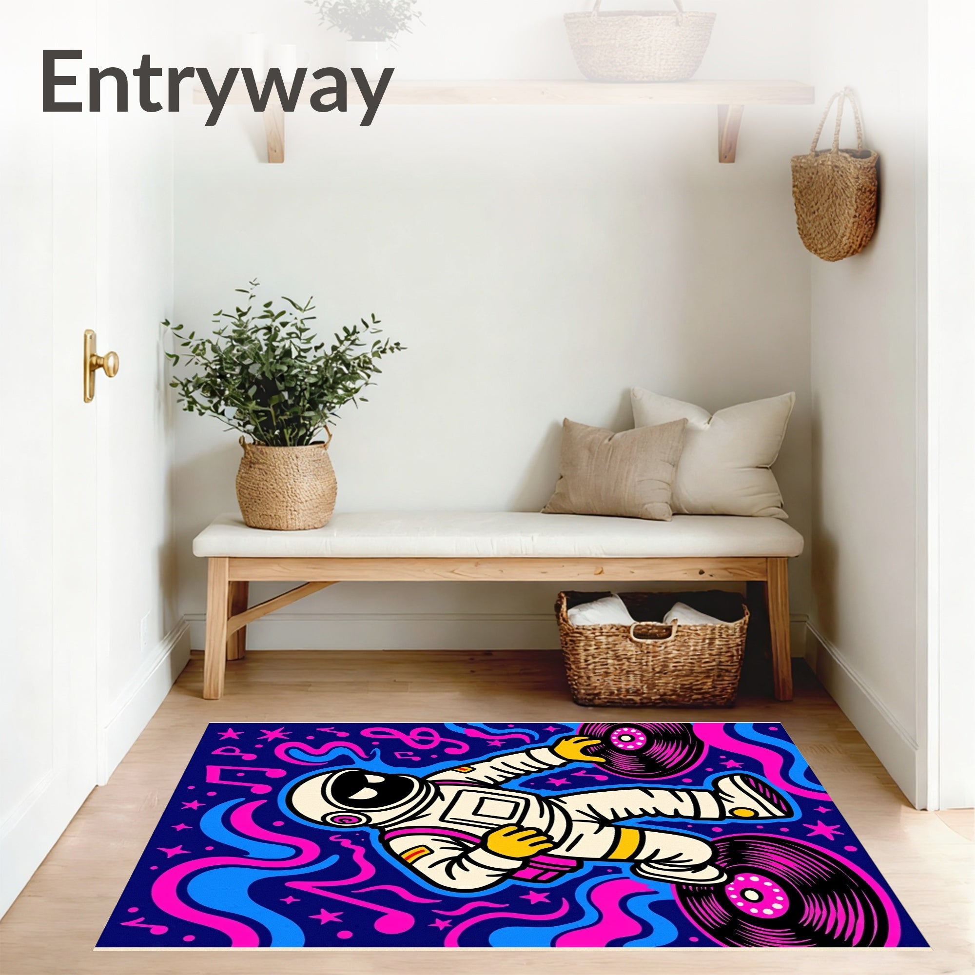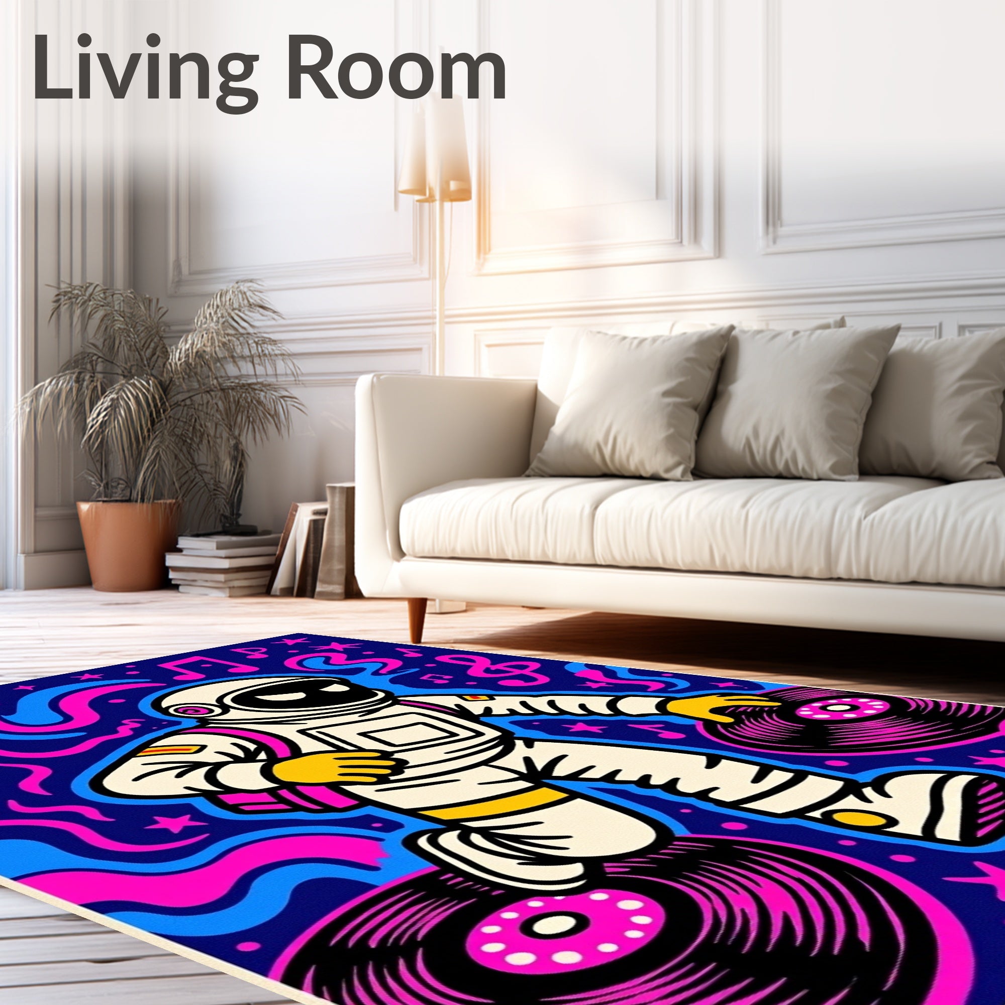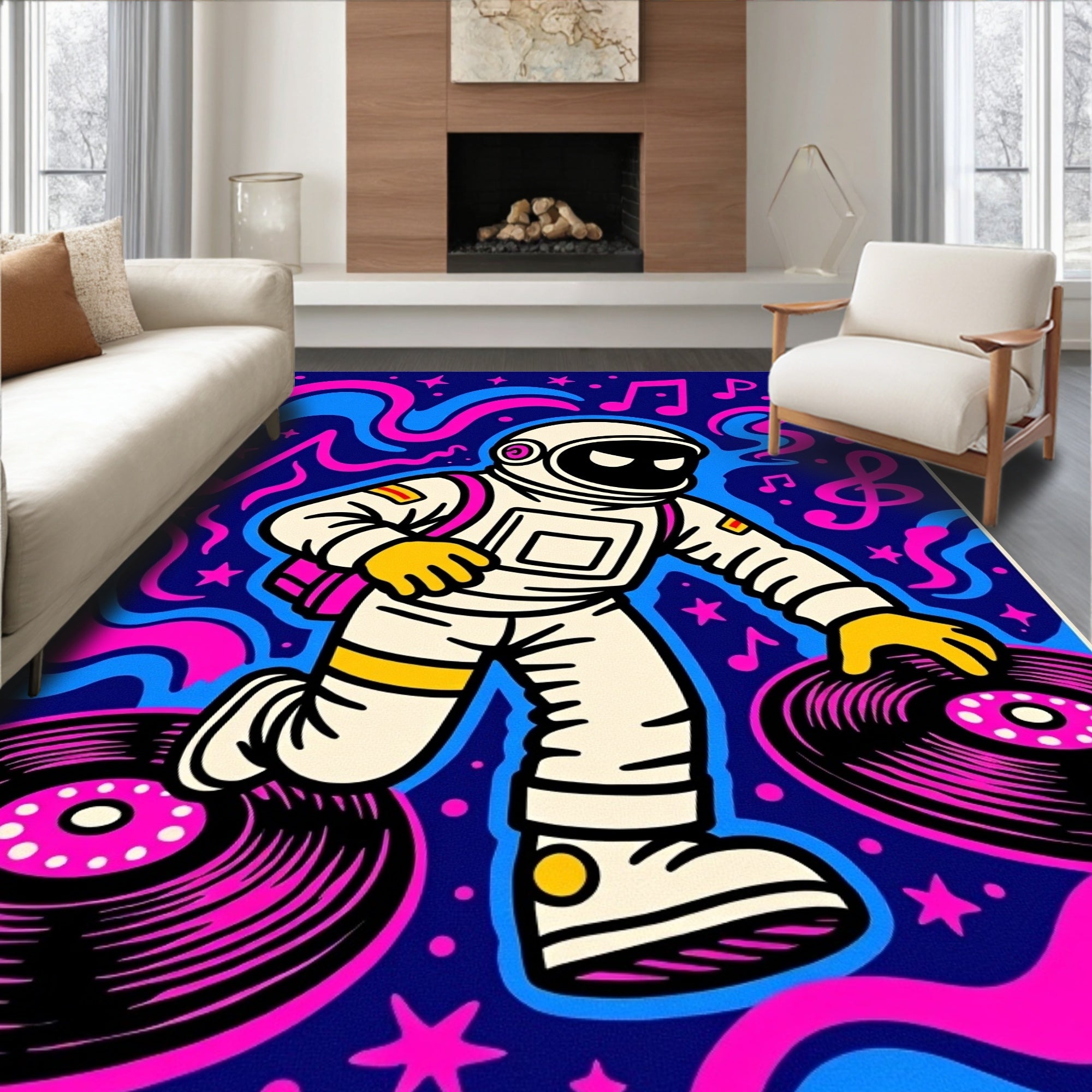 Ultra Soft Area Rug, Non Slip, Stain Resistant, Washable Area Rugs for Living Room, Bedroom, Astronaut DJ Vinyl Galaxy Space Adventure Art(Pink) Overview: