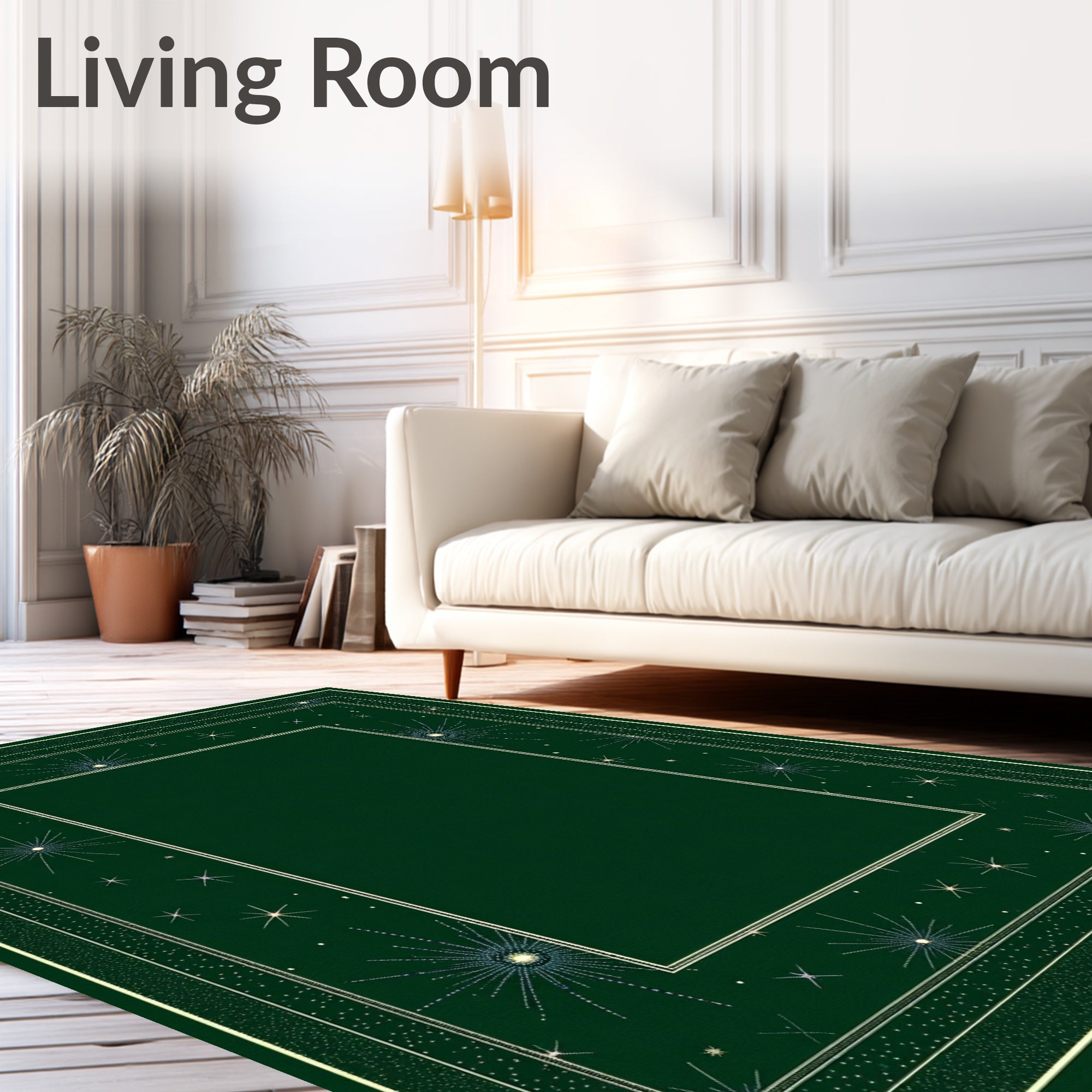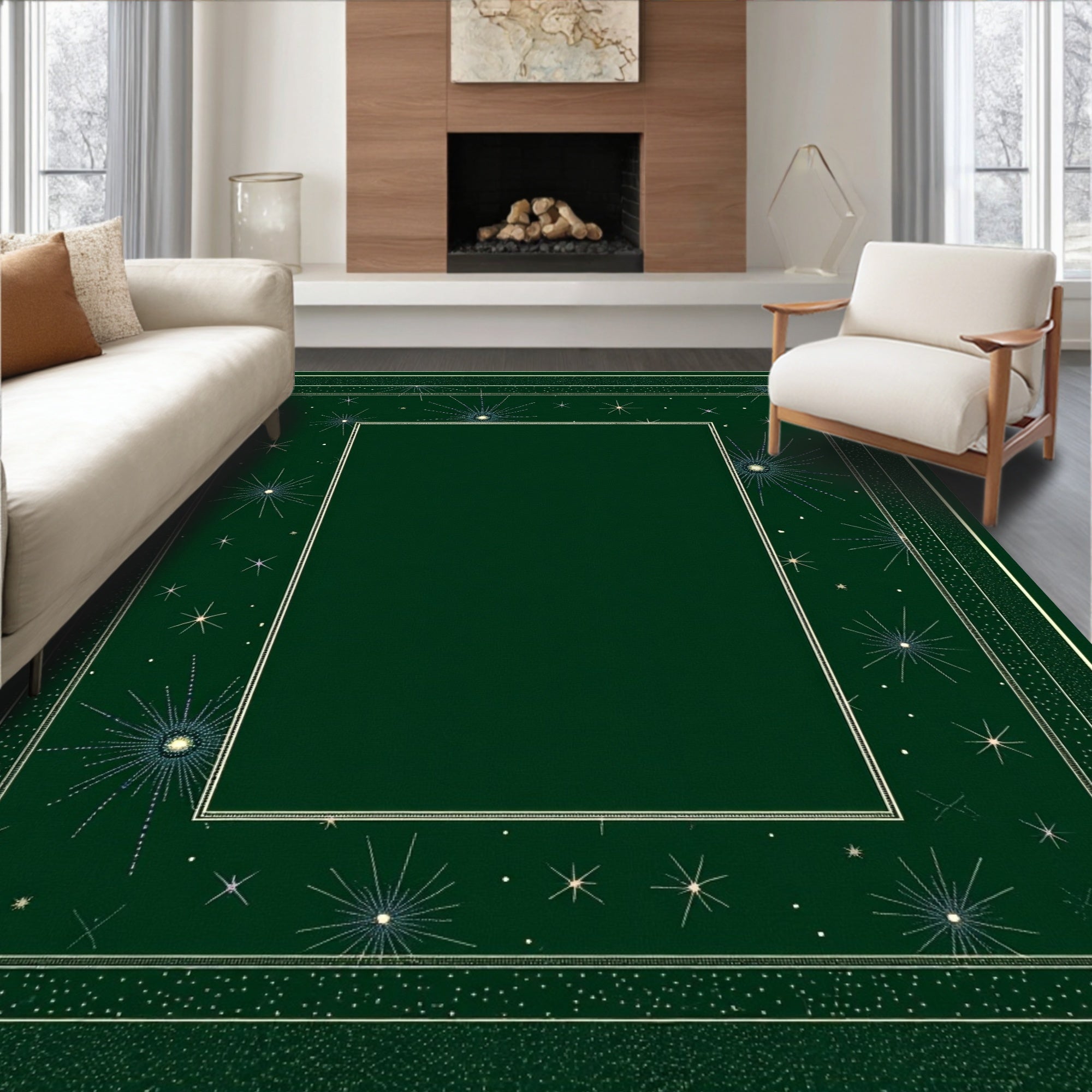 Ultra Soft Area Rug, Non Slip, Stain Resistant, Washable Area Rugs for Living Room, Bedroom, Astronomical Wonder with Shimmering Stardust Design(Green) Overview: