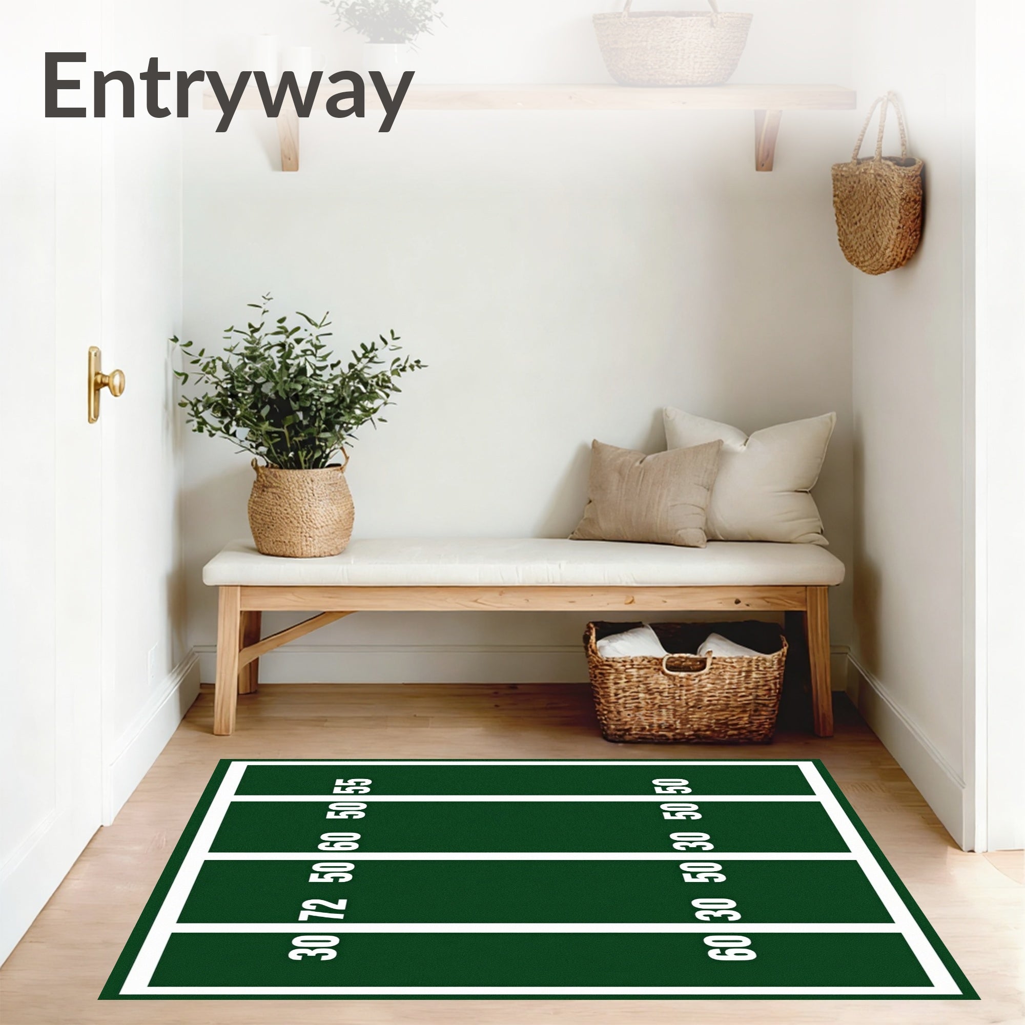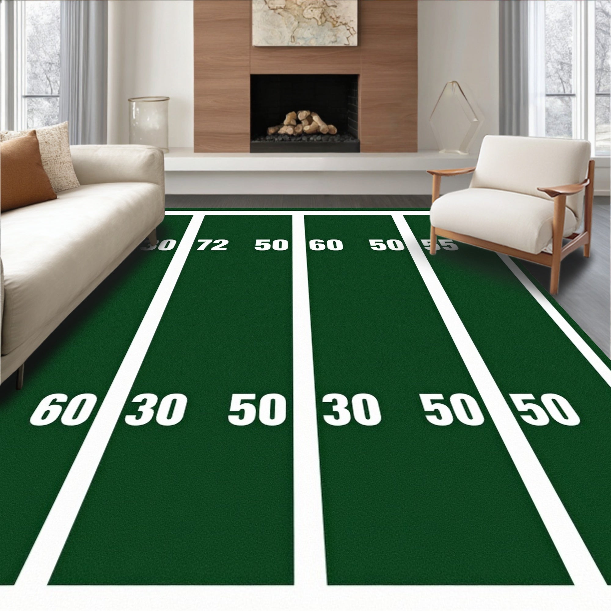 Ultra Soft Area Rug, Non Slip, Stain Resistant, Washable Area Rugs for Living Room, Bedroom, Athletic Field Stripe with Yard Line Markers(Green) Overview: