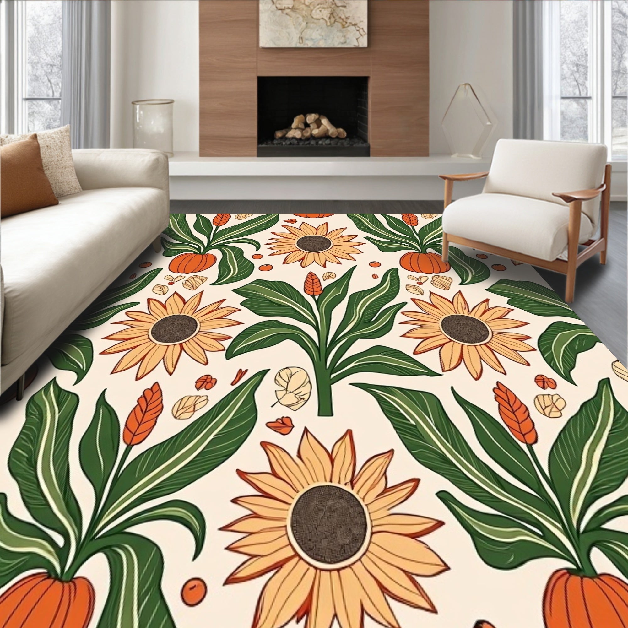 Ultra Soft Area Rug, Non Slip, Stain Resistant, Washable Area Rugs for Living Room, Bedroom, Autumn Barnyard Celebration Floor(Beige) Overview: