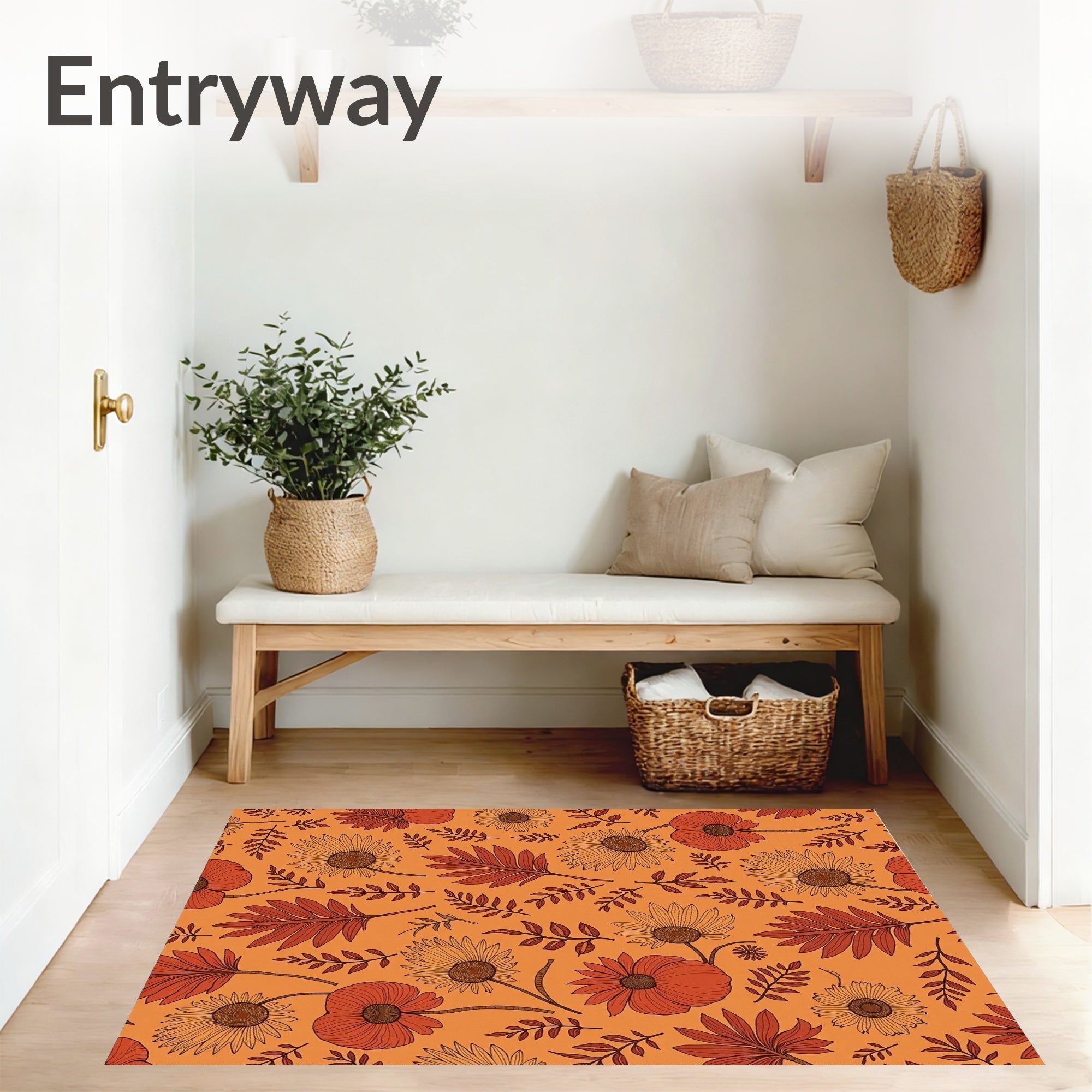 Ultra Soft Area Rug, Non Slip, Stain Resistant, Washable Area Rugs for Living Room, Bedroom, Autumn Blossom Semicircular Entryway Decorative Welcoming Accent(Orange) Overview: