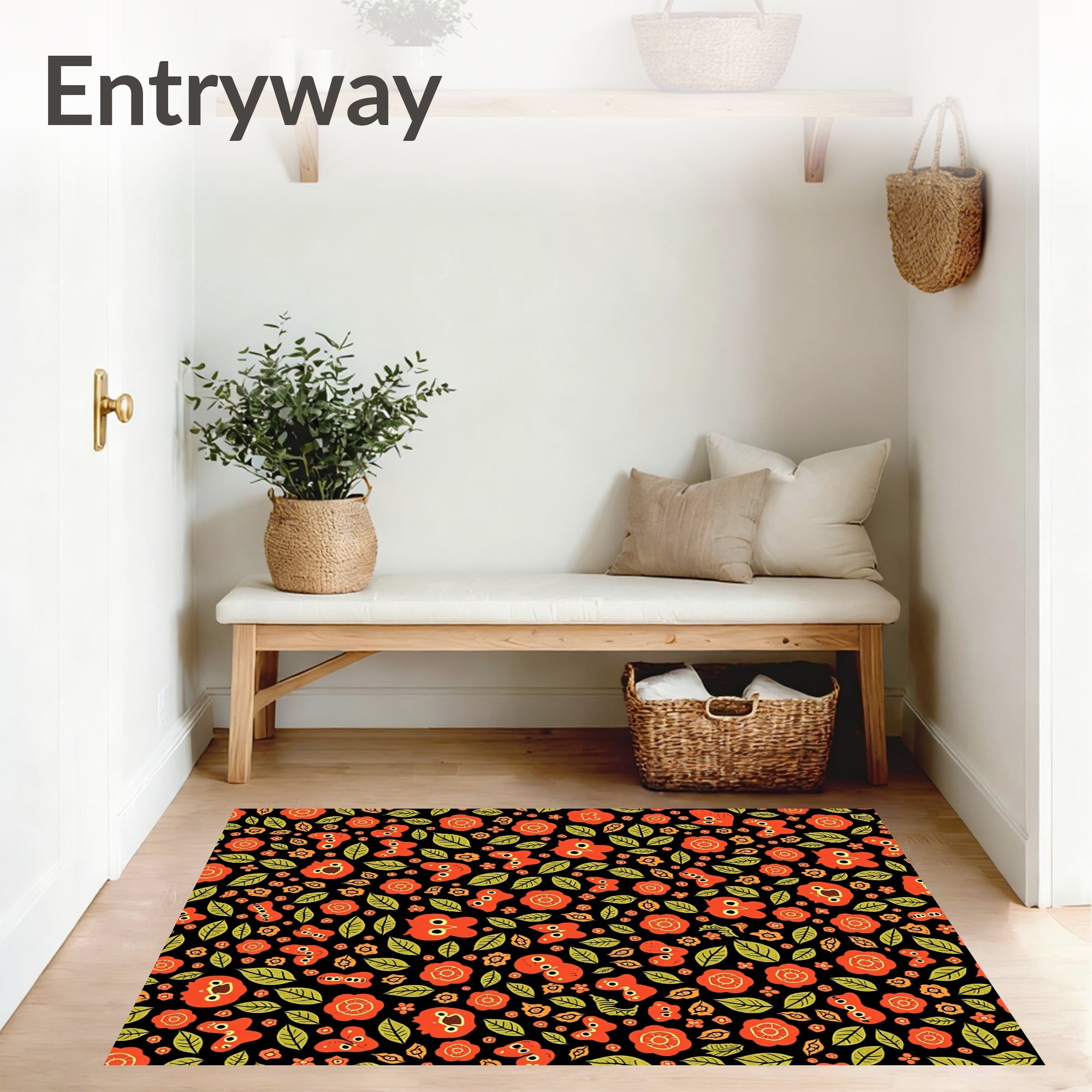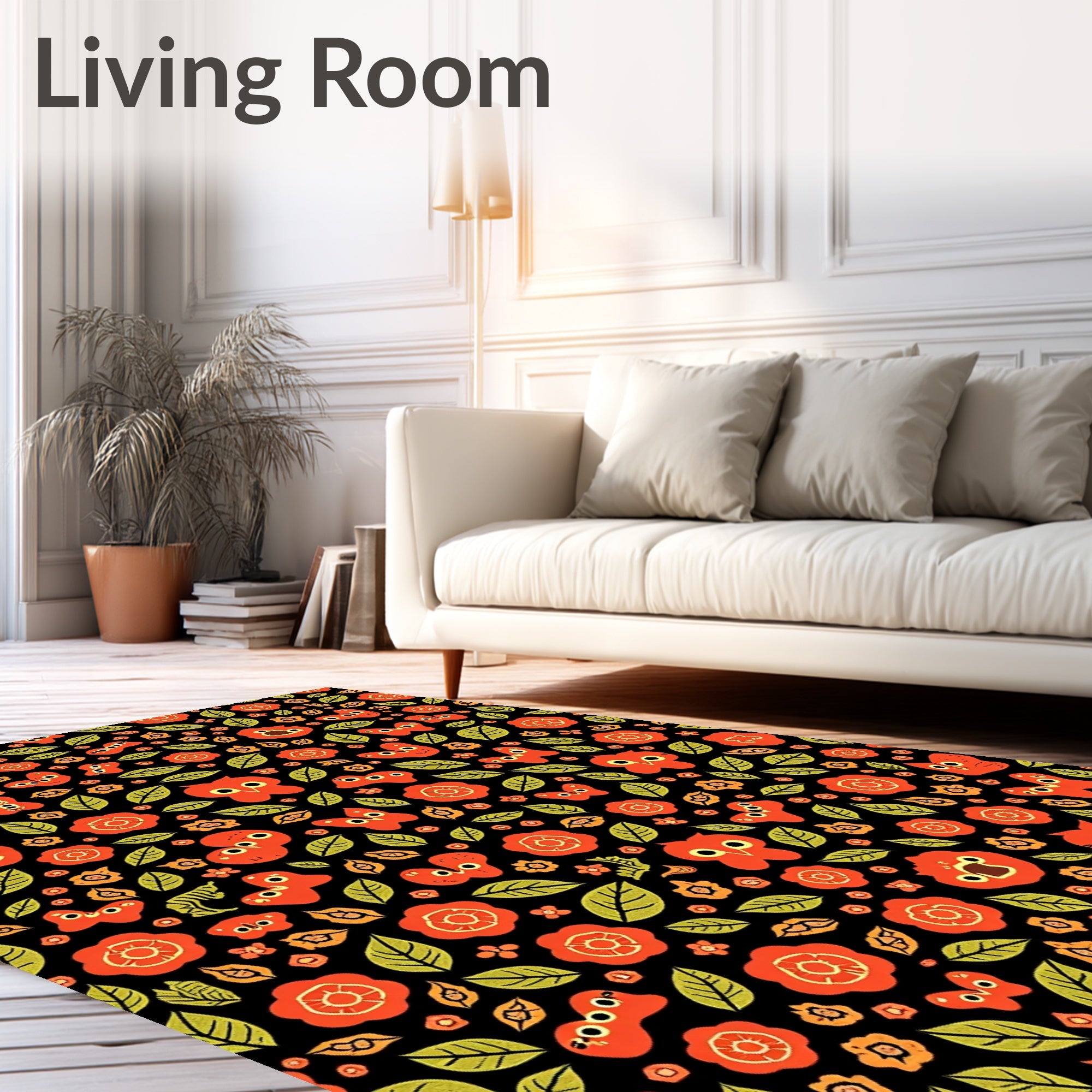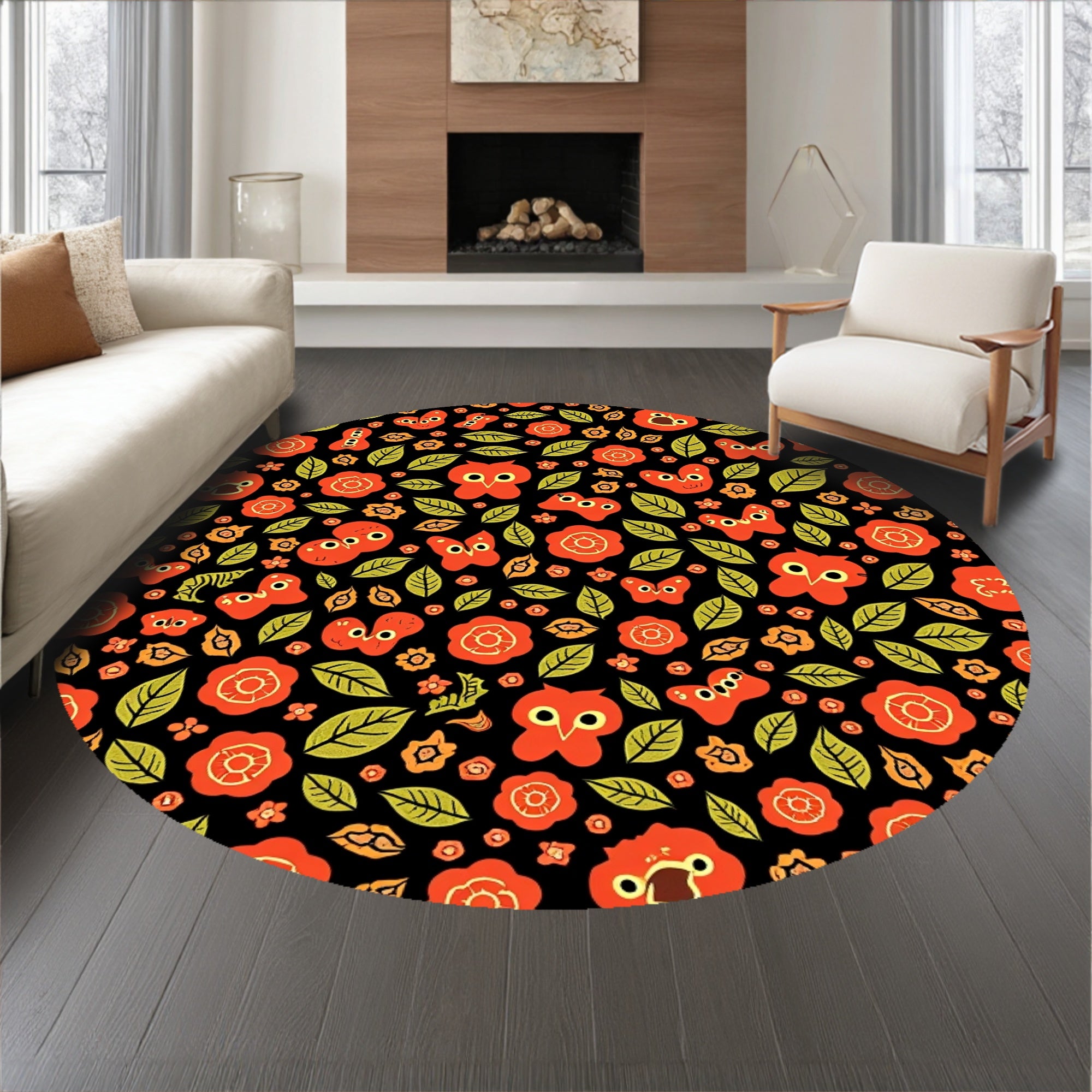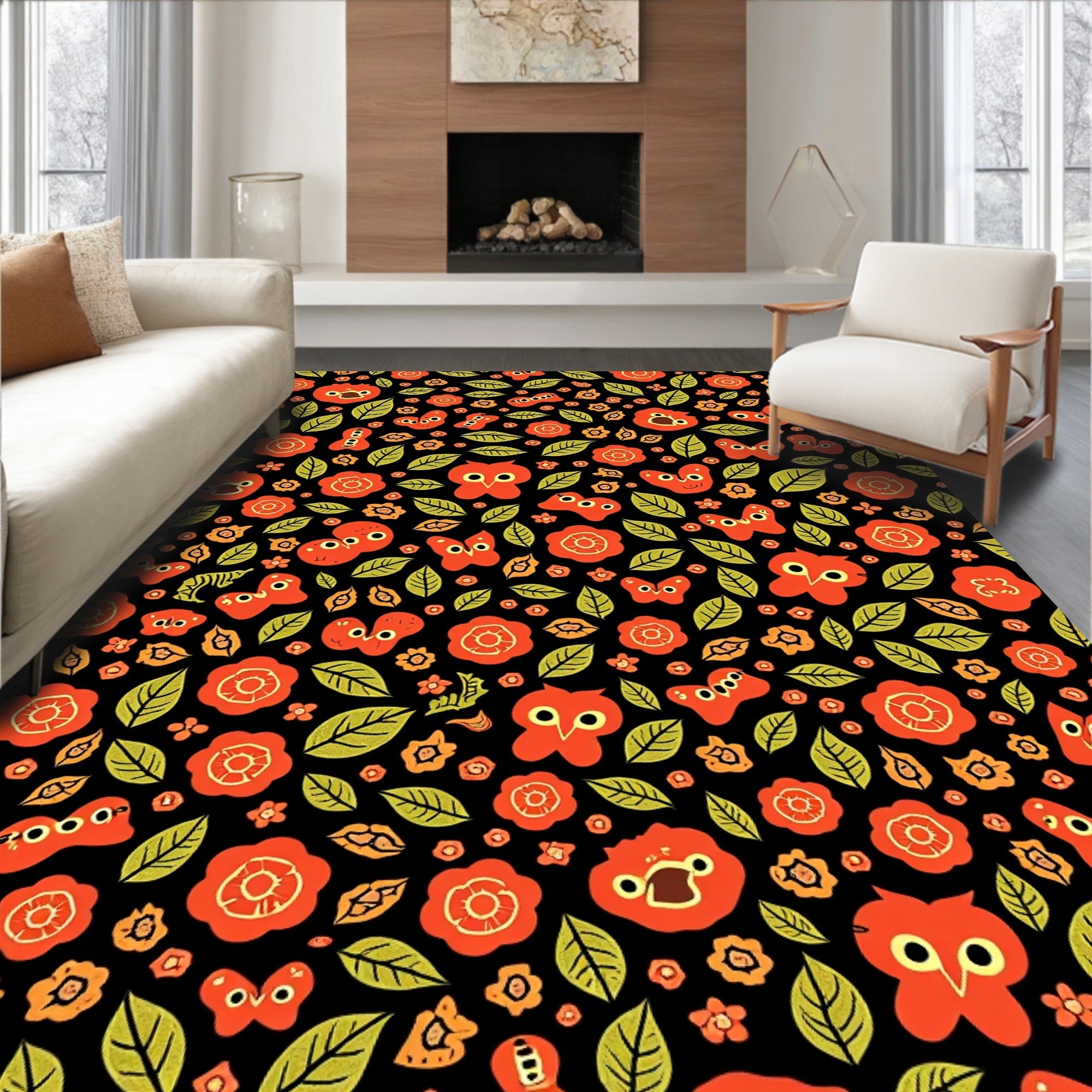 Ultra Soft Area Rug, Non Slip, Stain Resistant, Washable Area Rugs for Living Room, Bedroom, Autumn Dreamscape Interlocking Forest Creature Mosaic(Black) Overview: